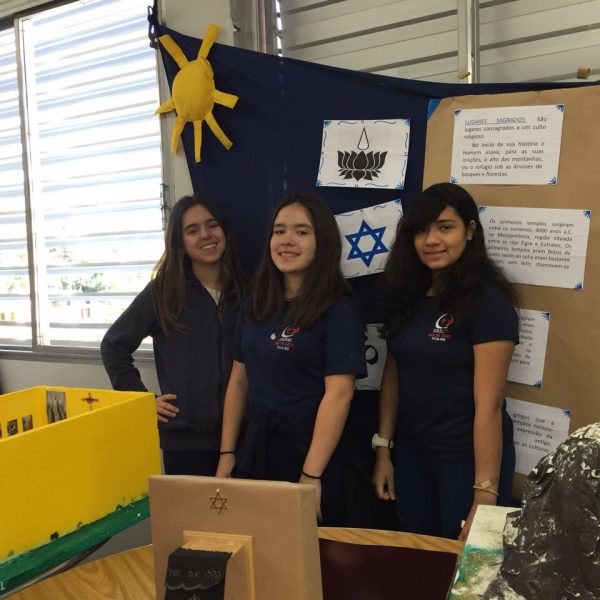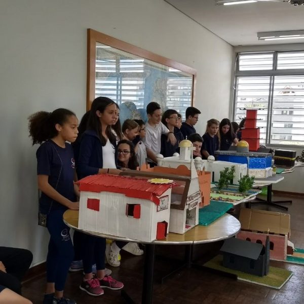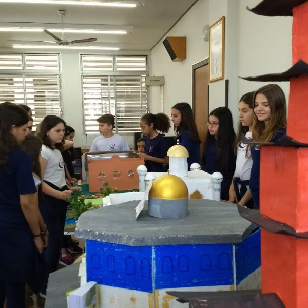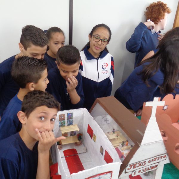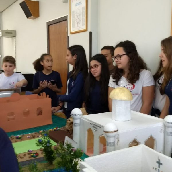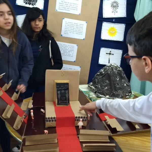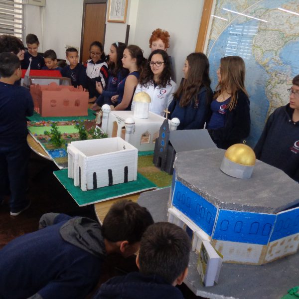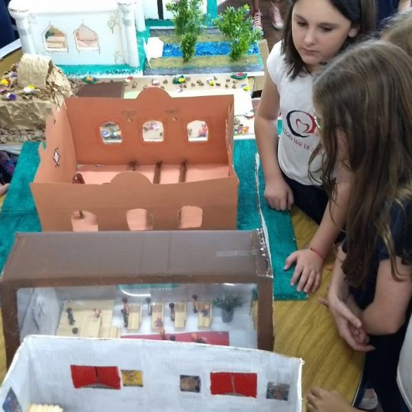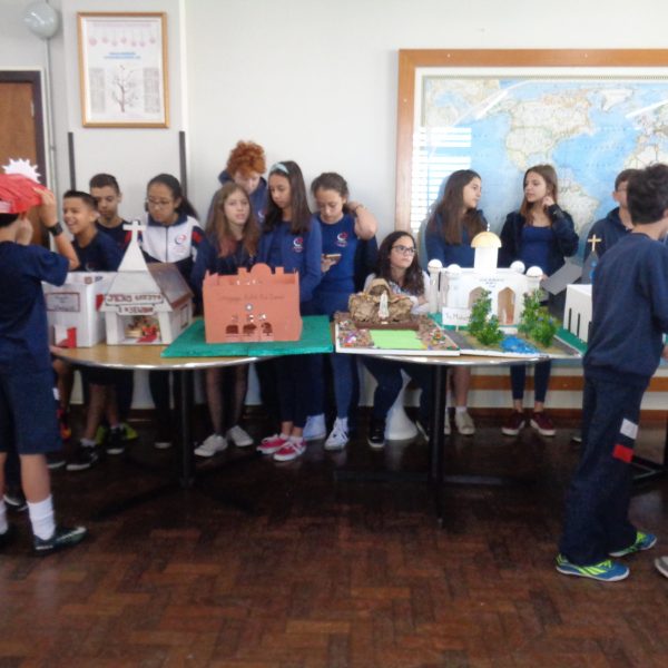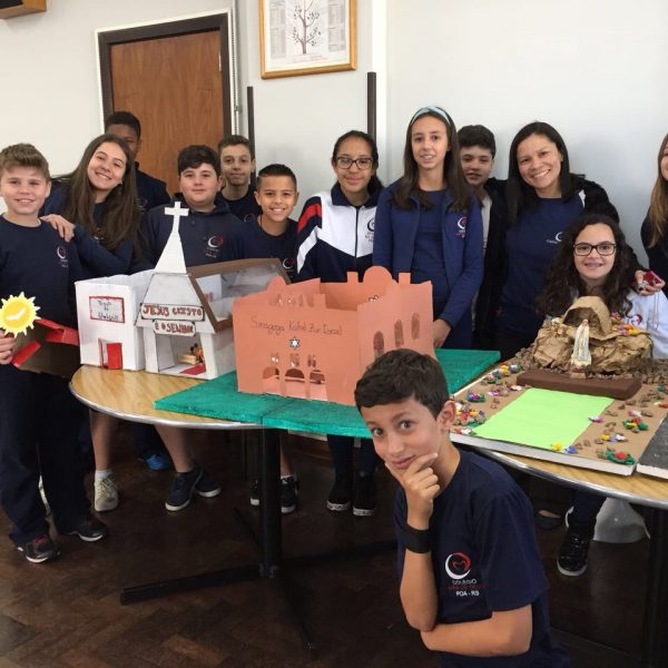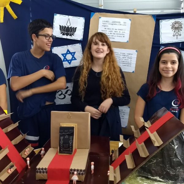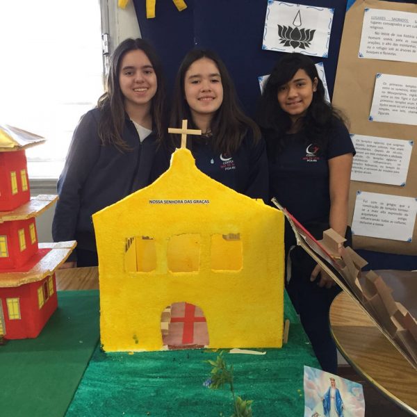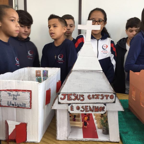 Após a realização dos estudos, os alunos construíram maquetes sobre os diferentes espaços sagrados, sendo eles, espaços construídos, como: Mesquitas, Igrejas, Sinagogas, Templos Budistas, Templos Indígenas e espaços da natureza, como: Rios, montanhas, grutas naturais, entre outras. Este trabalho foi apresentado na biblioteca para os alunos do 5º ano do Ensino Fundamental e à comunidade escolar por meio de exposição no saguão.
