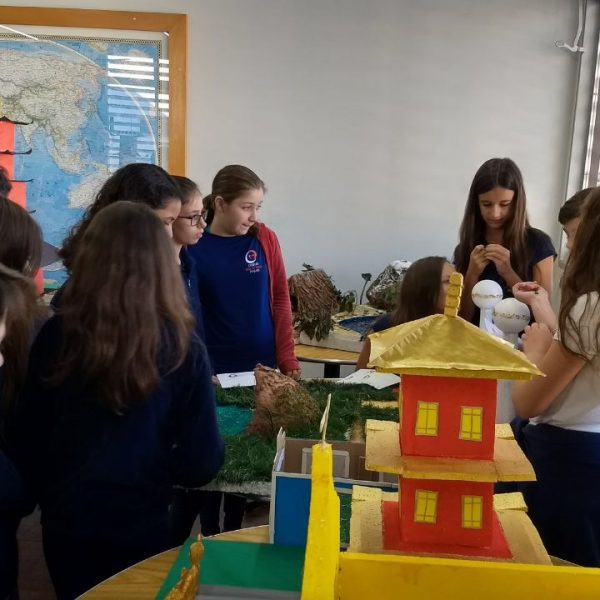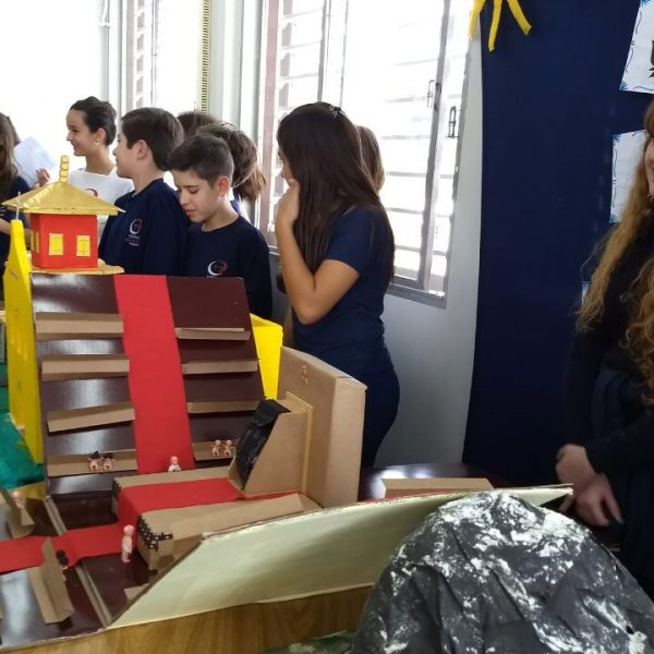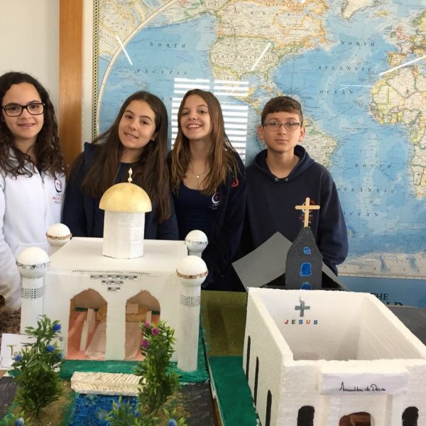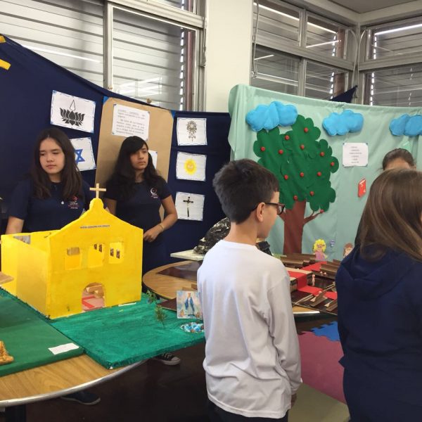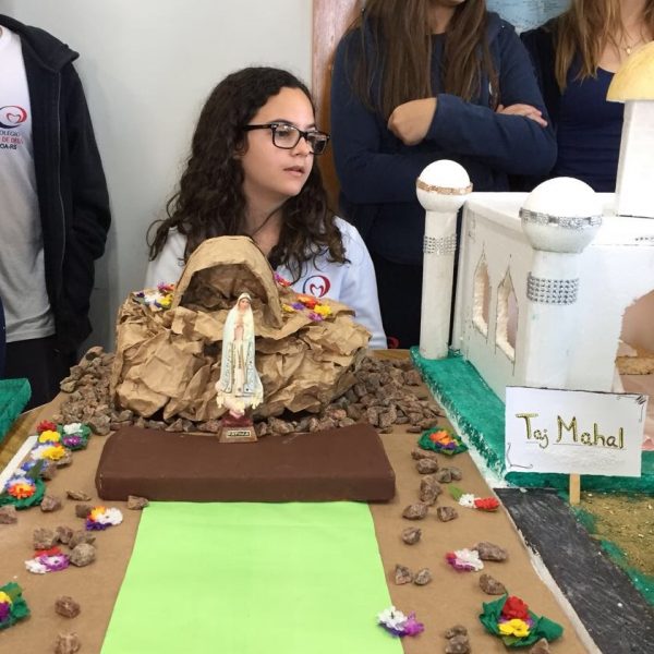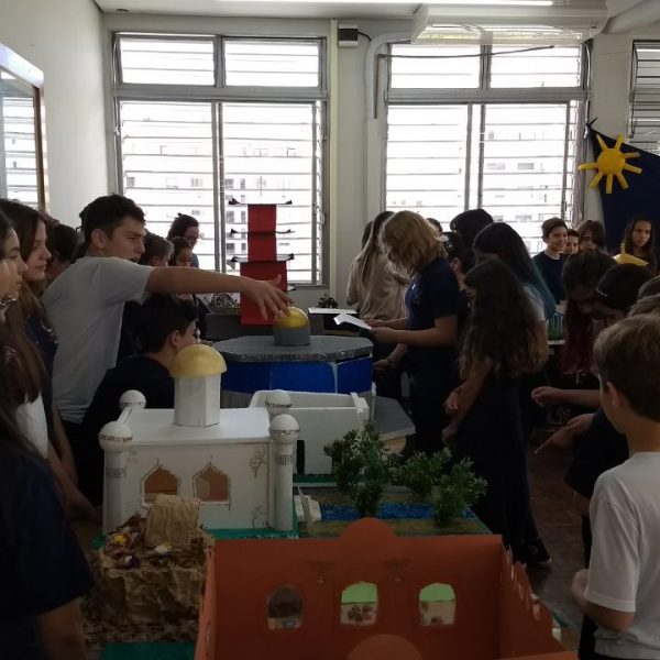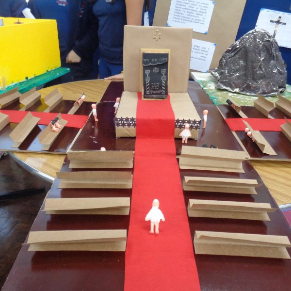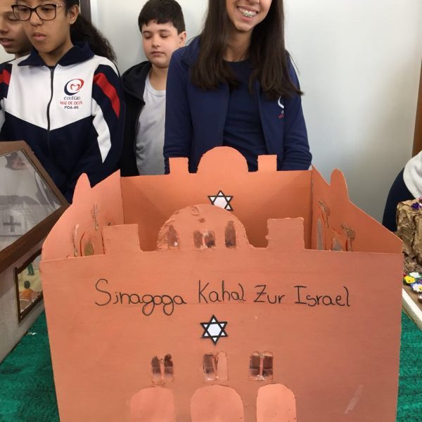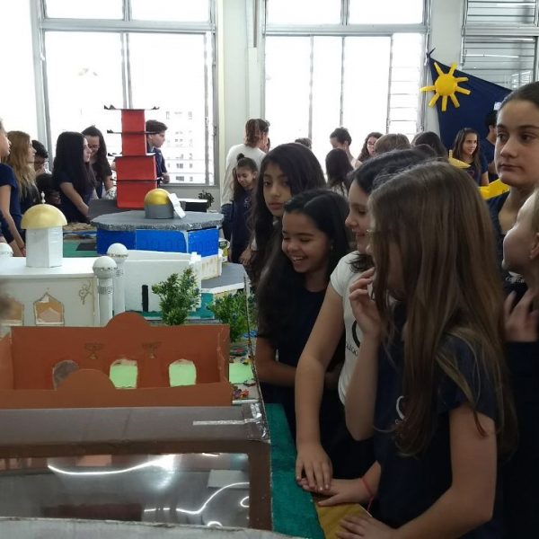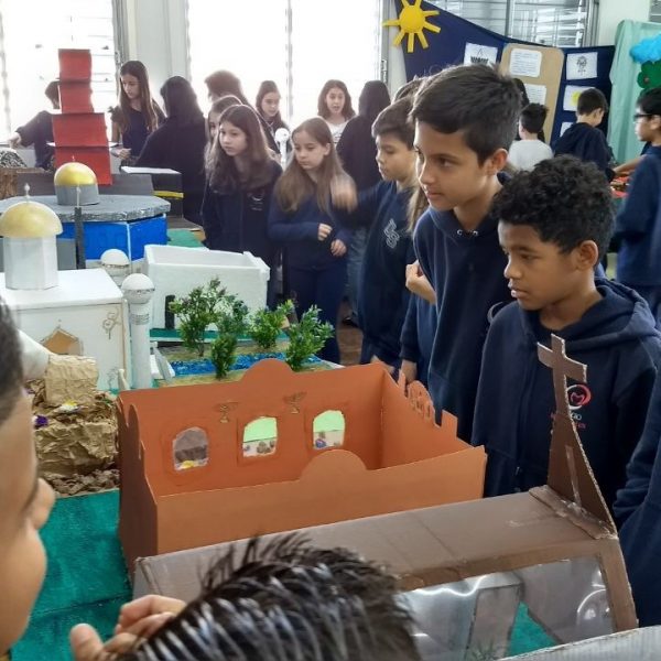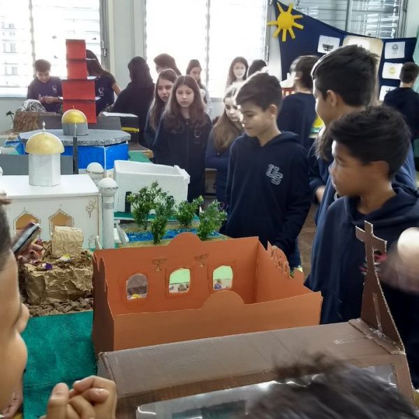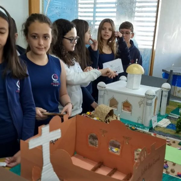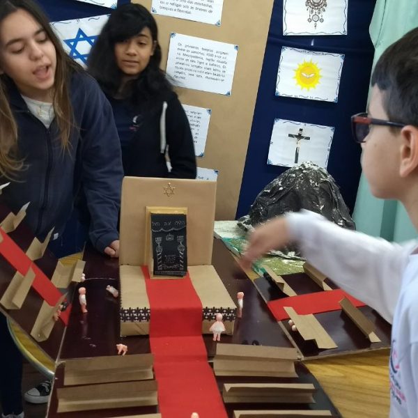 Após a realização dos estudos, os alunos construíram maquetes sobre os diferentes espaços sagrados, sendo eles, espaços construídos, como: Mesquitas, Igrejas, Sinagogas, Templos Budistas, Templos Indígenas e espaços da natureza, como: Rios, montanhas, grutas naturais, entre outras. Este trabalho foi apresentado na biblioteca para os alunos do 5º ano do Ensino Fundamental e à comunidade escolar por meio de exposição no saguão.