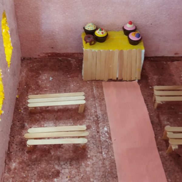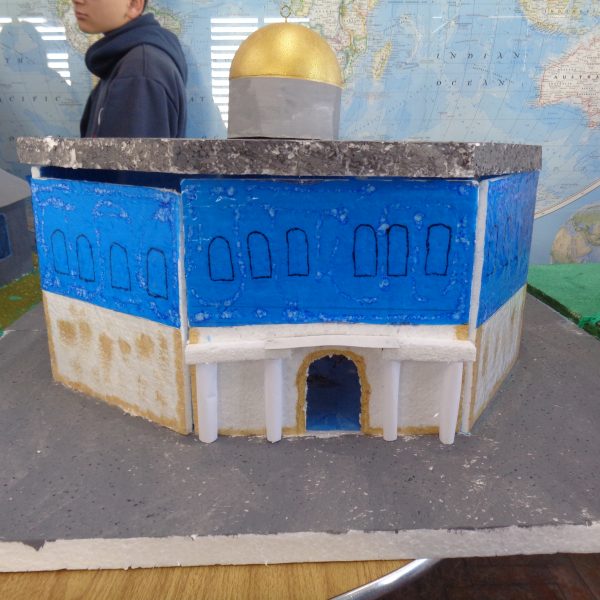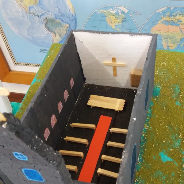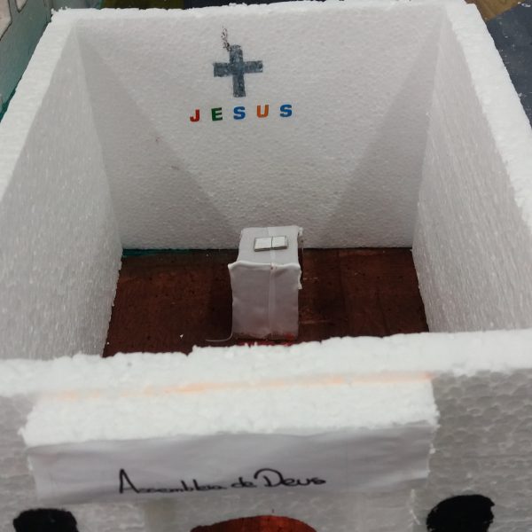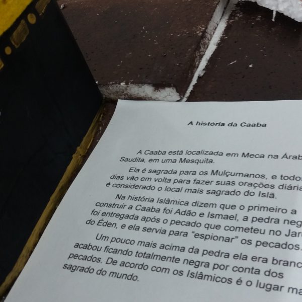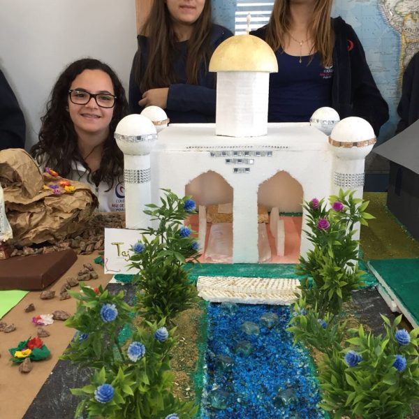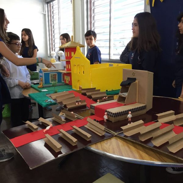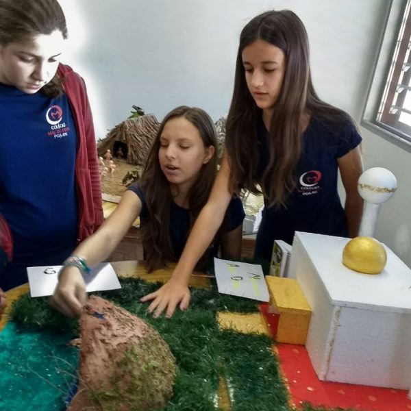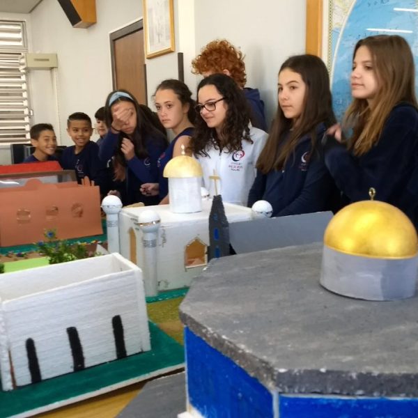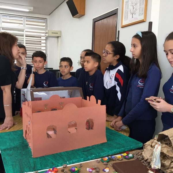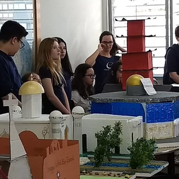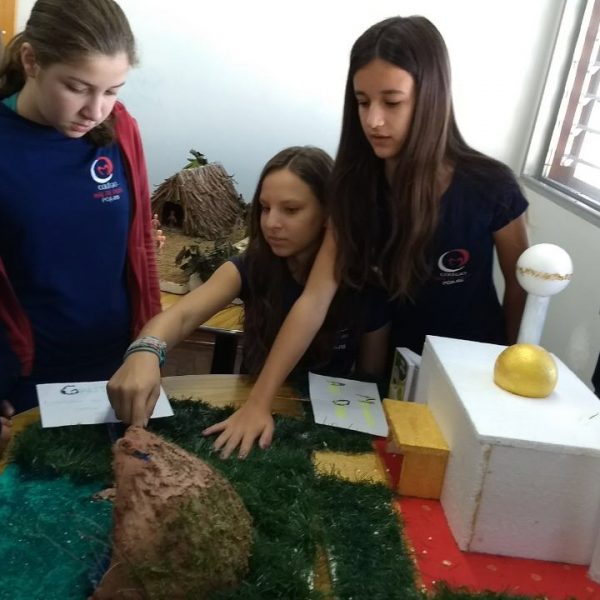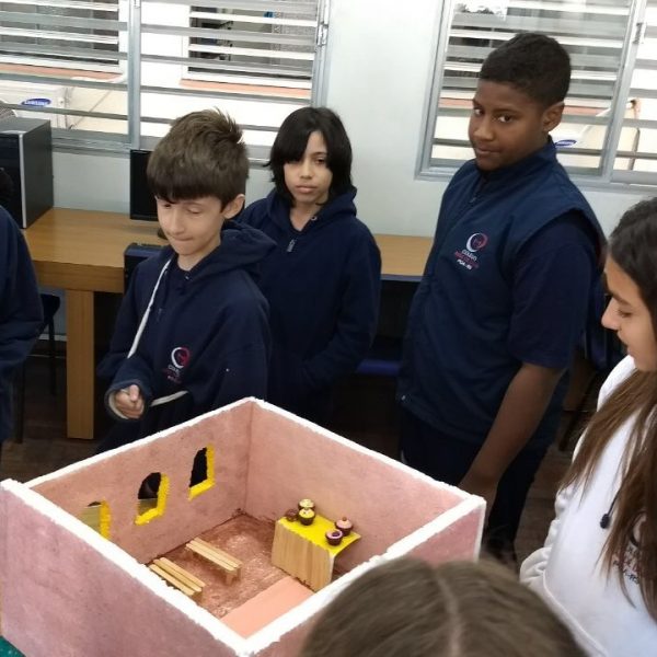Após a realização dos estudos, os alunos construíram maquetes sobre os diferentes espaços sagrados, sendo eles, espaços construídos, como: Mesquitas, Igrejas, Sinagogas, Templos Budistas, Templos Indígenas e espaços da natureza, como: Rios, montanhas, grutas naturais, entre outras. Este trabalho foi apresentado na biblioteca para os alunos do 5º ano do Ensino Fundamental e à comunidade escolar por meio de exposição no saguão.