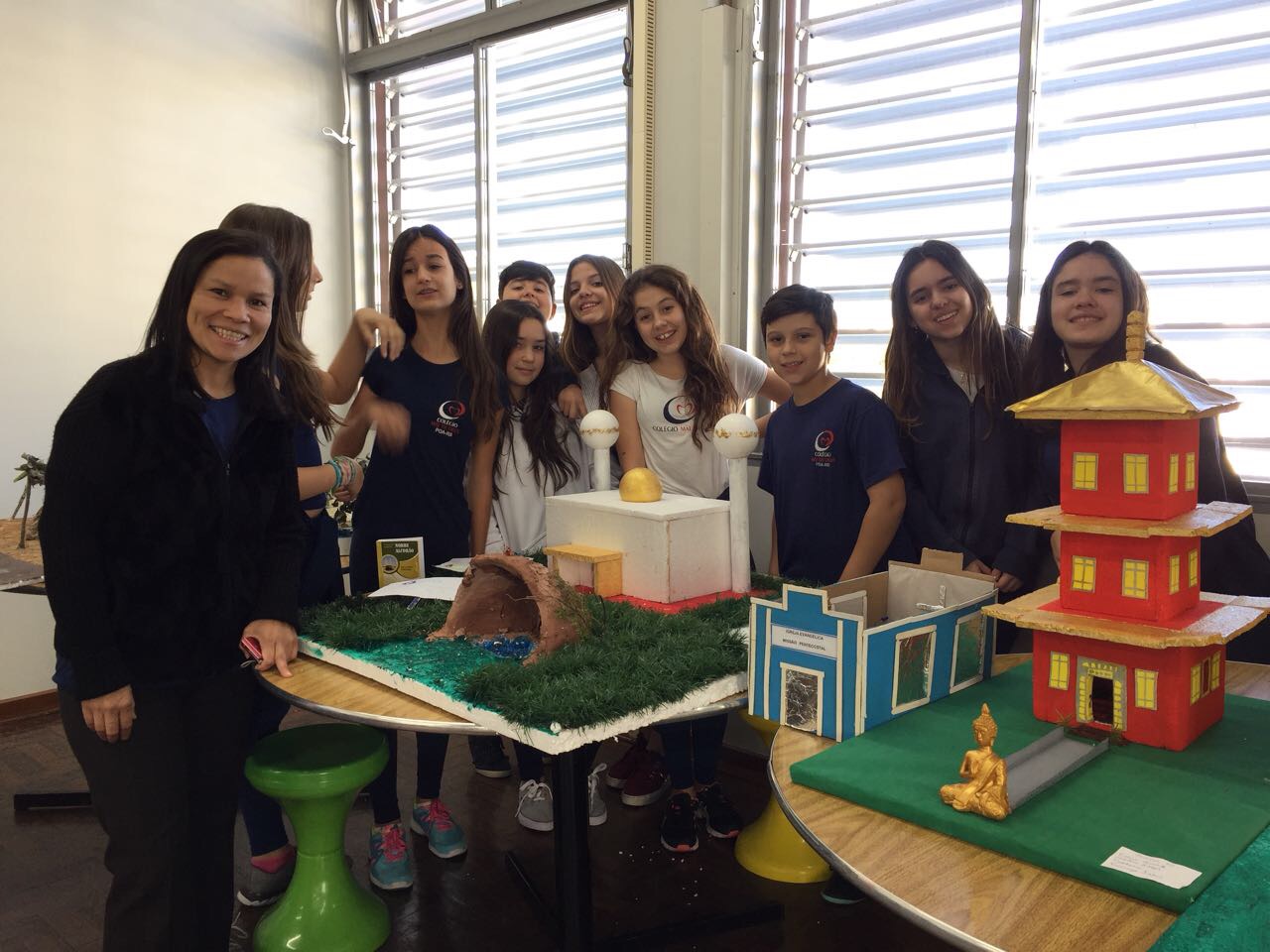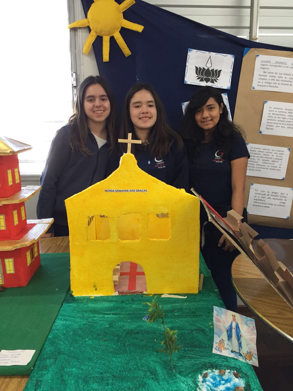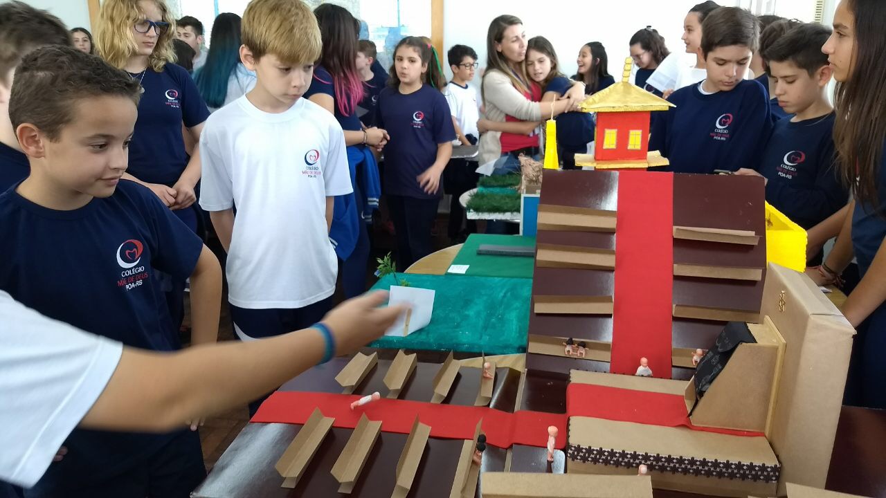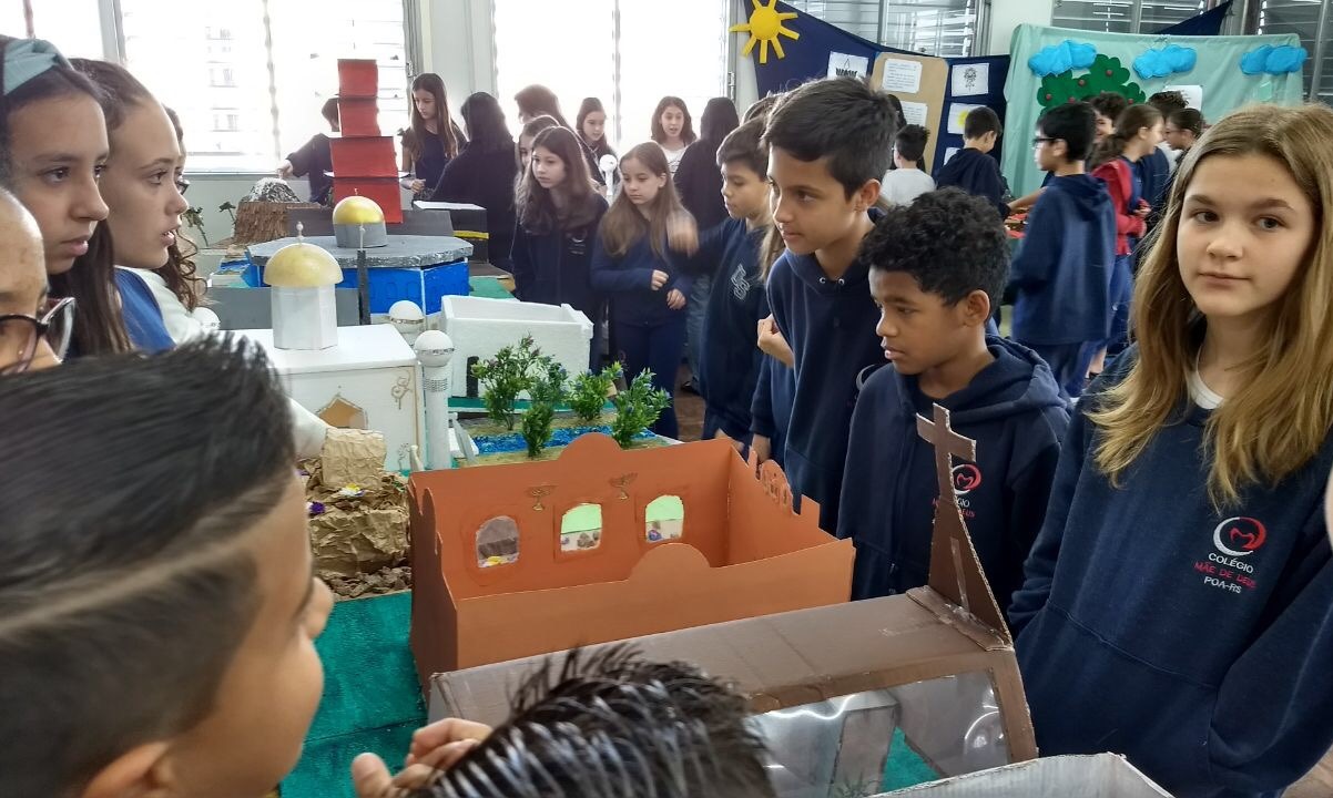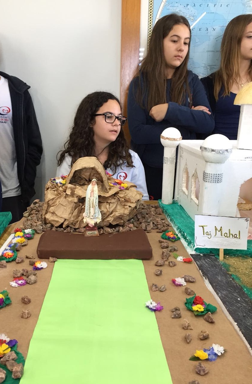 Após a realização dos estudos, os alunos construíram maquetes sobre os diferentes espaços sagrados, sendo eles, espaços construídos, como: Mesquitas, Igrejas, Sinagogas, Templos Budistas, Templos Indígenas e espaços da natureza, como: Rios, montanhas, grutas naturais, entre outras. Este trabalho foi apresentado na biblioteca para os alunos do 5º ano do Ensino Fundamental e à comunidade escolar por meio de exposição no saguão.