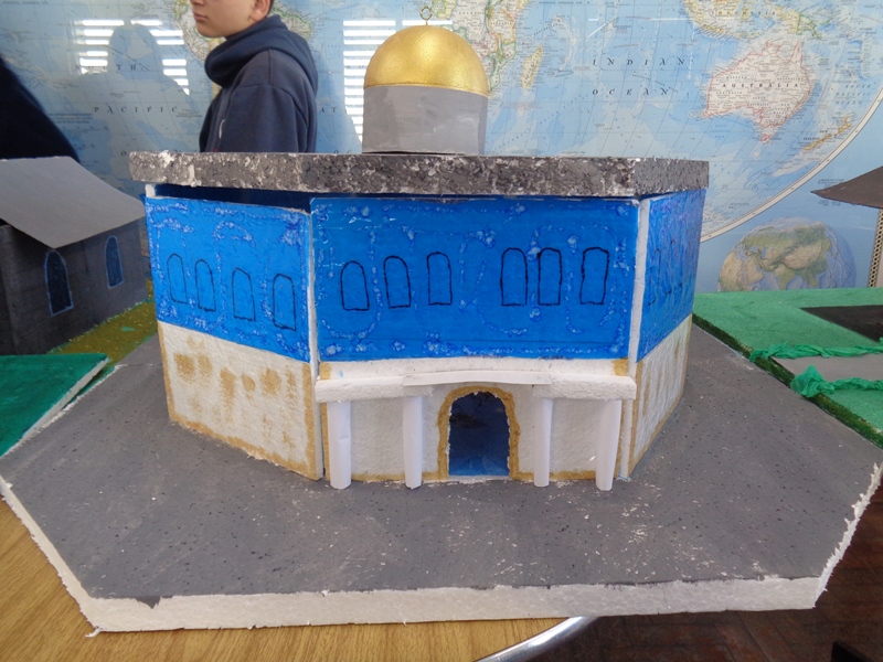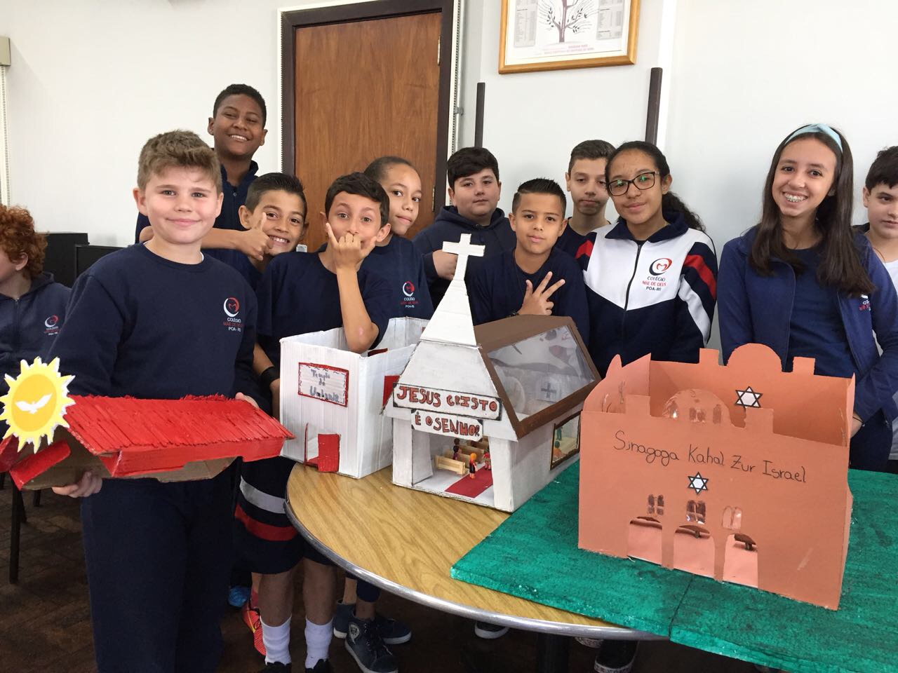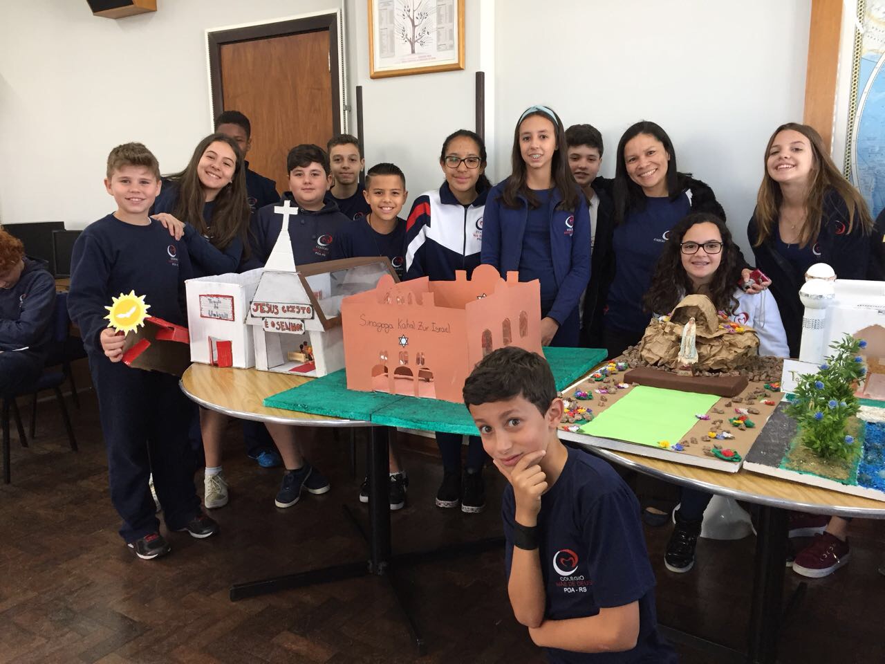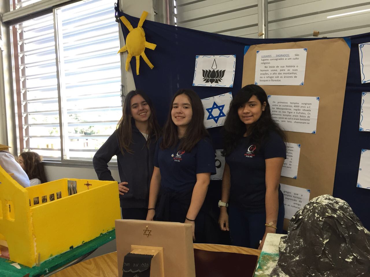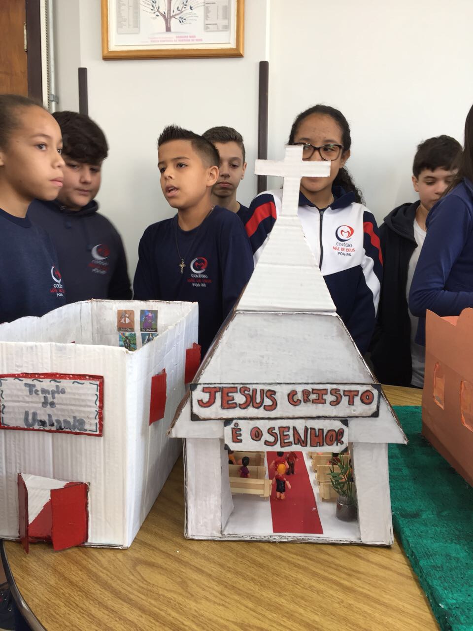 Após a realização dos estudos, os alunos construíram maquetes sobre os diferentes espaços sagrados, sendo eles, espaços construídos, como: Mesquitas, Igrejas, Sinagogas, Templos Budistas, Templos Indígenas e espaços da natureza, como: Rios, montanhas, grutas naturais, entre outras. Este trabalho foi apresentado na biblioteca para os alunos do 5º ano do Ensino Fundamental e à comunidade escolar por meio de exposição no saguão.