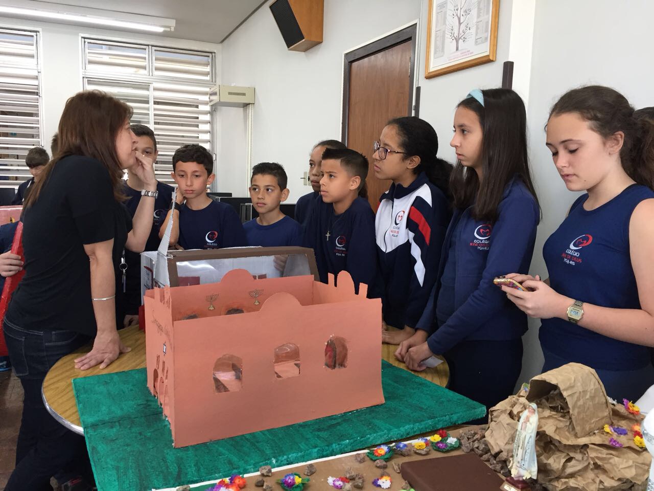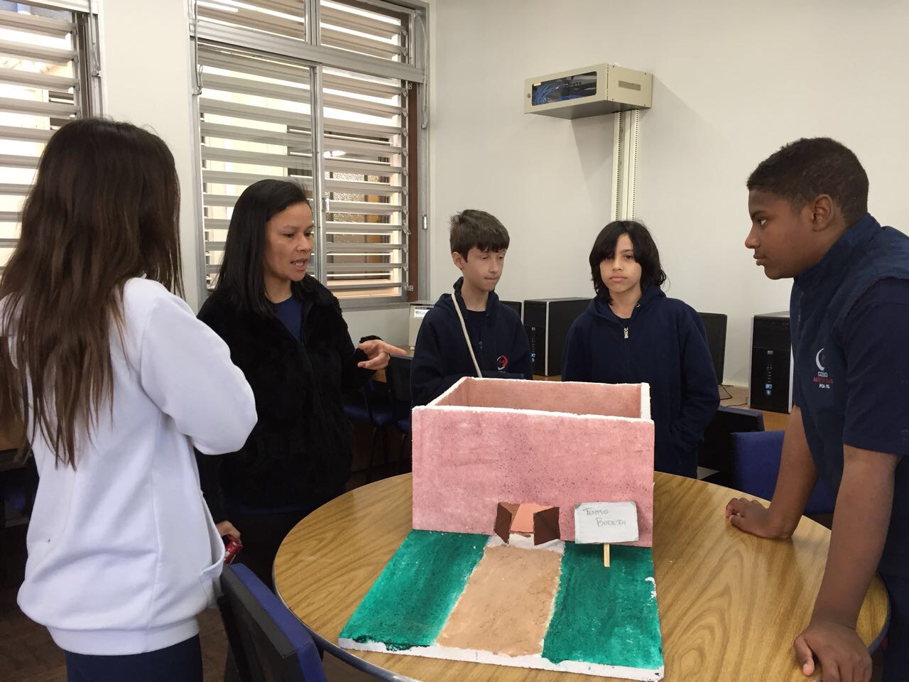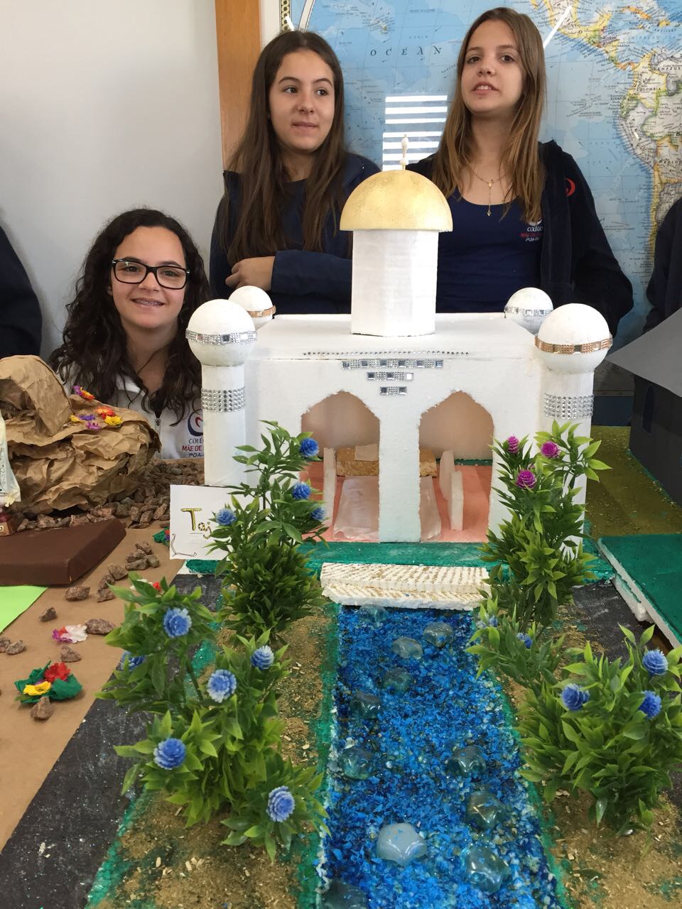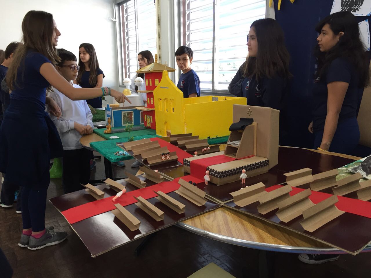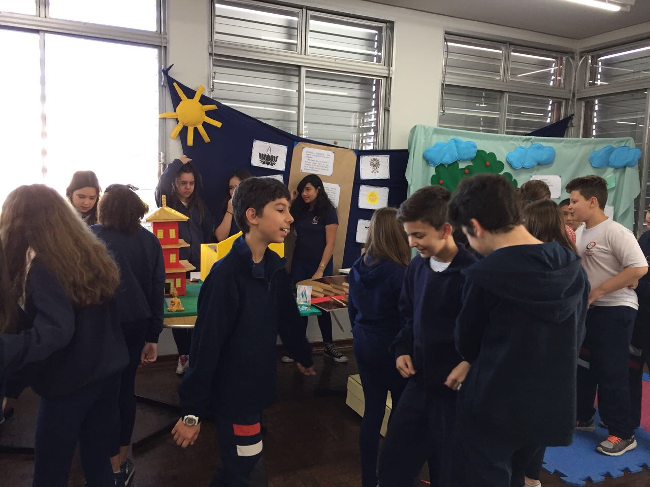 Após a realização dos estudos, os alunos construíram maquetes sobre os diferentes espaços sagrados, sendo eles, espaços construídos, como: Mesquitas, Igrejas, Sinagogas, Templos Budistas, Templos Indígenas e espaços da natureza, como: Rios, montanhas, grutas naturais, entre outras. Este trabalho foi apresentado na biblioteca para os alunos do 5º ano do Ensino Fundamental e à comunidade escolar por meio de exposição no saguão.