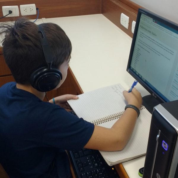 No dia 13 de abril, os alunos da turma 43, junto com a professora Daniela Figueira, fizeram uma atividade de pesquisa para sistematizar os conceitos de ortografia e gramática estudados nas aulas.