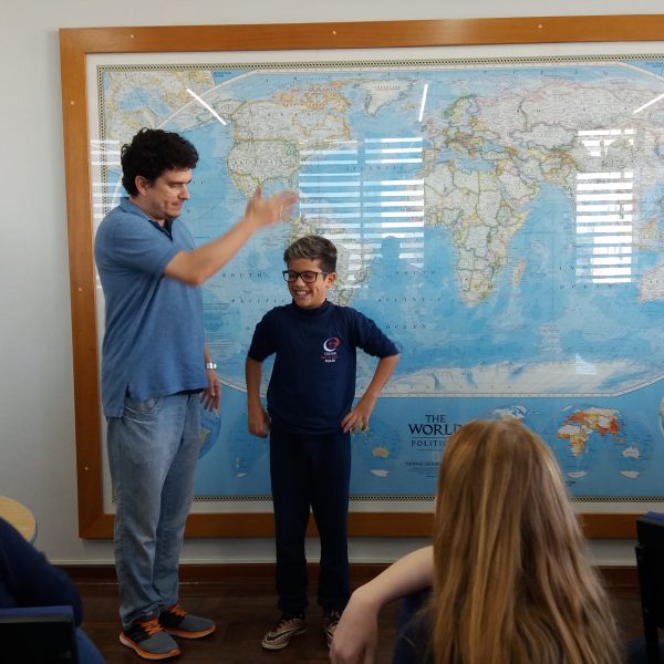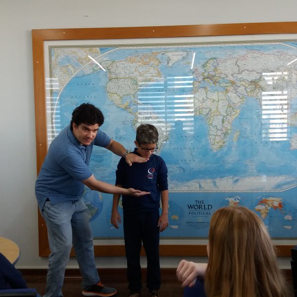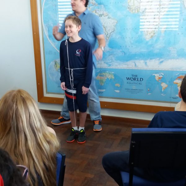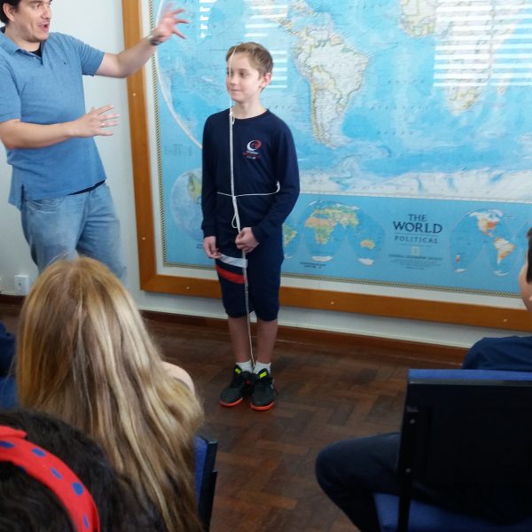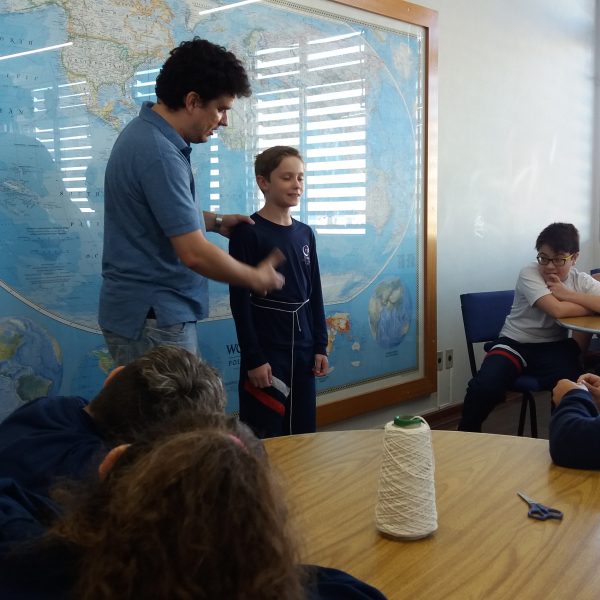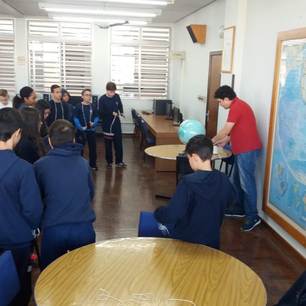 Conforme relatou o Professor Henry Juchem: “Essa é uma prática desenvolvida para trabalhar noções necessárias para o entendimento de cartografia, latitude e longitude e coordenadas geográficas. Consiste em, a partir da percepção do próprio corpo, realizar a transposição para compreensão das dimensões do Planeta Terra numa representação cartográfica. Dessa forma, os alunos, ao perceberem que seus corpos possuem distribuições e medidas que respeitam uma proporcionalidade, passam a entender e compreender melhor as dimensões trabalhadas seja em um mapa planisfério ou no globo terrestre”.