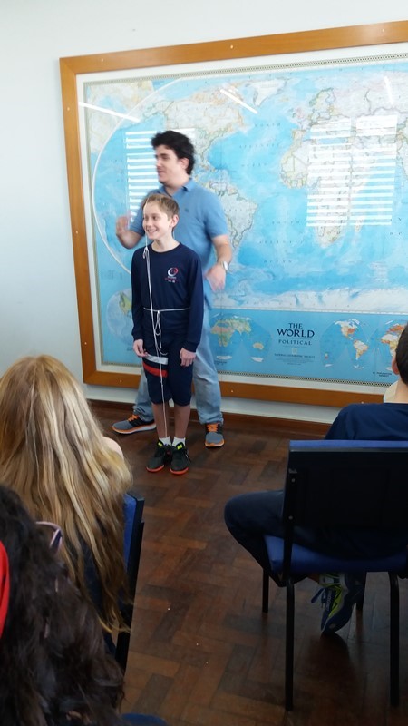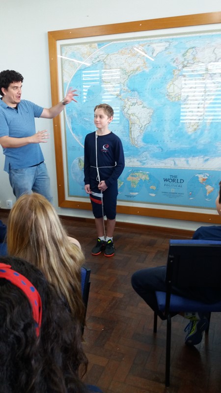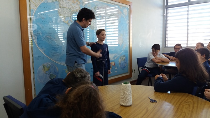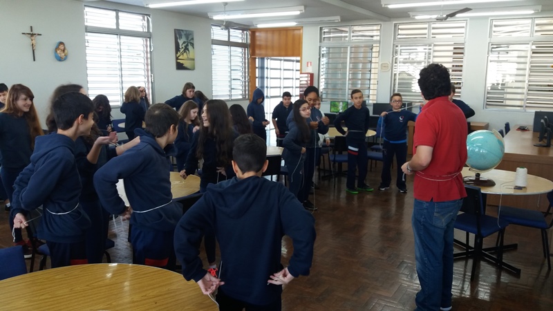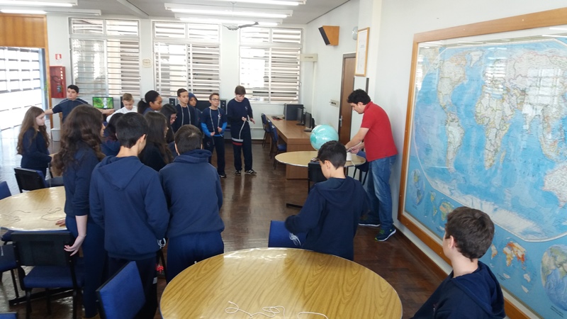 Conforme relatou o Professor Henry Juchem: “Essa é uma prática desenvolvida para trabalhar noções necessárias para o entendimento de cartografia, latitude e longitude e coordenadas geográficas. Consiste em, a partir da percepção do próprio corpo, realizar a transposição para compreensão das dimensões do Planeta Terra numa representação cartográfica. Dessa forma, os alunos, ao perceberem que seus corpos possuem distribuições e medidas que respeitam uma proporcionalidade, passam a entender e compreender melhor as dimensões trabalhadas seja em um mapa planisfério ou no globo terrestre”.