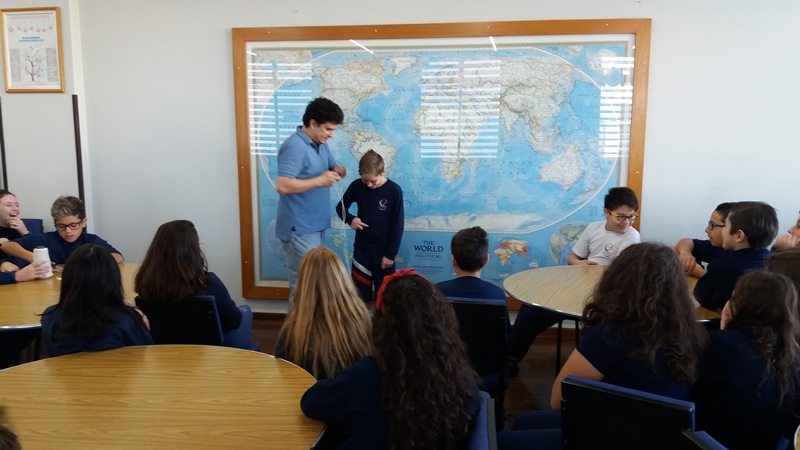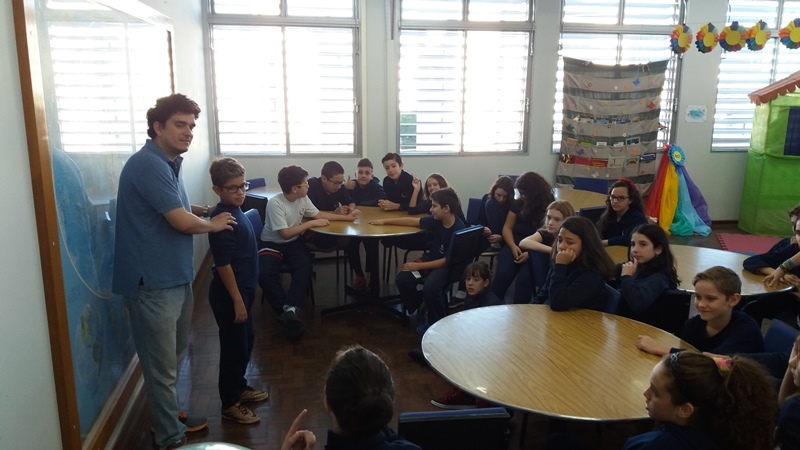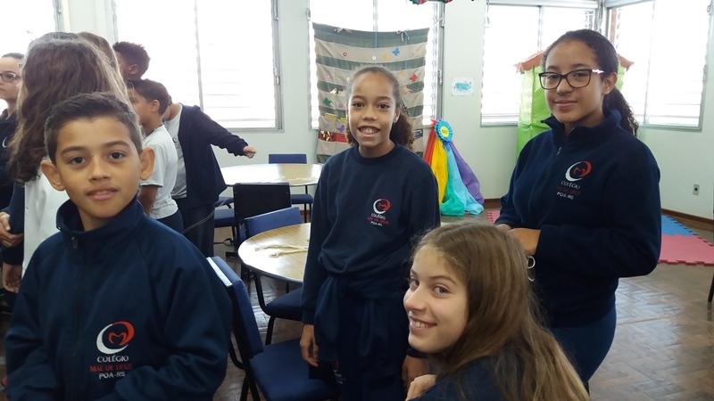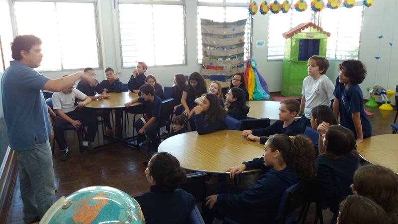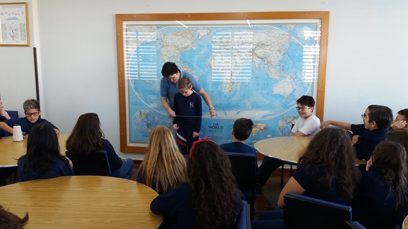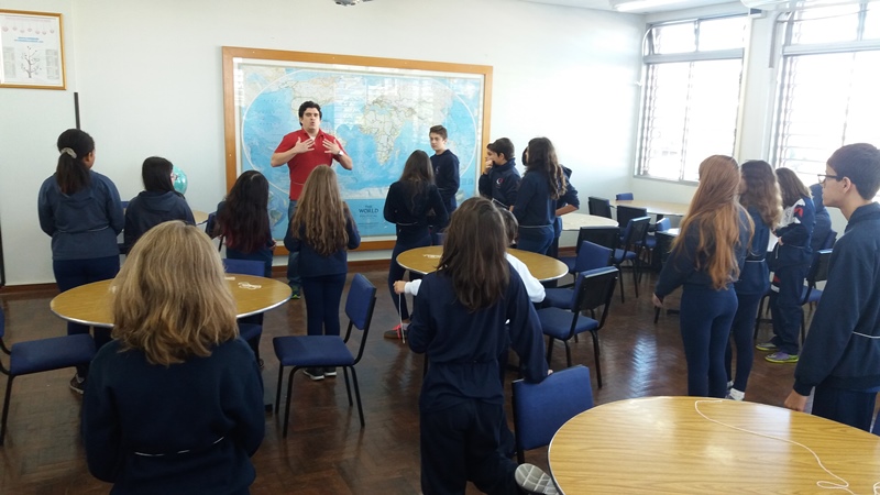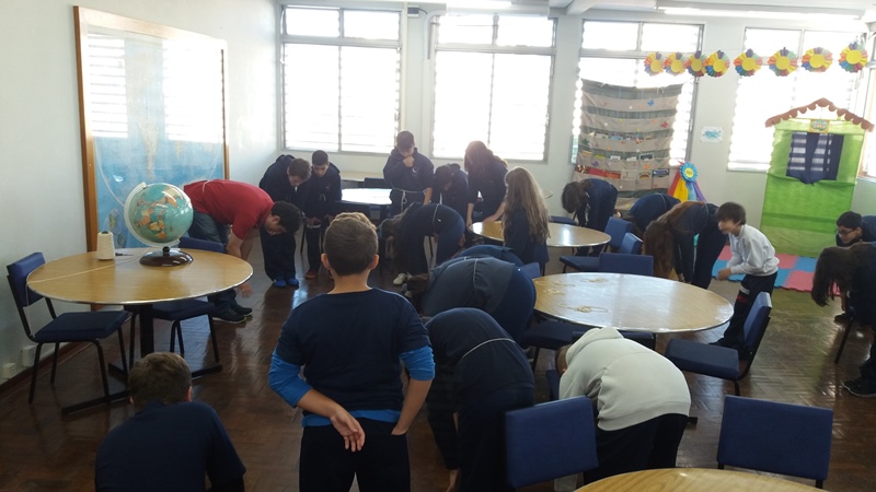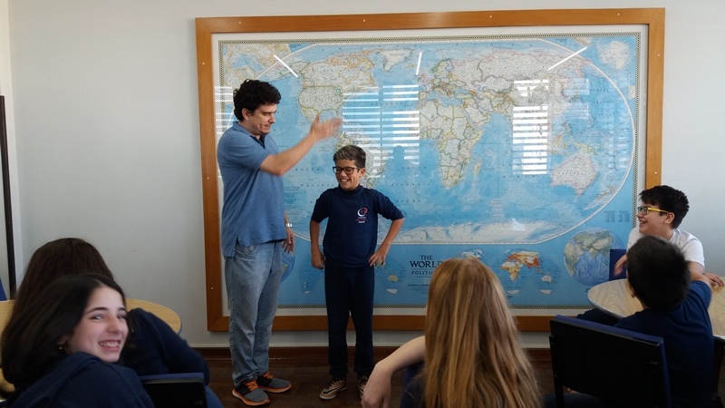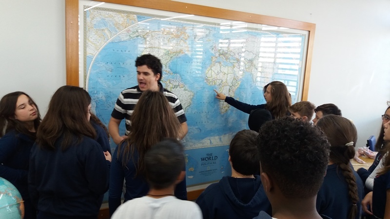 Nas aulas de geografia as turmas do 6º ano do Ensino Fundamental foram convidadas a desenvolver uma atividade junto ao “Mapa Mundi” localizado na sala de pesquisa da biblioteca.