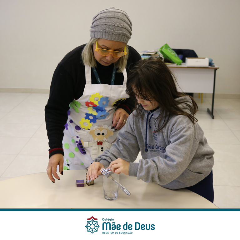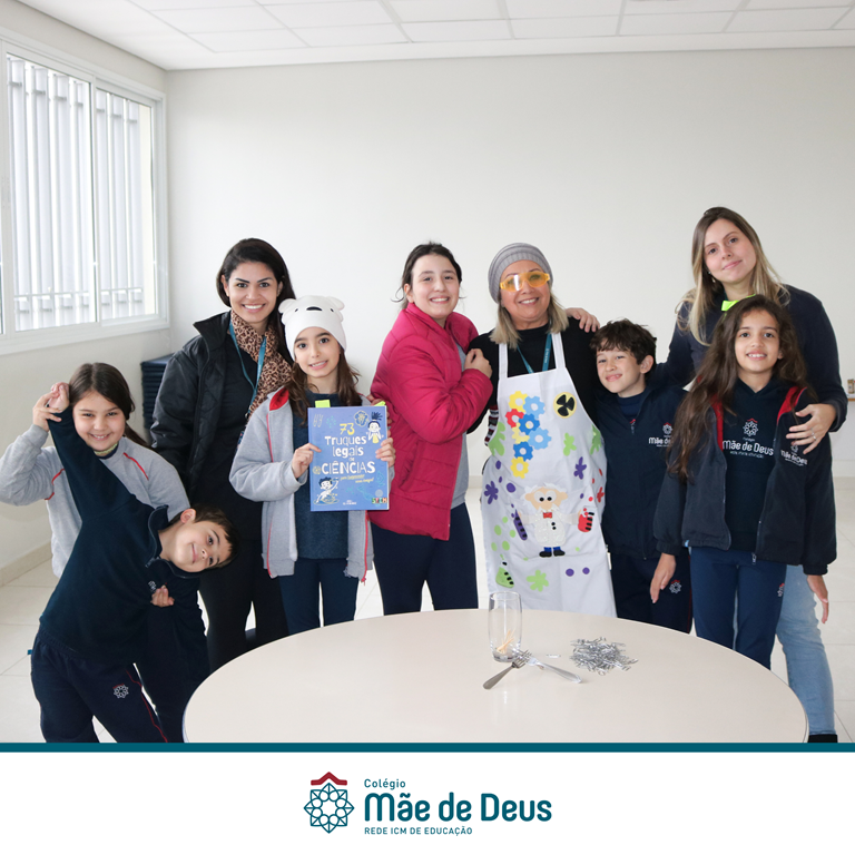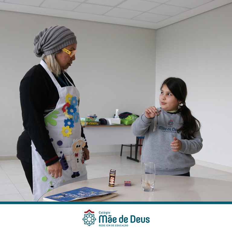 Durante a Oficina de Ciências, realizada no Turno Extracurricular, os alunos utilizaram como base o livro “Truques legais de ciências” para realizarem na prática alguns experimentos.
