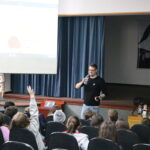 Já com os alunos do 9º Ano do Ensino Fundamental, a dinâmica foi o Paredão dos Clássicos. A iniciativa trata da problematização sobre a cultura em paralelo ao cancelamento das obras clássicas por parte do público jovem. Também houve a leitura da crônica “Pertencer”, de Clarice Lispector, presente no livro “A descoberta do mundo”, com discussão sobre o pertencimento e discussão sobre produção de conteúdo.