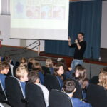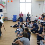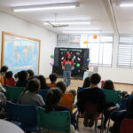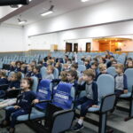 Alunos do 3º e 4º Ano Ensino do Fundamental participaram do bate papo com o cartunista, ilustrador e publicitário, Pedro Leite. O colorido tomou conta do auditório do colégio. Pedro contou com riqueza de detalhes, através de ilustrações criativas, as aventuras dos personagens da série “Sofia e Otto”, conhecendo Porto Alegre, a partir dos principais pontos turísticos da Capital dos gaúchos. Já no segundo livro, sobre a imigração italiana no Rio Grande do Sul, o autor apresentou a história de superação e esforço que foi a vinda dos imigrantes italianos ao Brasil, em especial os que migraram para a Serra Gaúcha. Os alunos adoraram o encontro, ficaram ainda mais motivados a pesquisar e aprender sobre as histórias da nossa cidade e Estado.