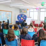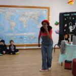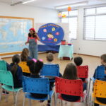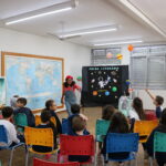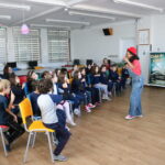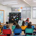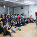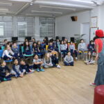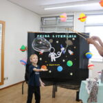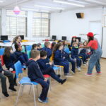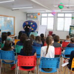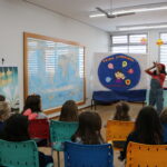 Os cinco sentidos dos alunos do 1º Ano do Ensino Fundamental foram aguçados com a apresentação da contadora de histórias Carmem Lima, através da narrativa do livro: “Perdidos na mata: explorando os cinco sentidos”, de Ricardo Dreguer. Os alunos mostraram-se perceptivos, permitindo-se captar as informações do ambiente através dos sentidos da visão, audição, paladar, olfato e tato. Já na segunda contação, os alunos do 2º Ano do Ensino Fundamental viajaram pelo “Espaço”. A artista envolveu os estudantes em um universo de conhecimento e curiosidades.