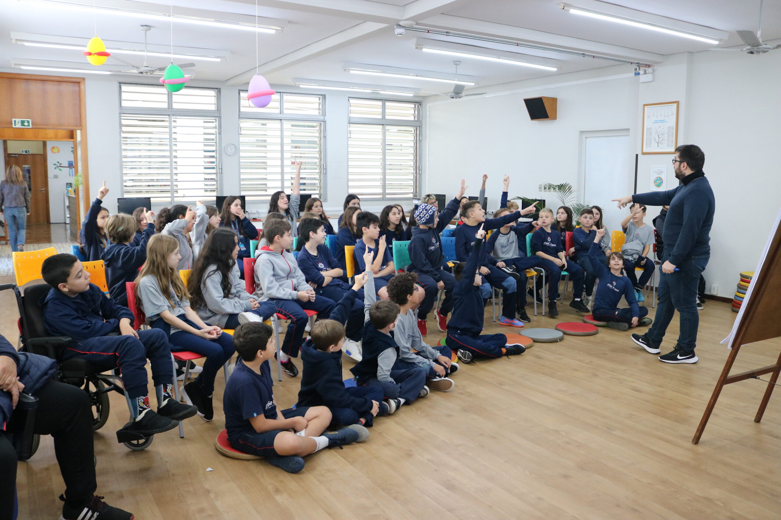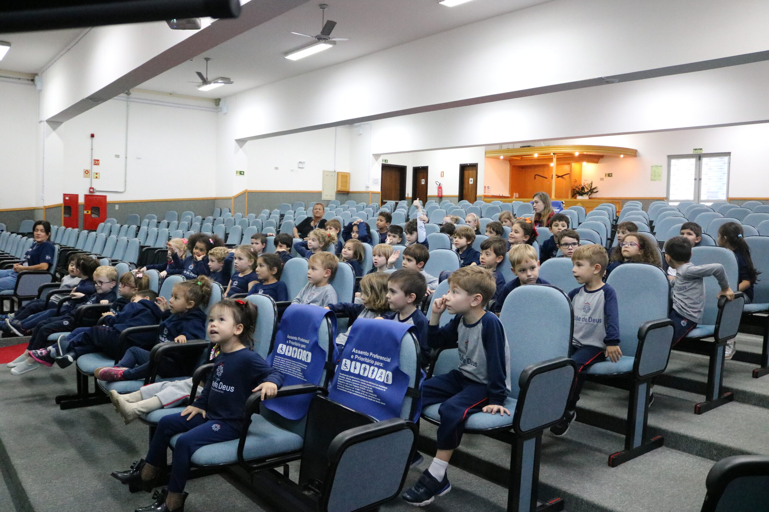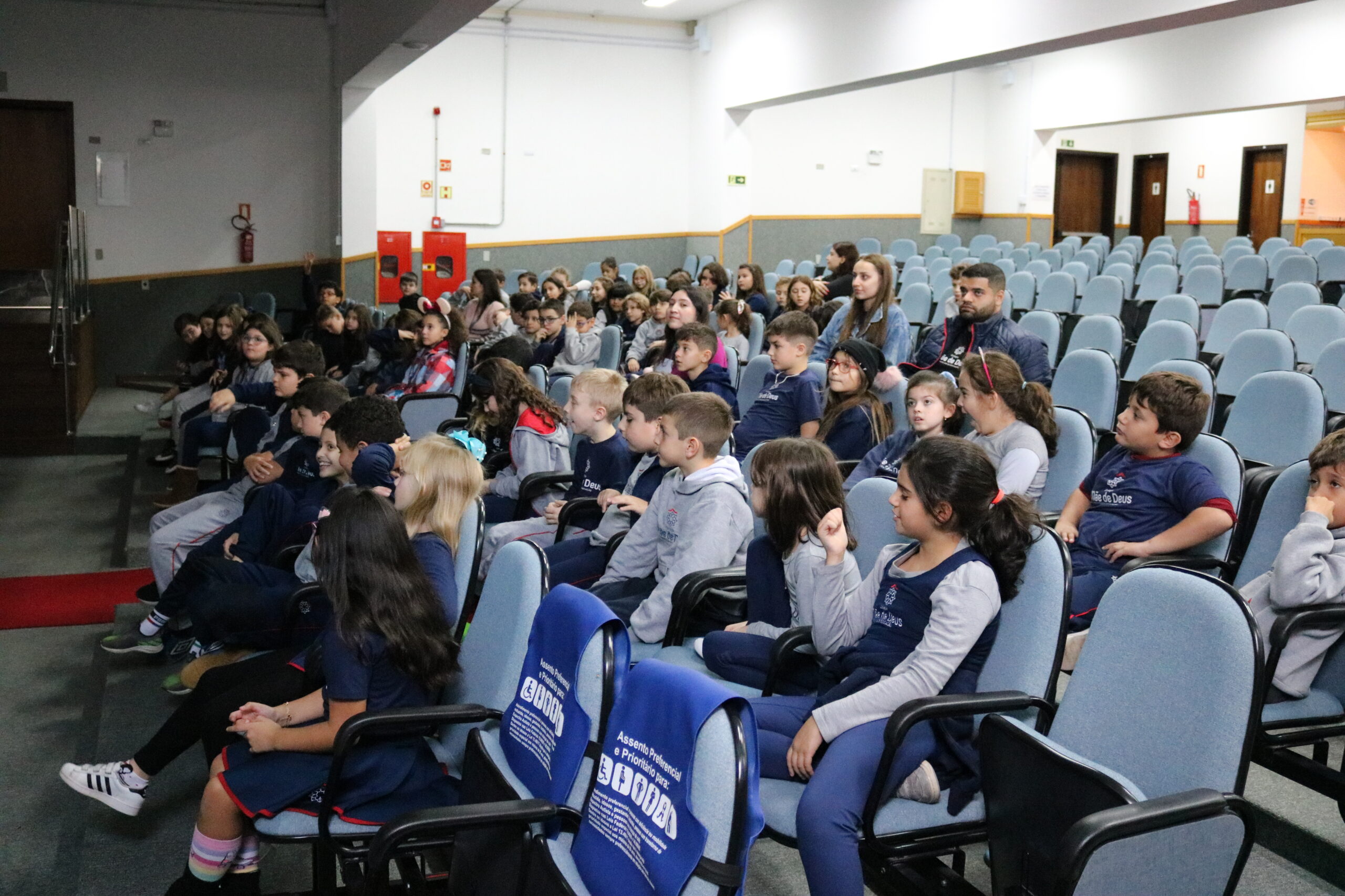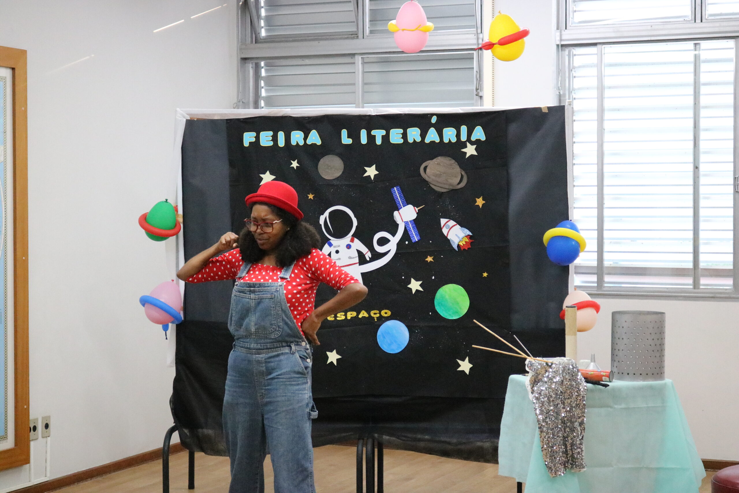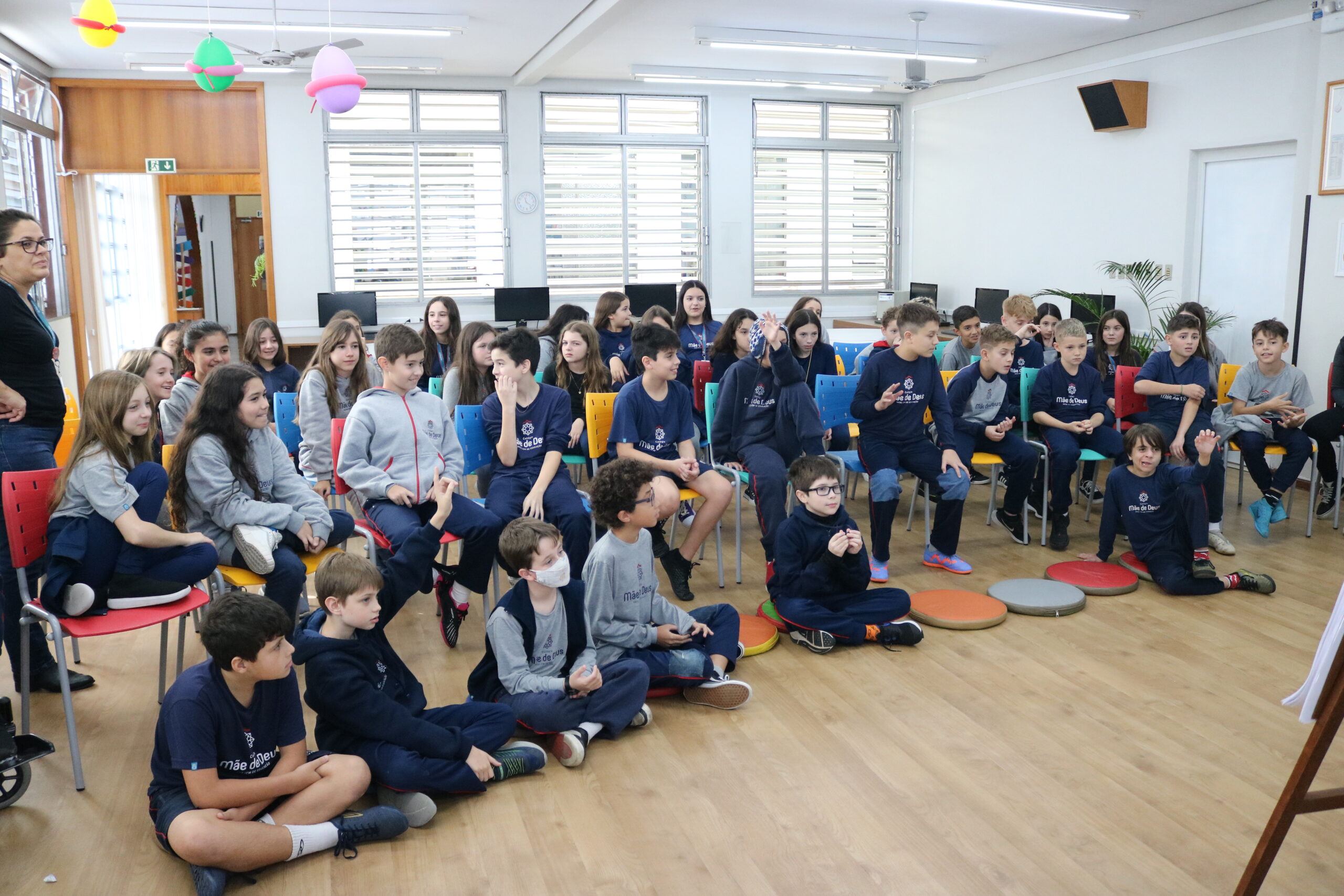 Os cinco sentidos dos alunos do 1º Ano do Ensino Fundamental foram aguçados com a apresentação da contadora de histórias Carmem Lima, através da narrativa do livro: “Perdidos na mata: explorando os cinco sentidos”, de Ricardo Dreguer. Os alunos mostraram-se perceptivos, permitindo-se captar as informações do ambiente através dos sentidos da visão, audição, paladar, olfato e tato. Já na segunda contação, os alunos do 2º Ano do Ensino Fundamental viajaram pelo “Espaço”. A artista envolveu os estudantes em um universo de conhecimento e curiosidades.