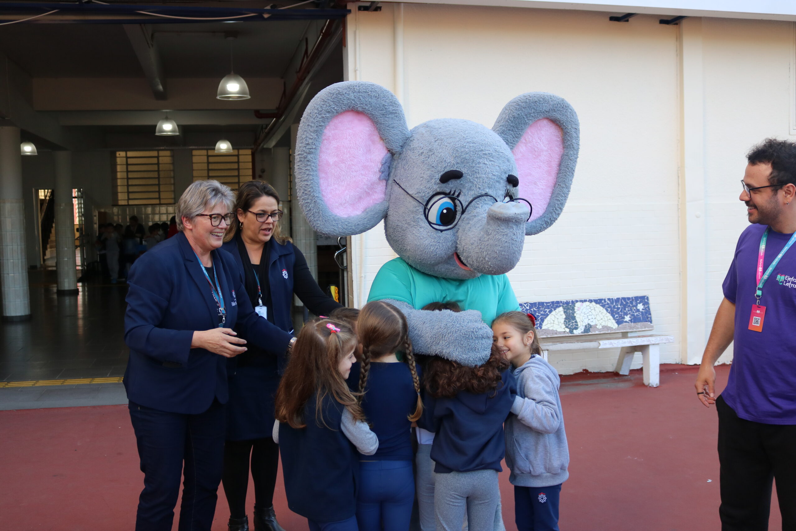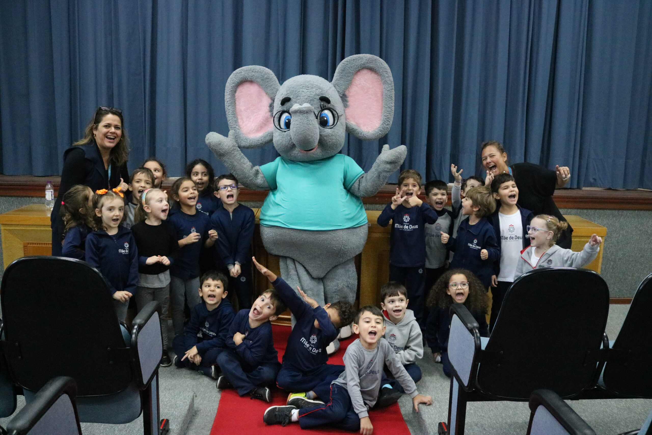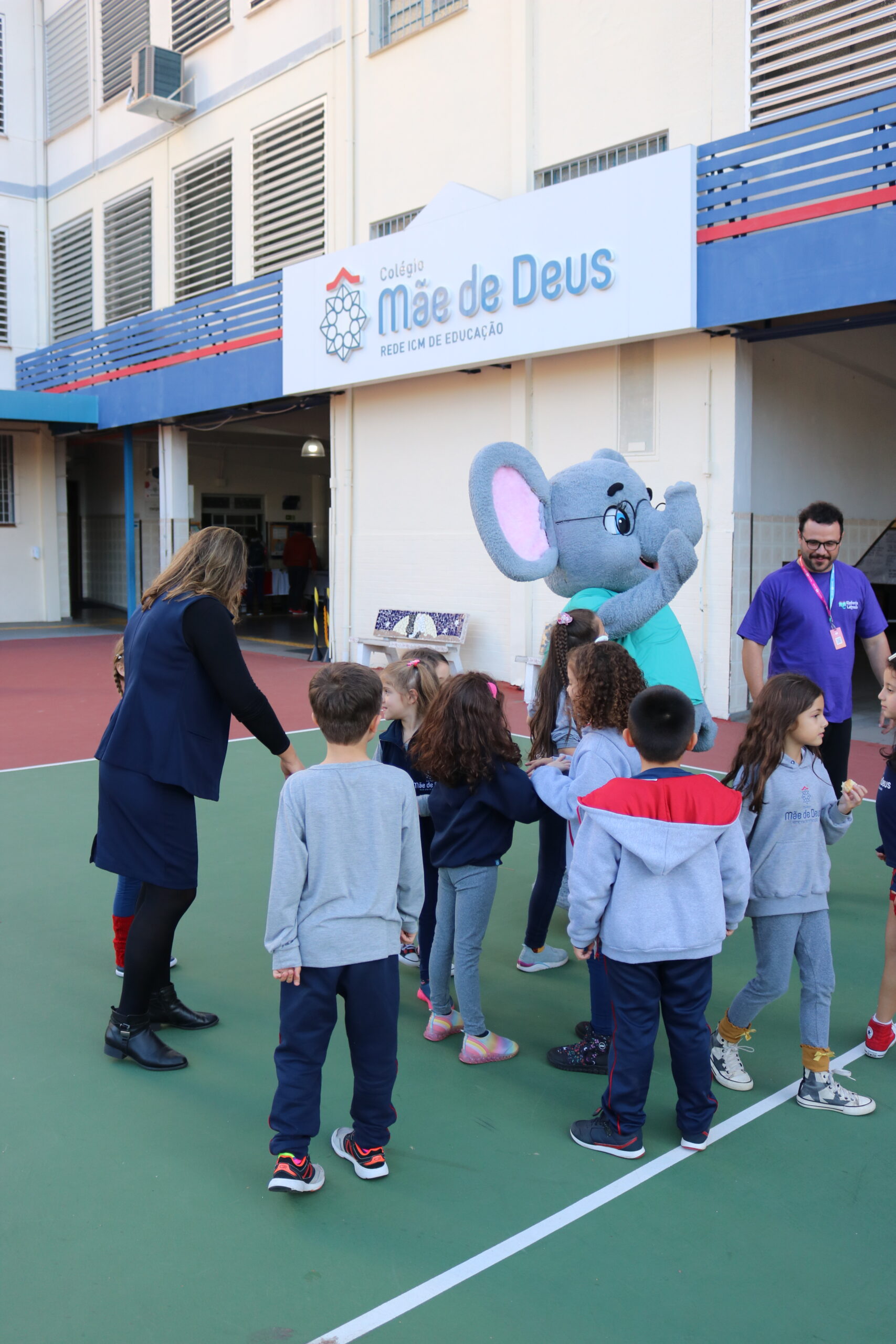 As turmas da Educação Infantil receberam uma visita muito especial: o Sr. Elefante, mascote da Plataforma Elefante Letrado. Além de contar histórias, ele também fez brincadeiras que envolveram os pequenos contagiando o ambiente de alegria e diversão.