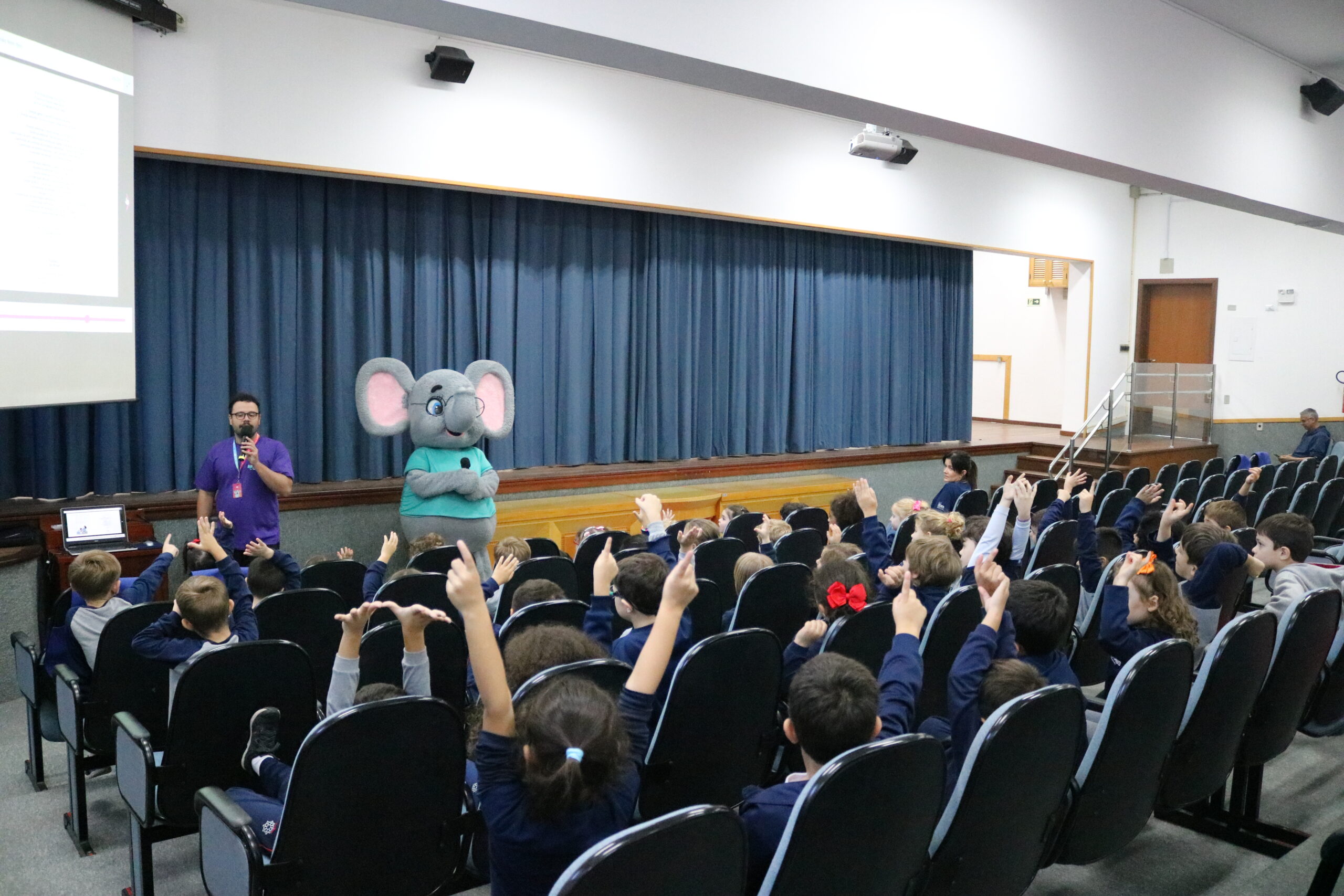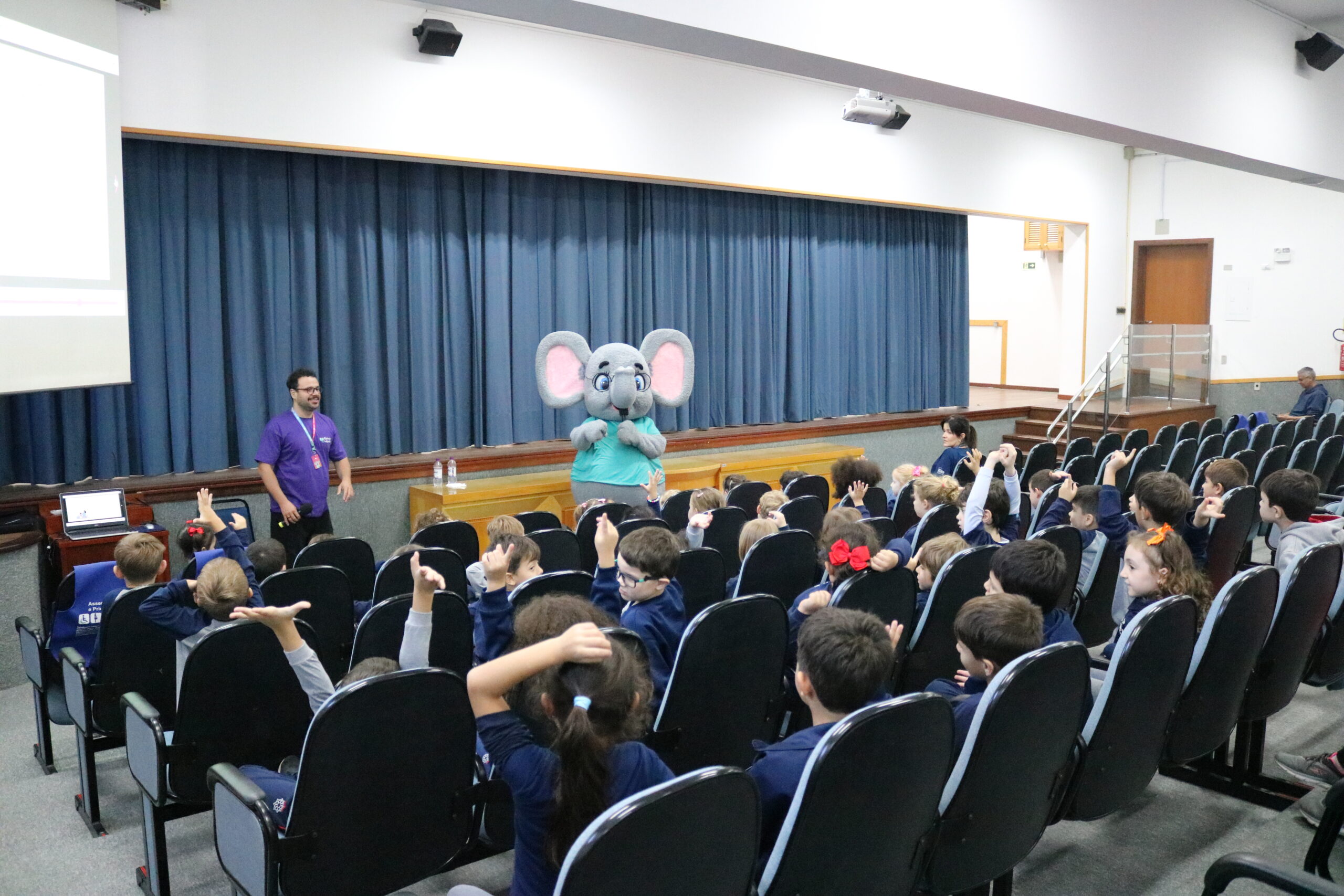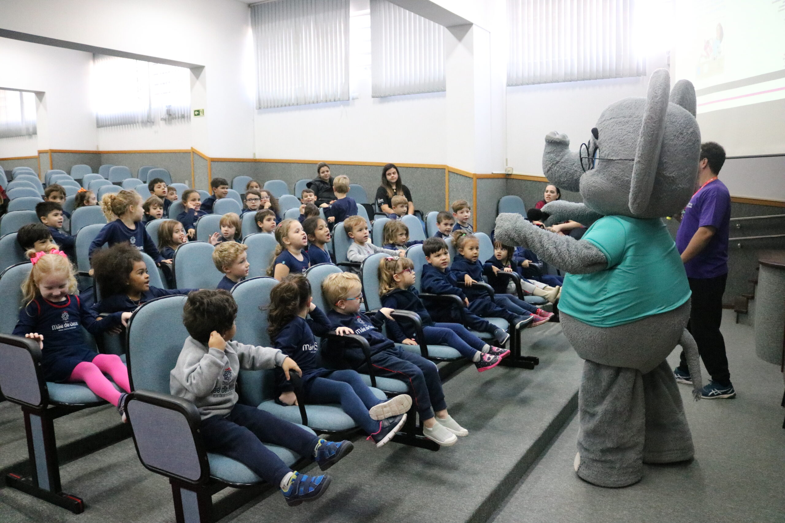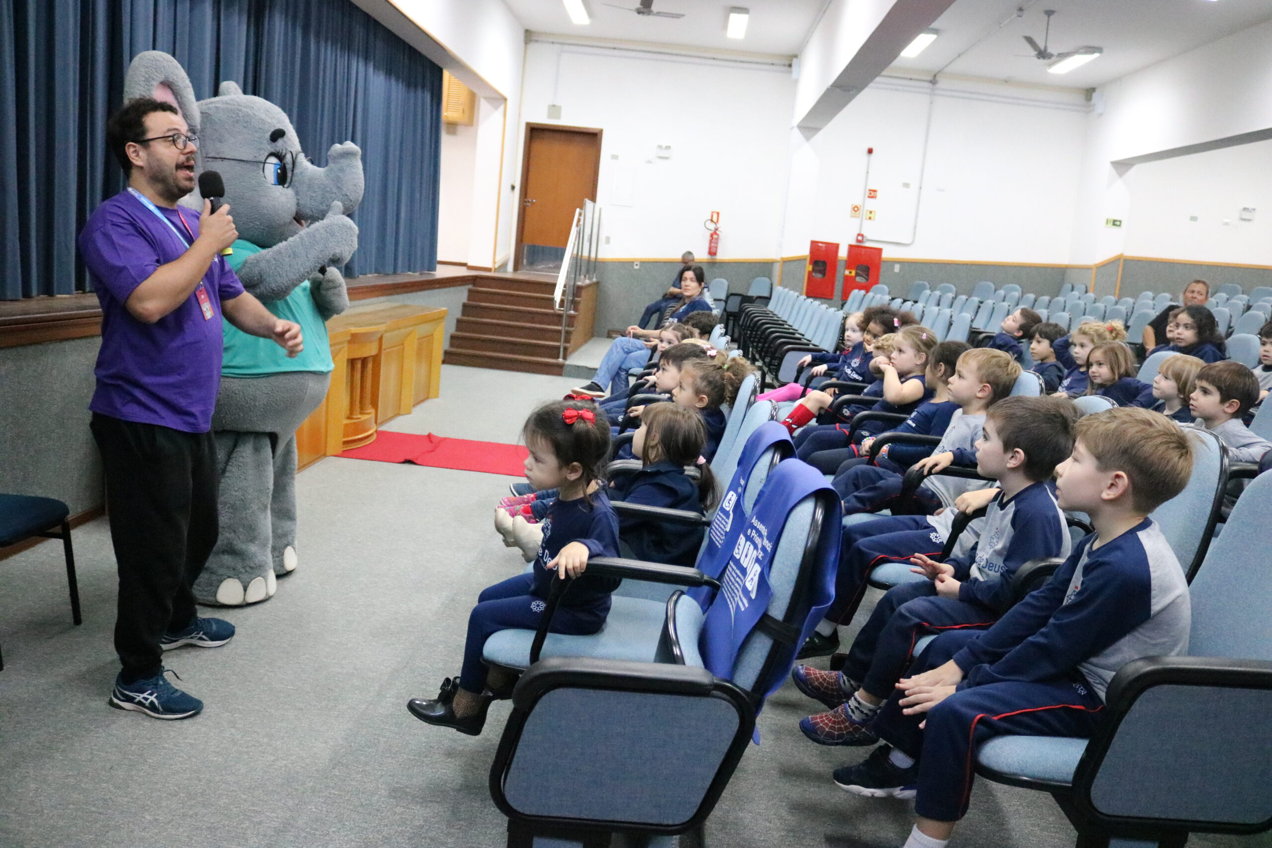 As turmas da Educação Infantil receberam uma visita muito especial: o Sr. Elefante, mascote da Plataforma Elefante Letrado. Além de contar histórias, ele também fez brincadeiras que envolveram os pequenos contagiando o ambiente de alegria e diversão.