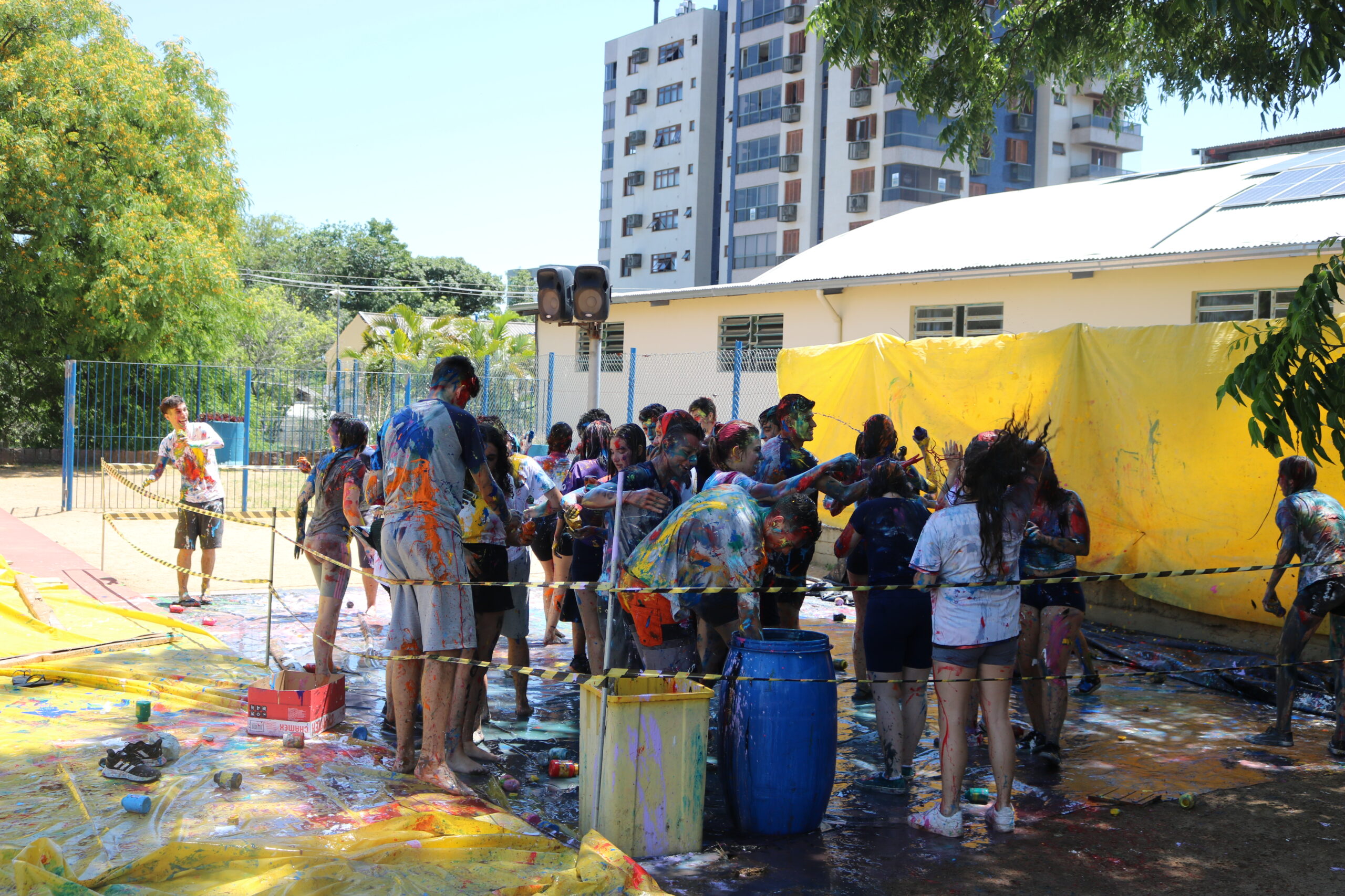 Com muitas cores, água, sorrisos e diversão, a turma do terceirão realizou na última sexta-feira (02) a Festa das Tintas, para celebrar a conclusão do Ensino Médio.