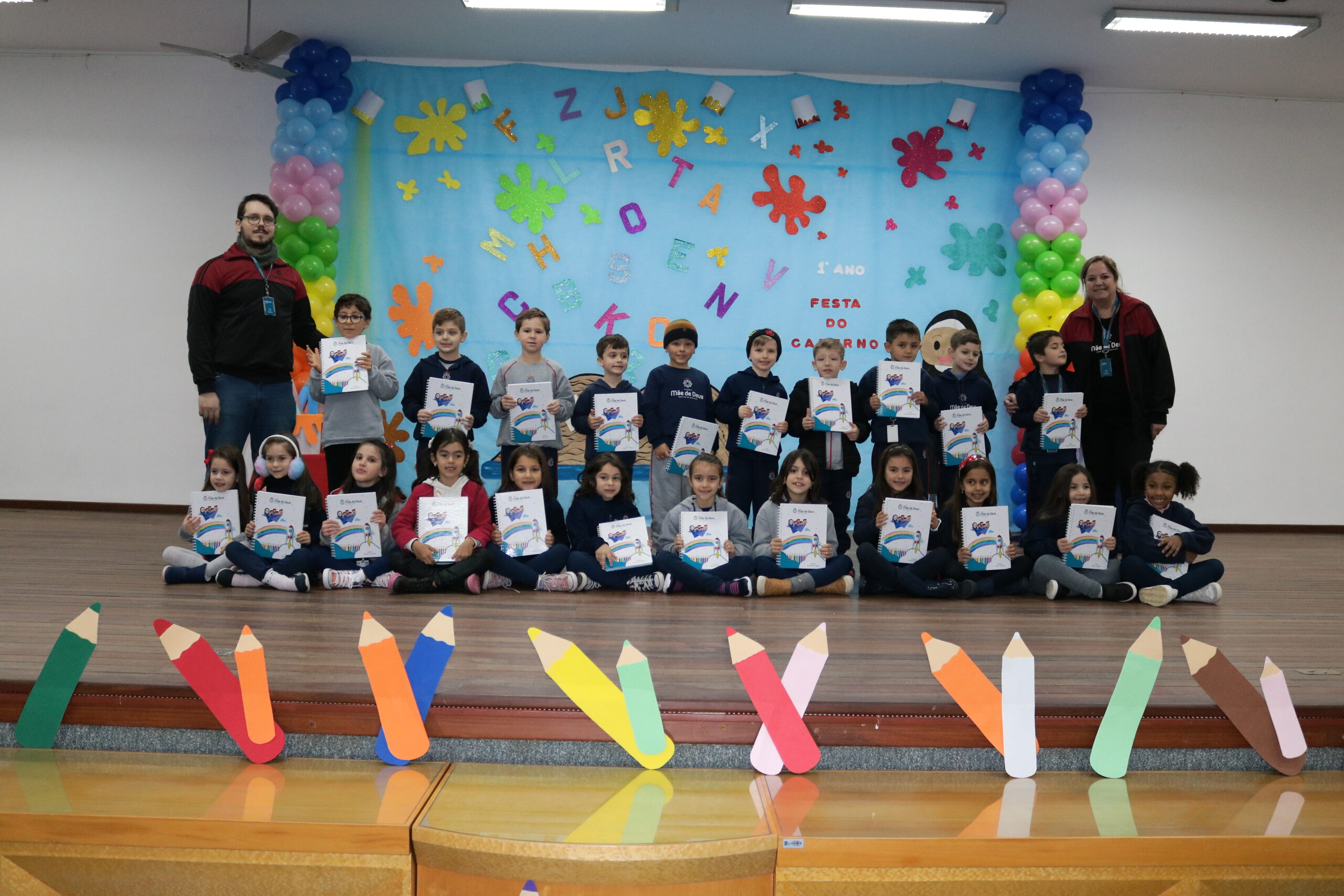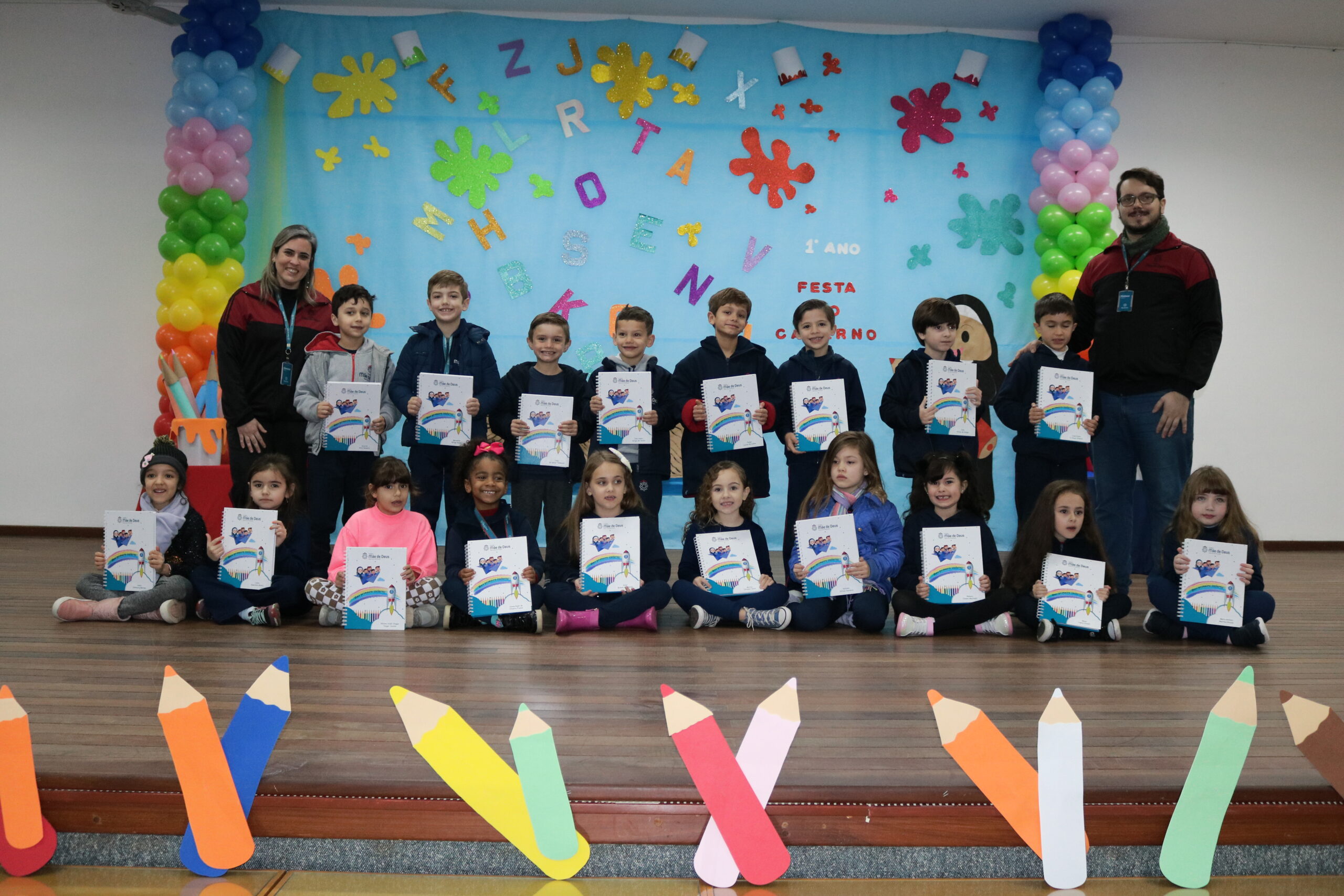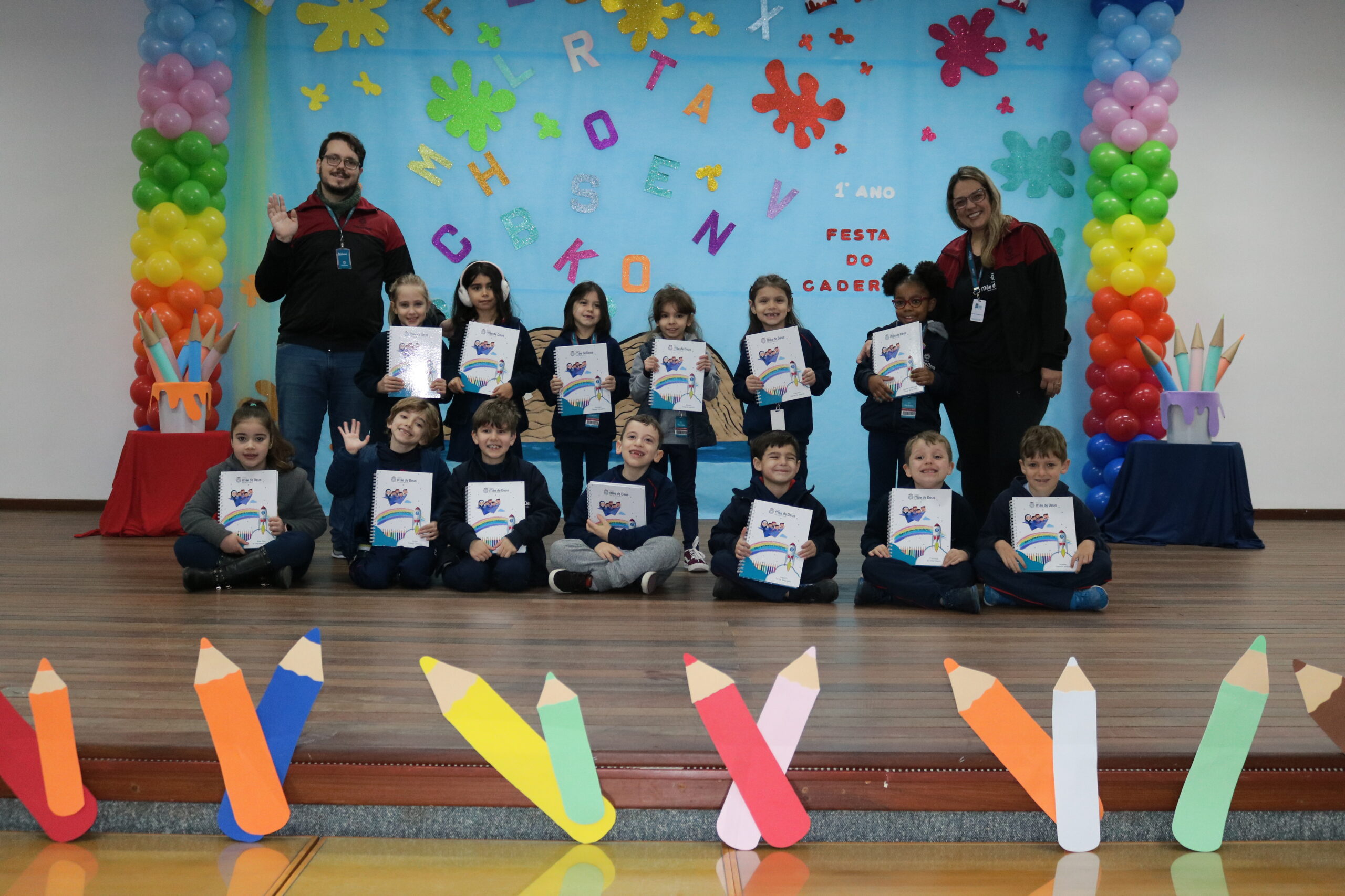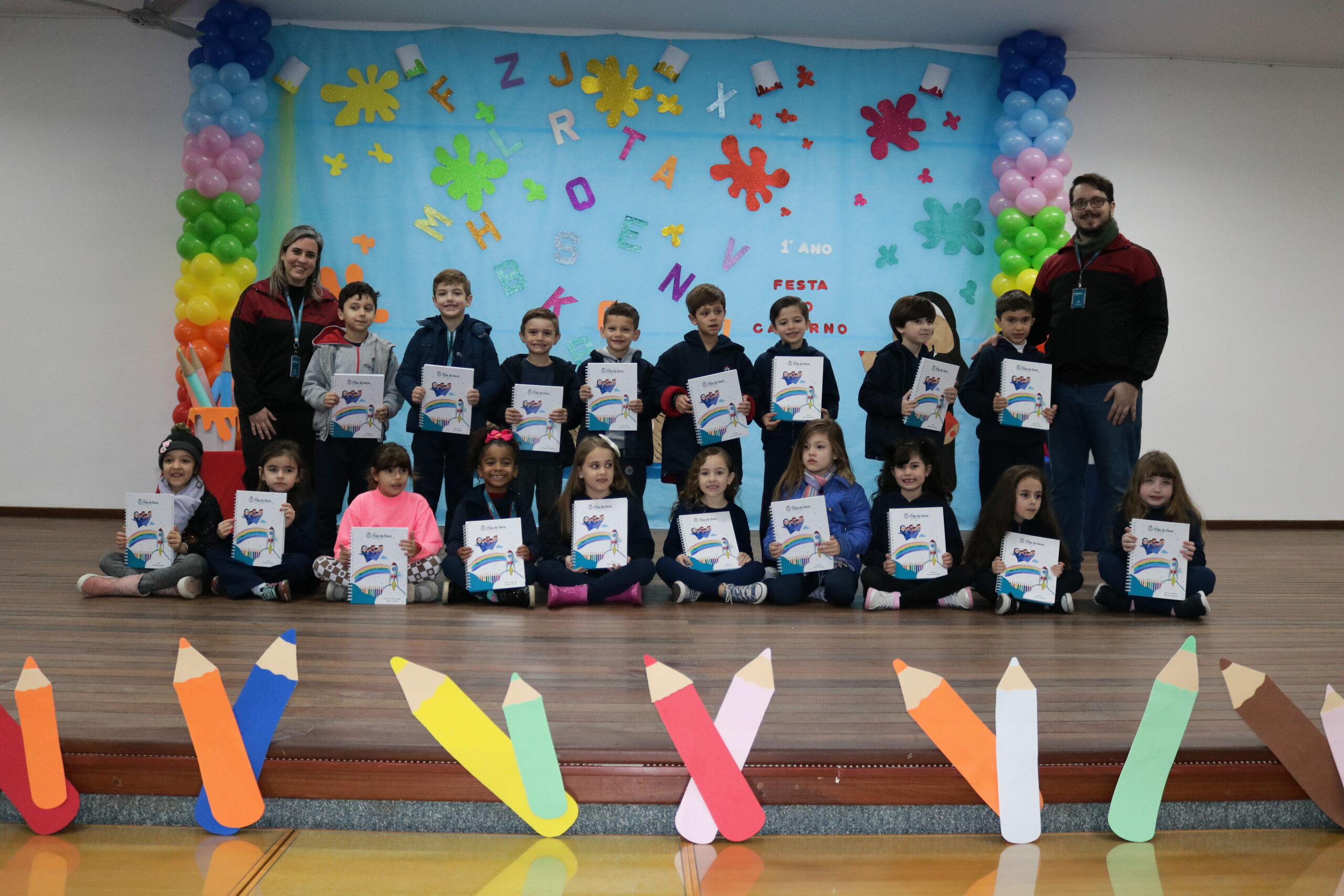 No dia 17 de junho, os alunos do 1º Ano do Ensino Fundamental e seus familiares, participaram de um momento muito importante no ciclo estudantil, onde as crianças receberam o seu primeiro caderno com linhas!