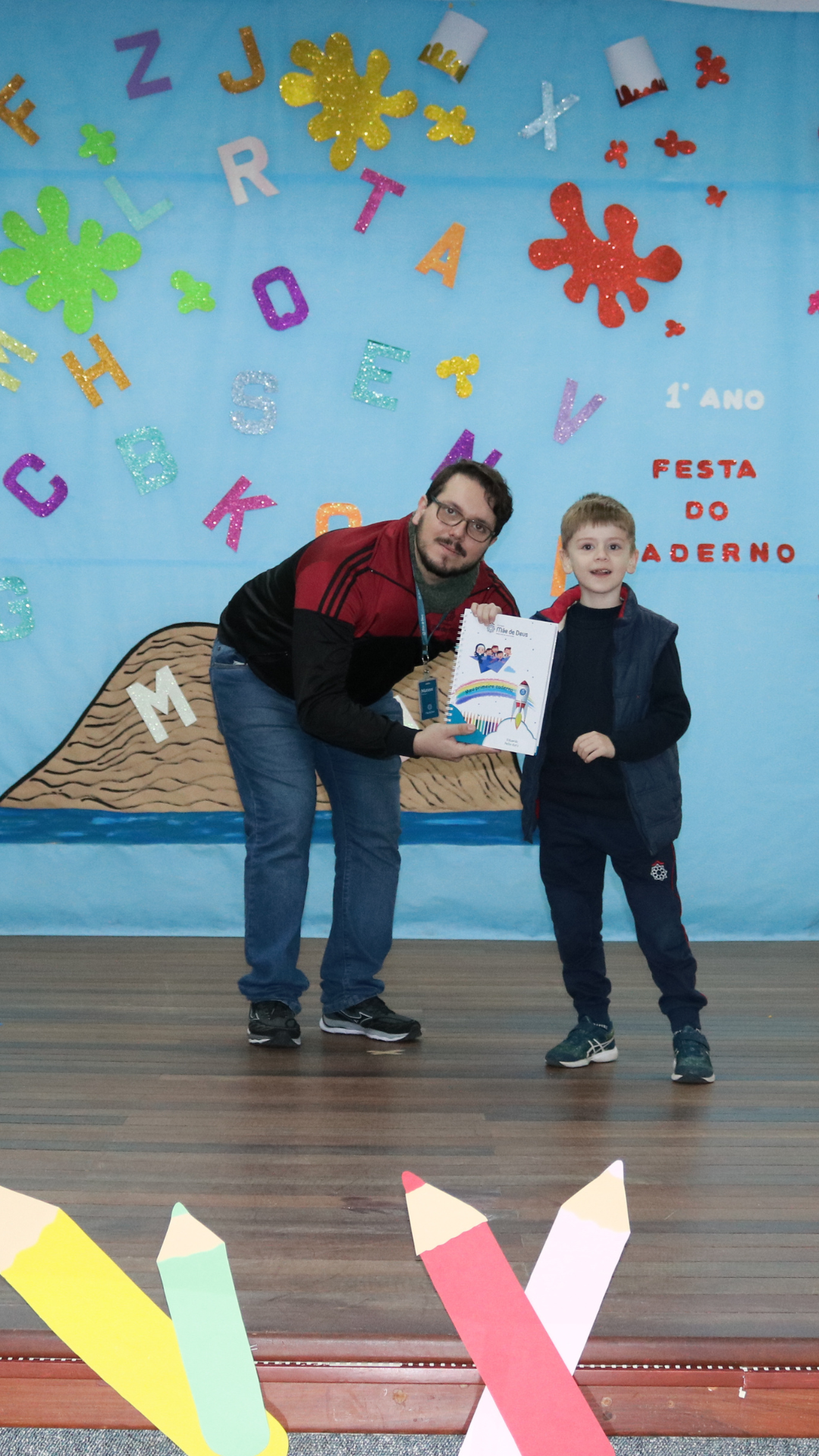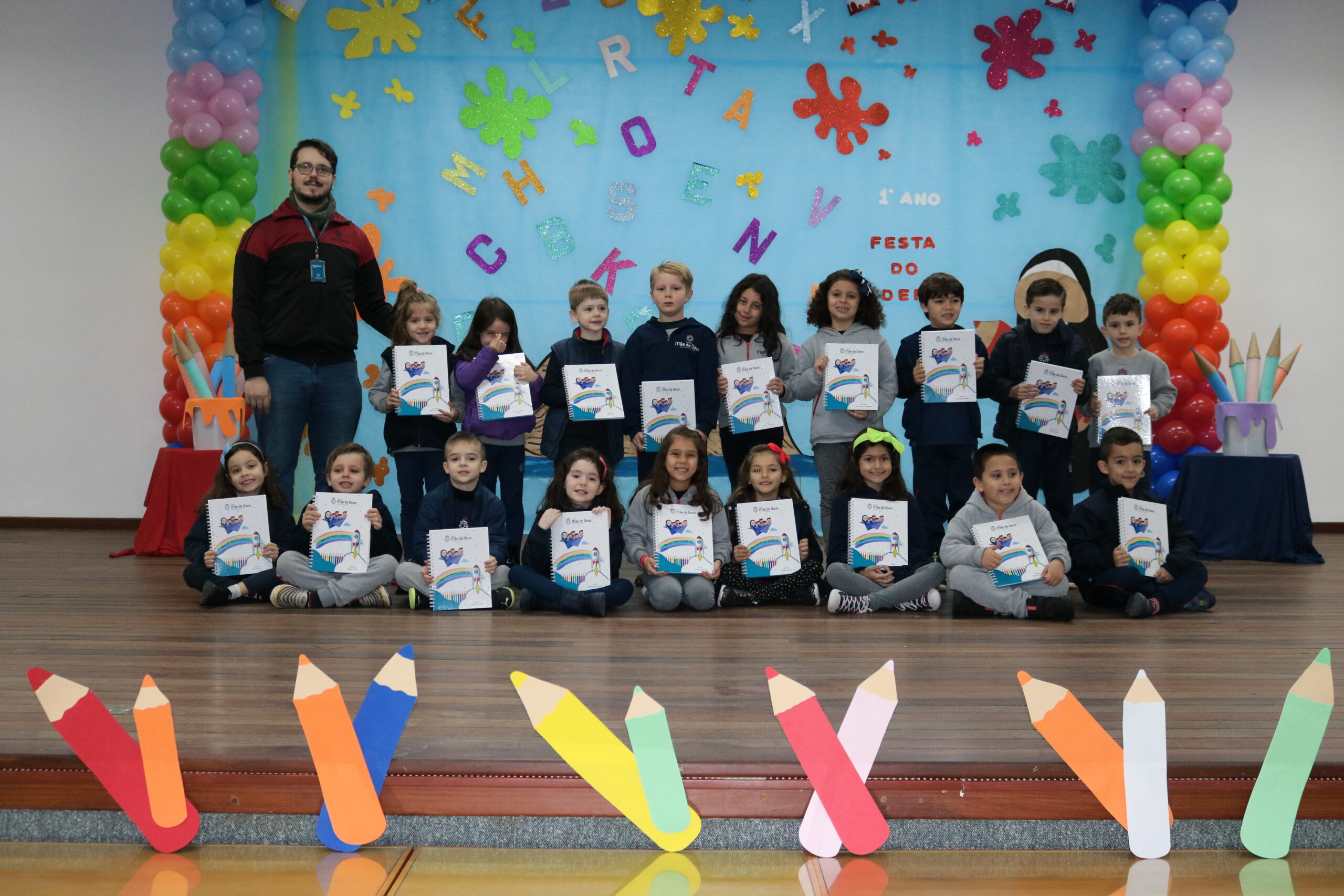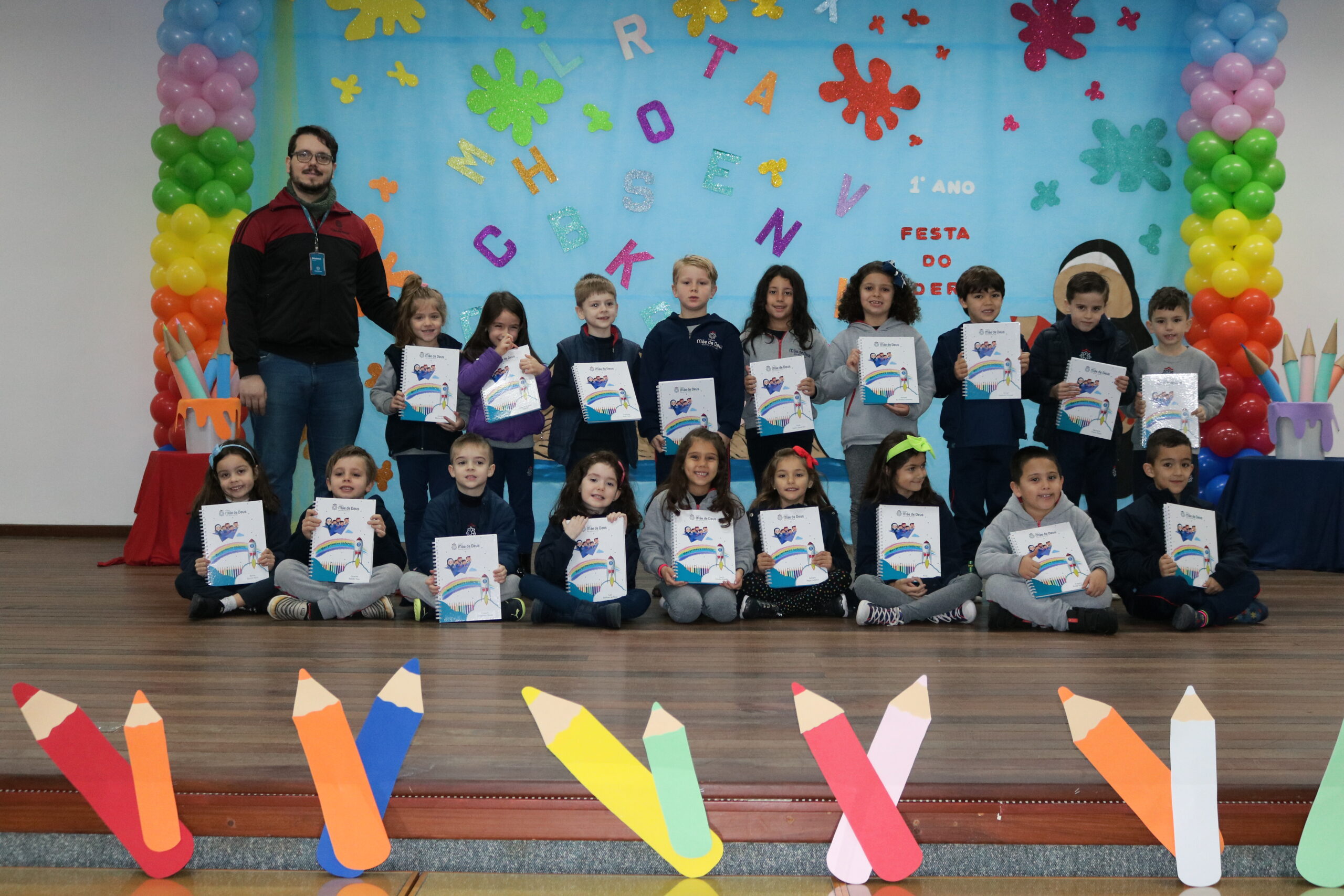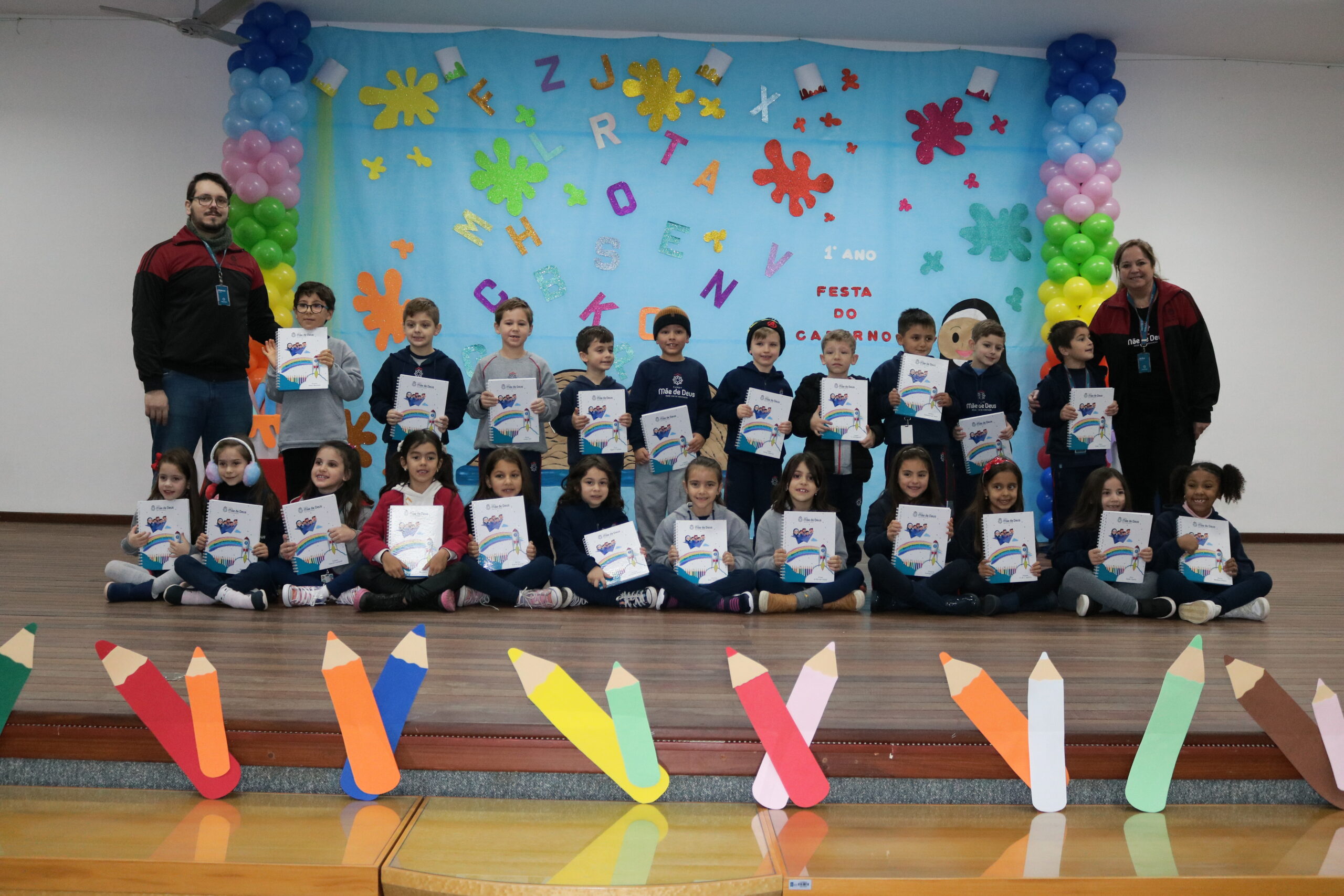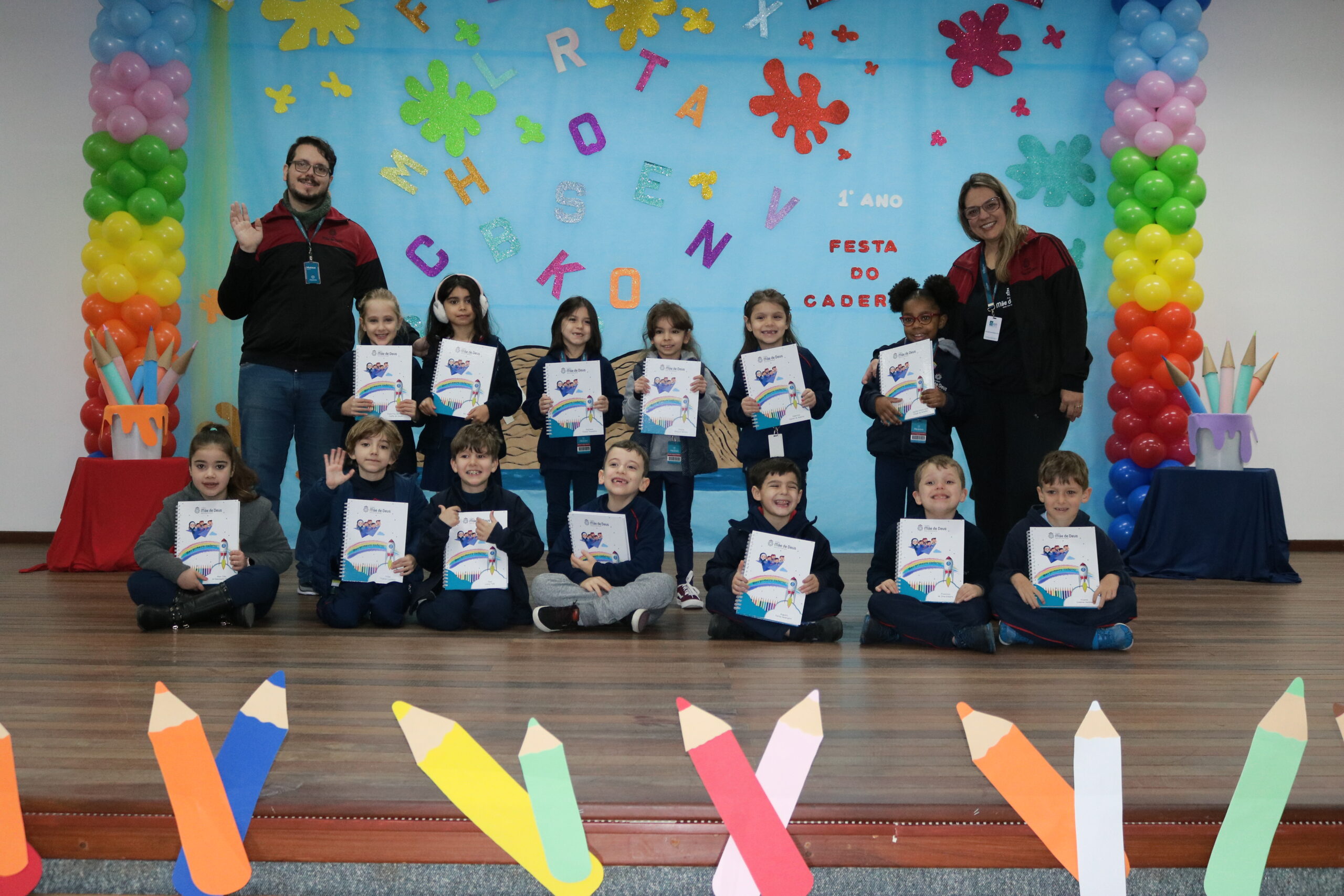 No dia 17 de junho, os alunos do 1º Ano do Ensino Fundamental e seus familiares, participaram de um momento muito importante no ciclo estudantil, onde as crianças receberam o seu primeiro caderno com linhas!