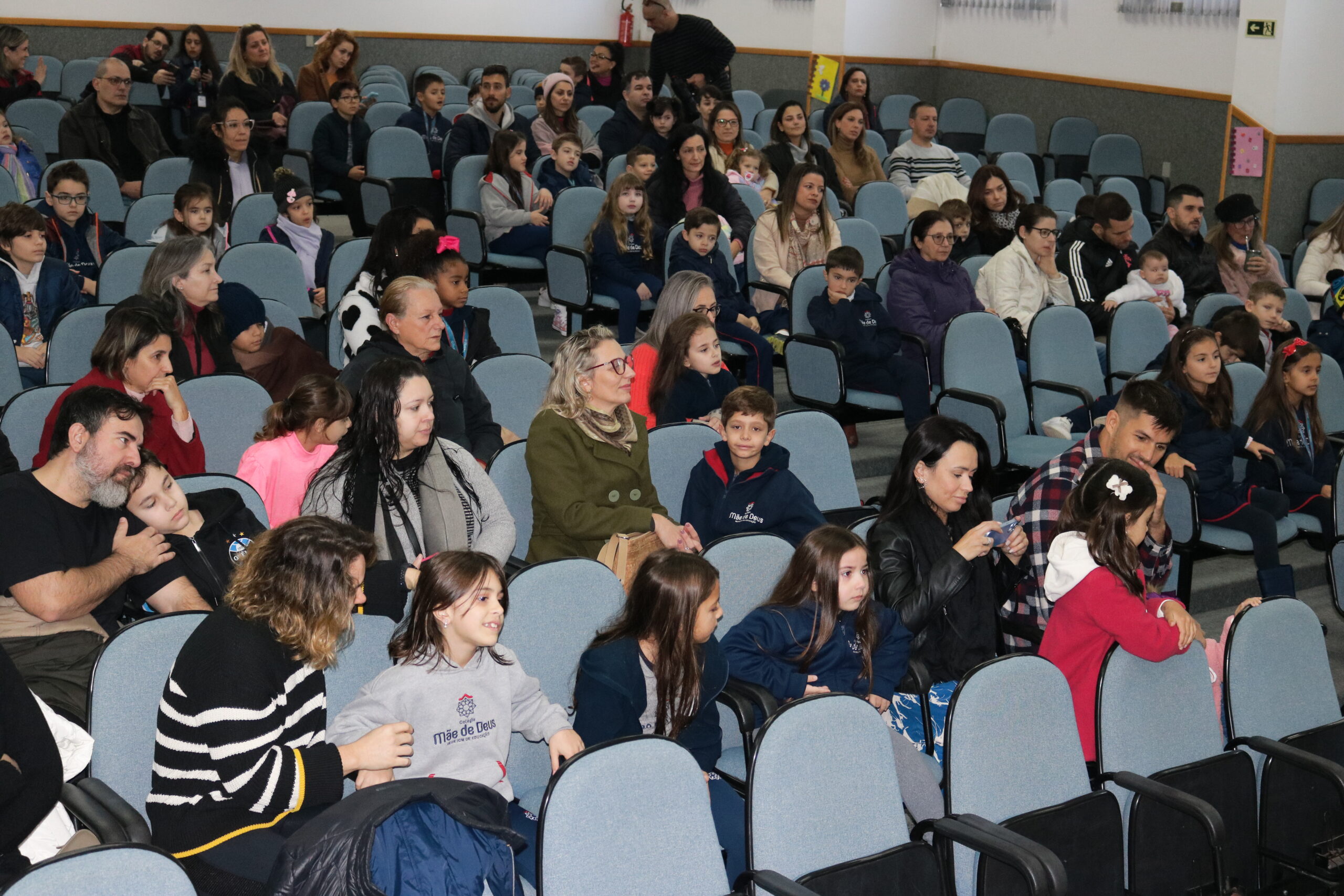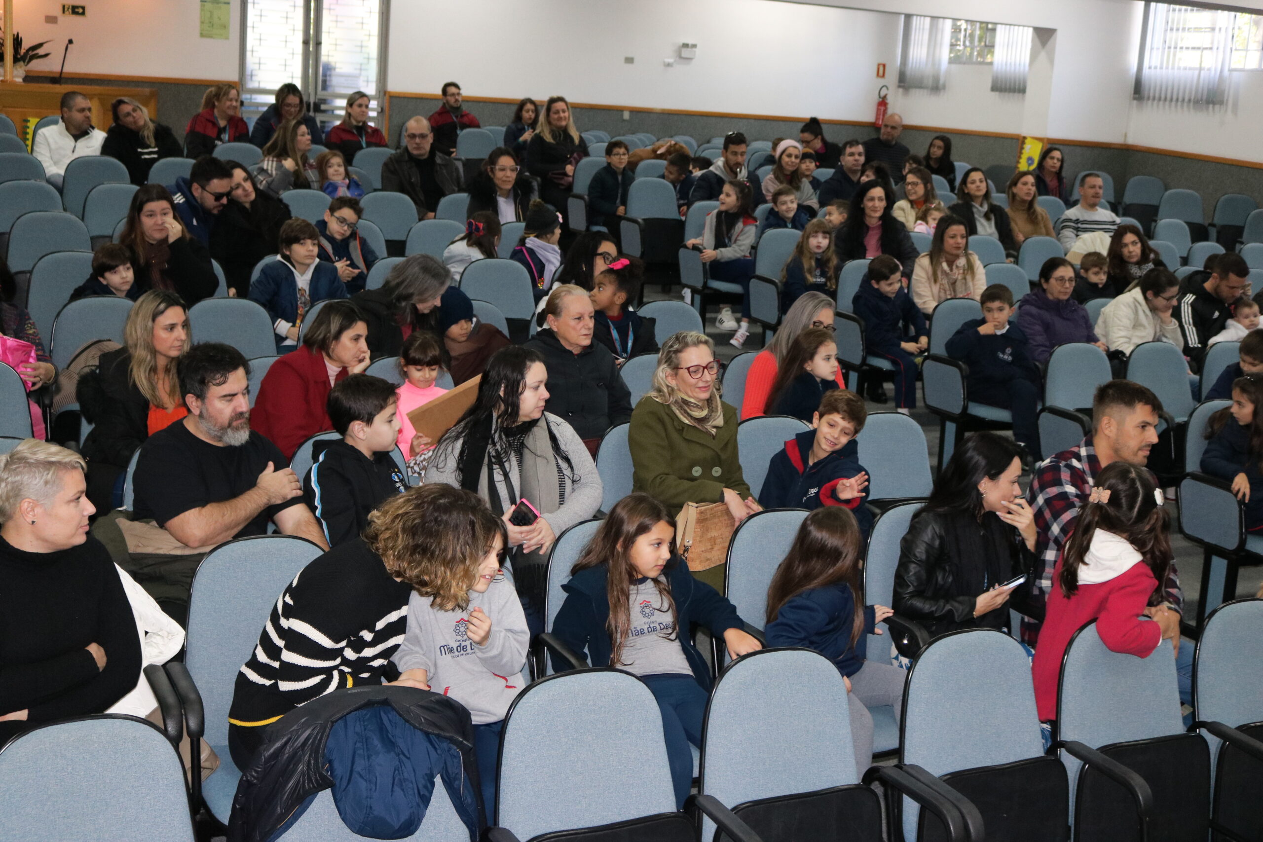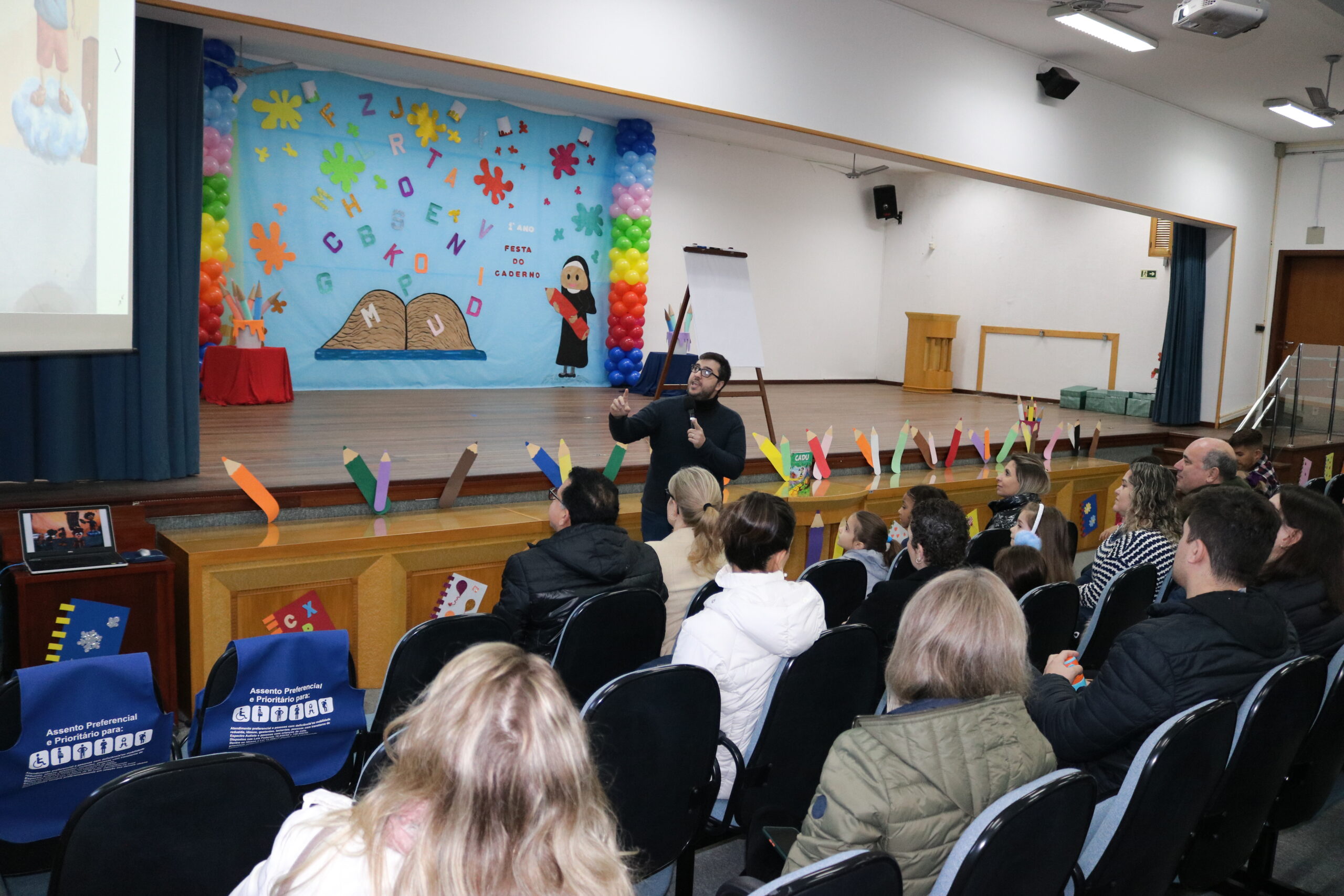 O cenário montado em nosso auditório estava lindo, preparado com carinho e dedicação, buscando tornar esse momento em uma lembrança muito especial para os alunos e seus familiares.