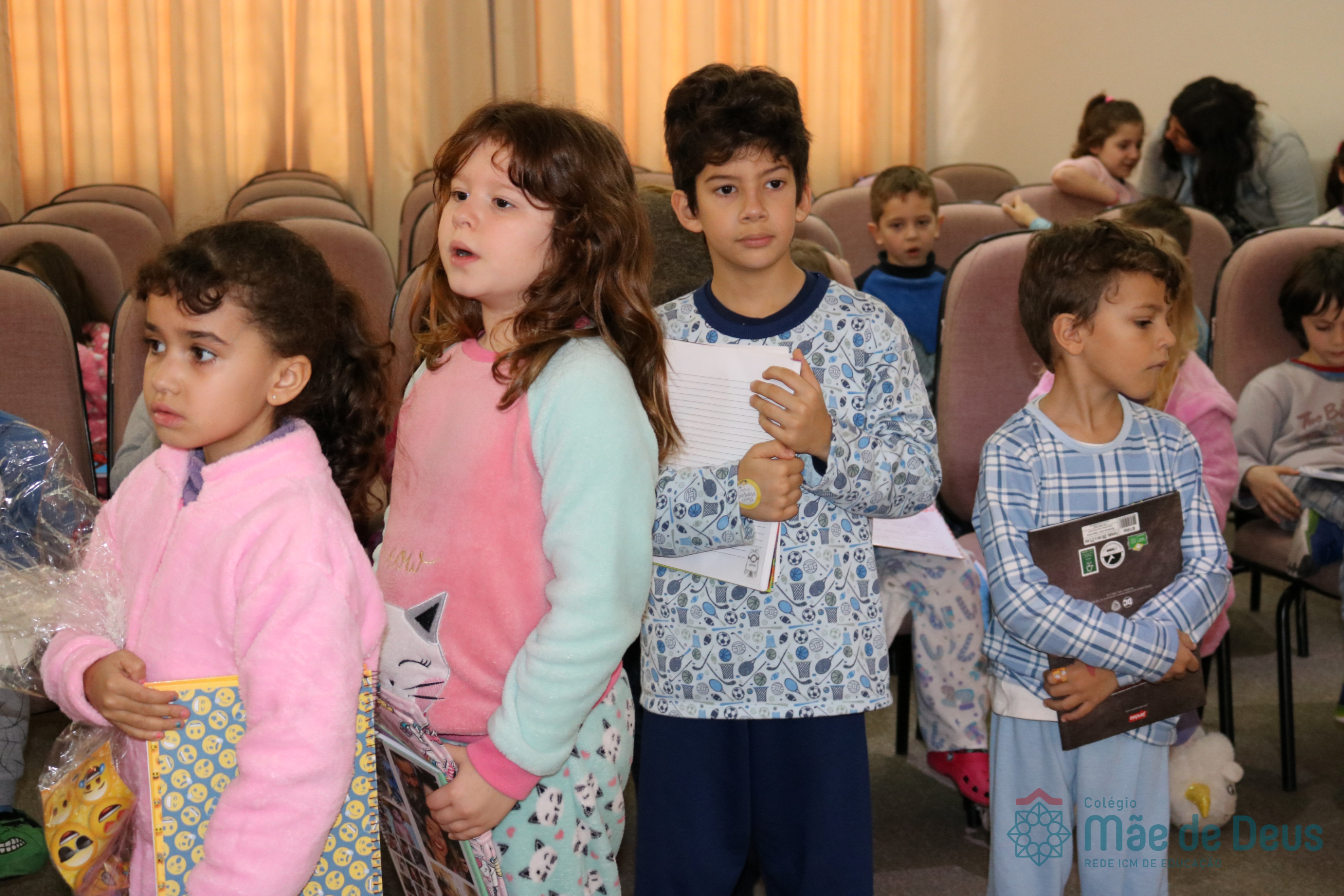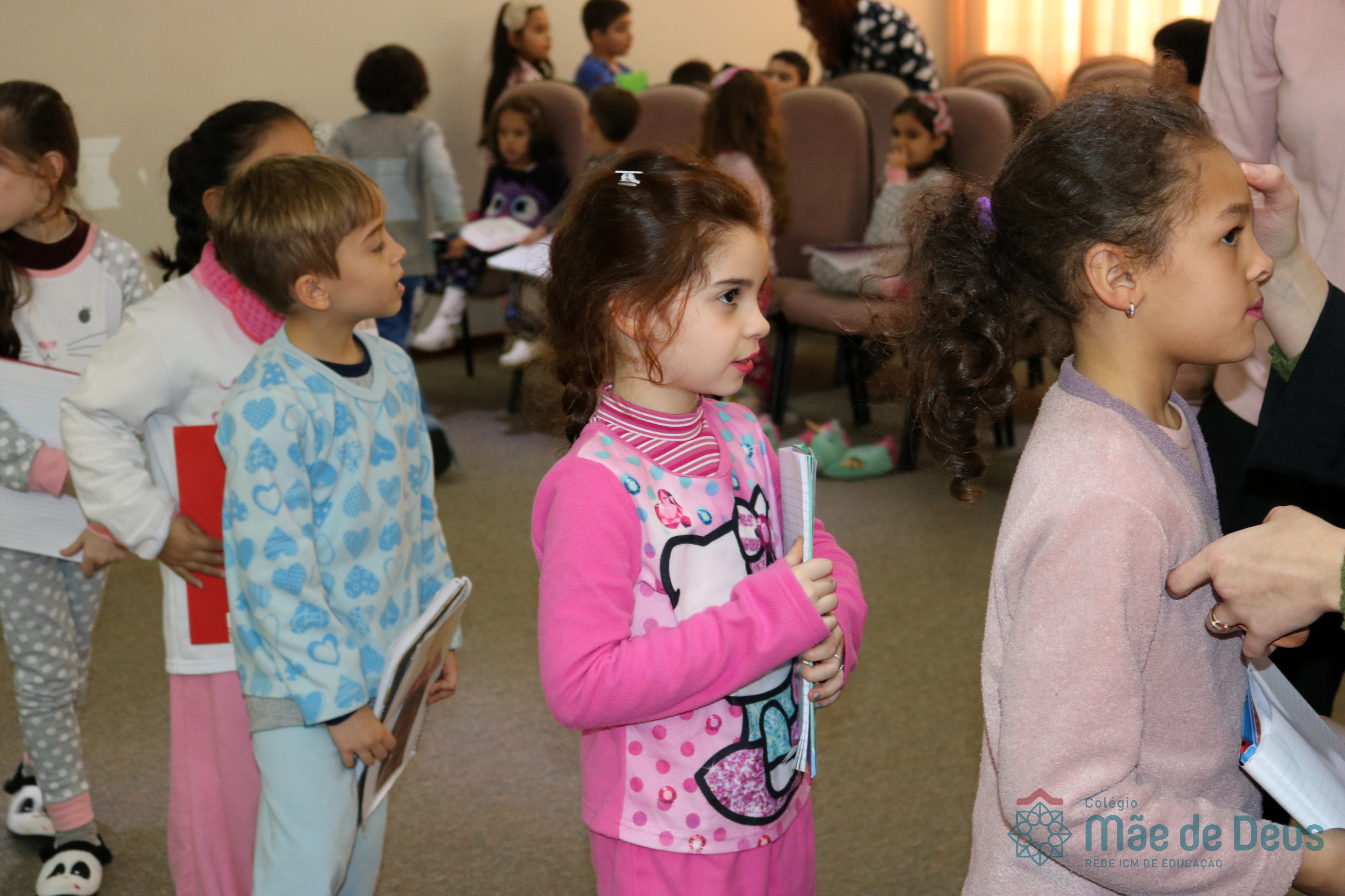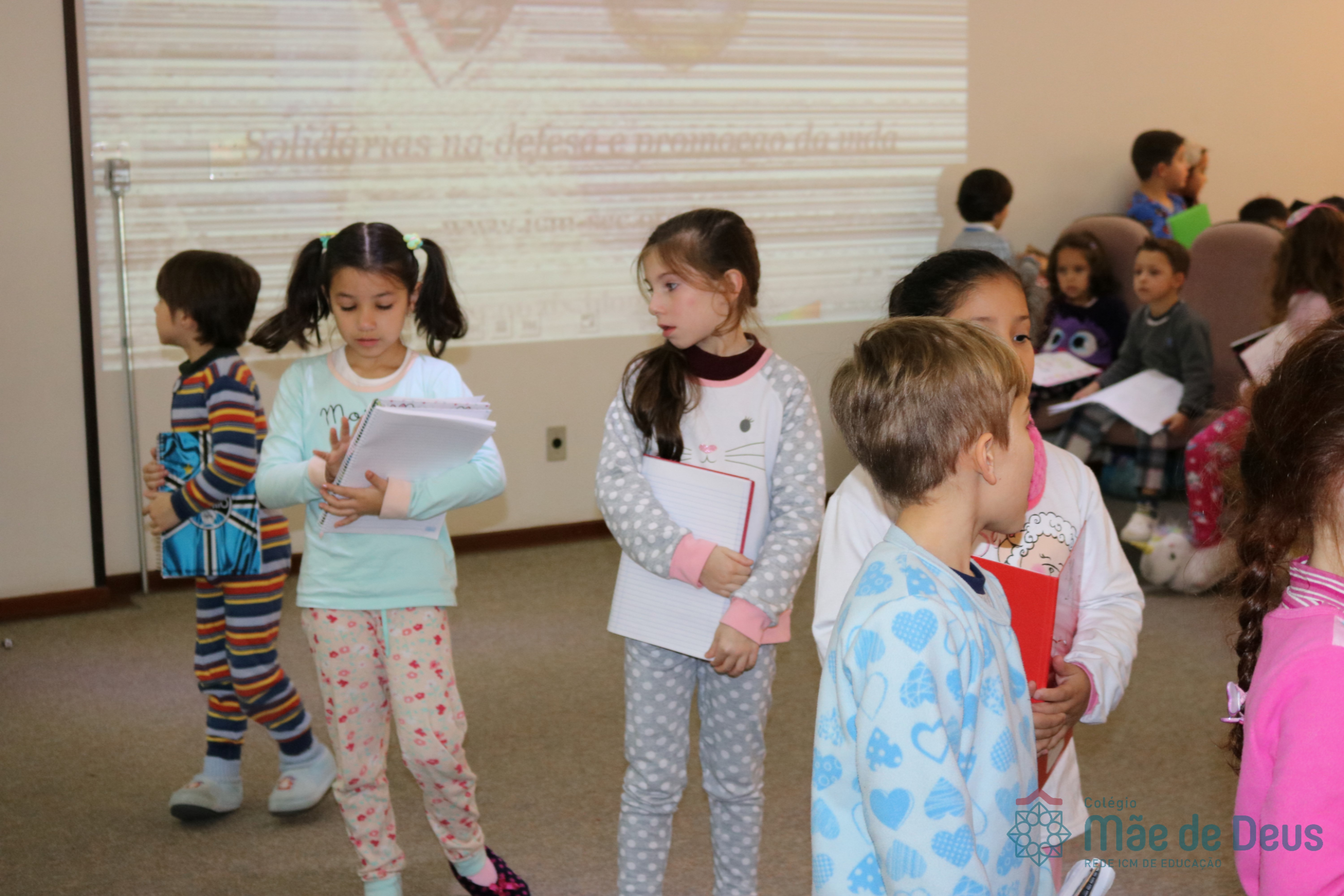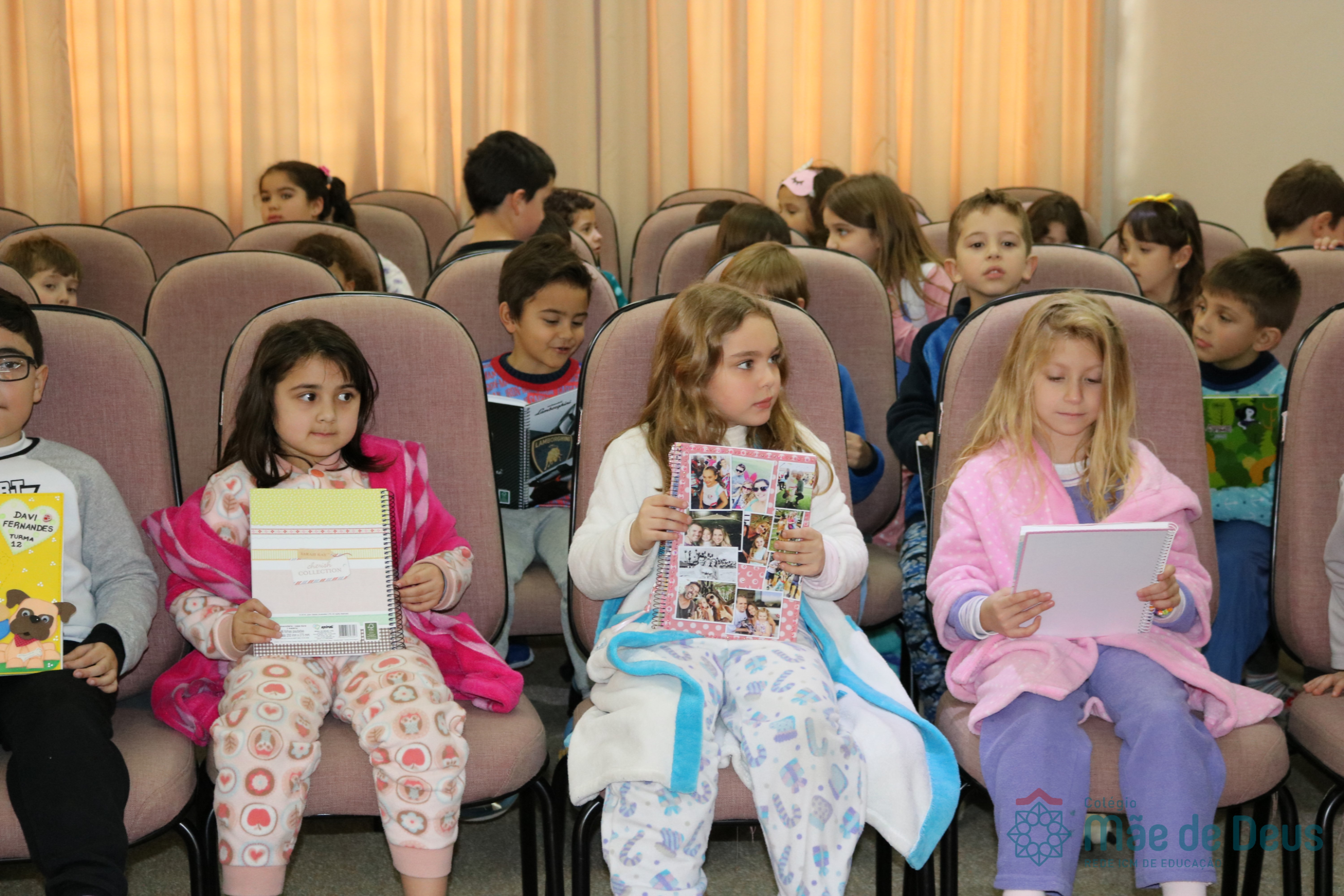 Para encerrar o 1º semestre letivo, as turmas do 1º ano do Ensino Fundamental organizaram uma linda festa do pijama e do caderno.