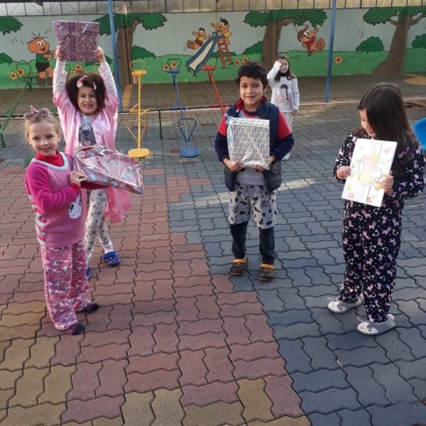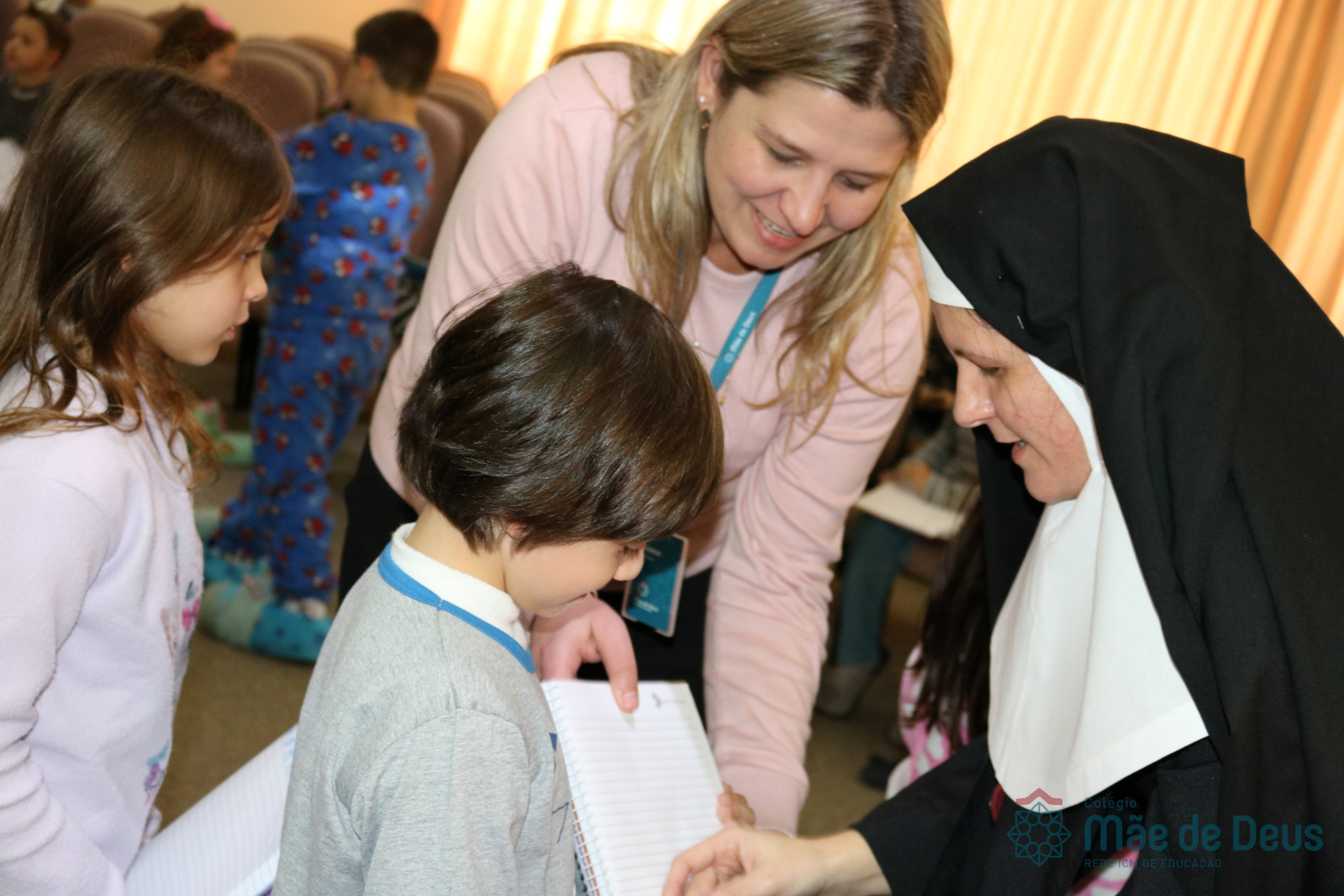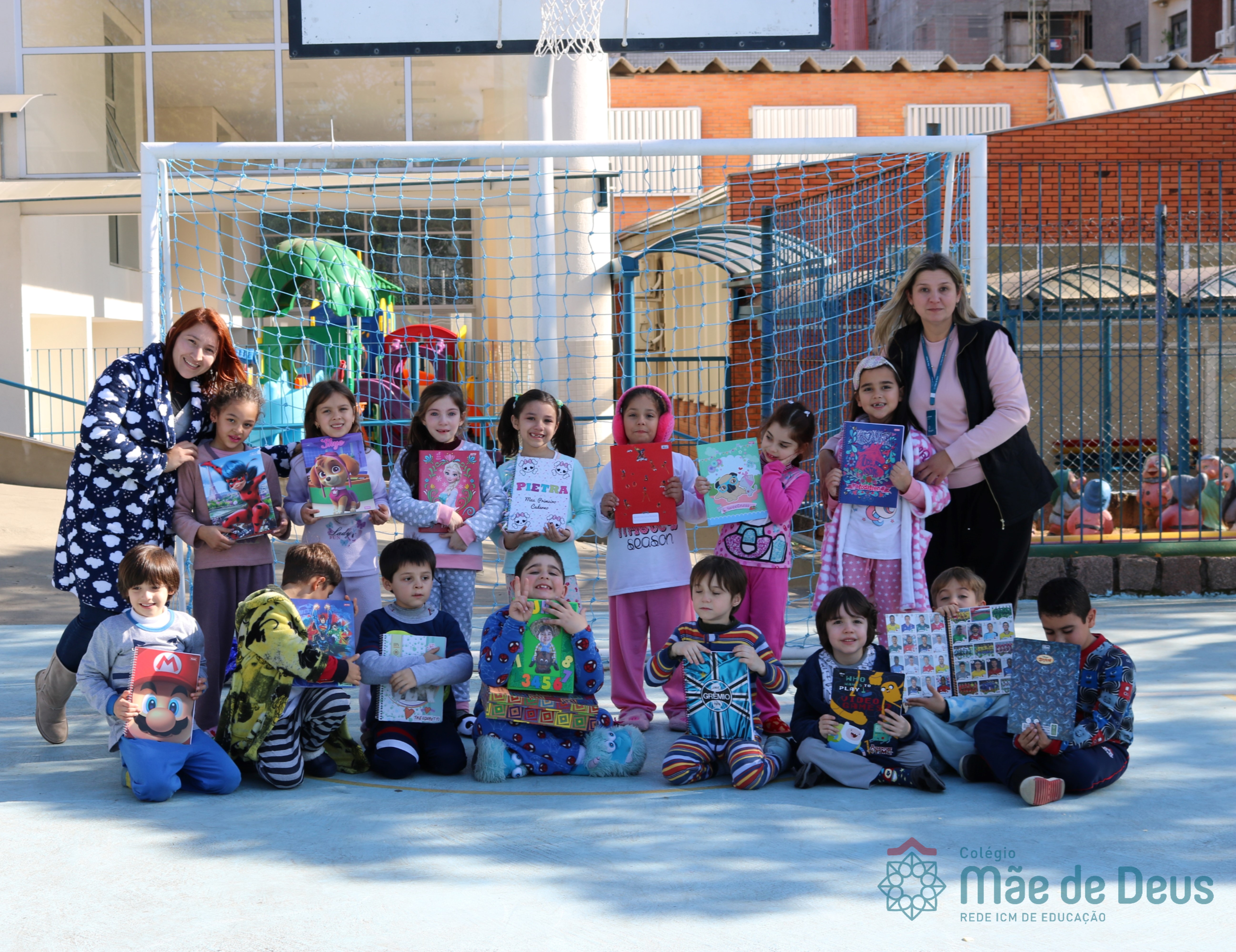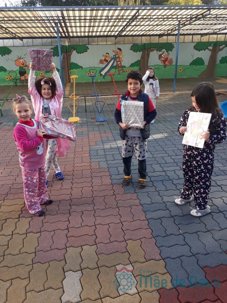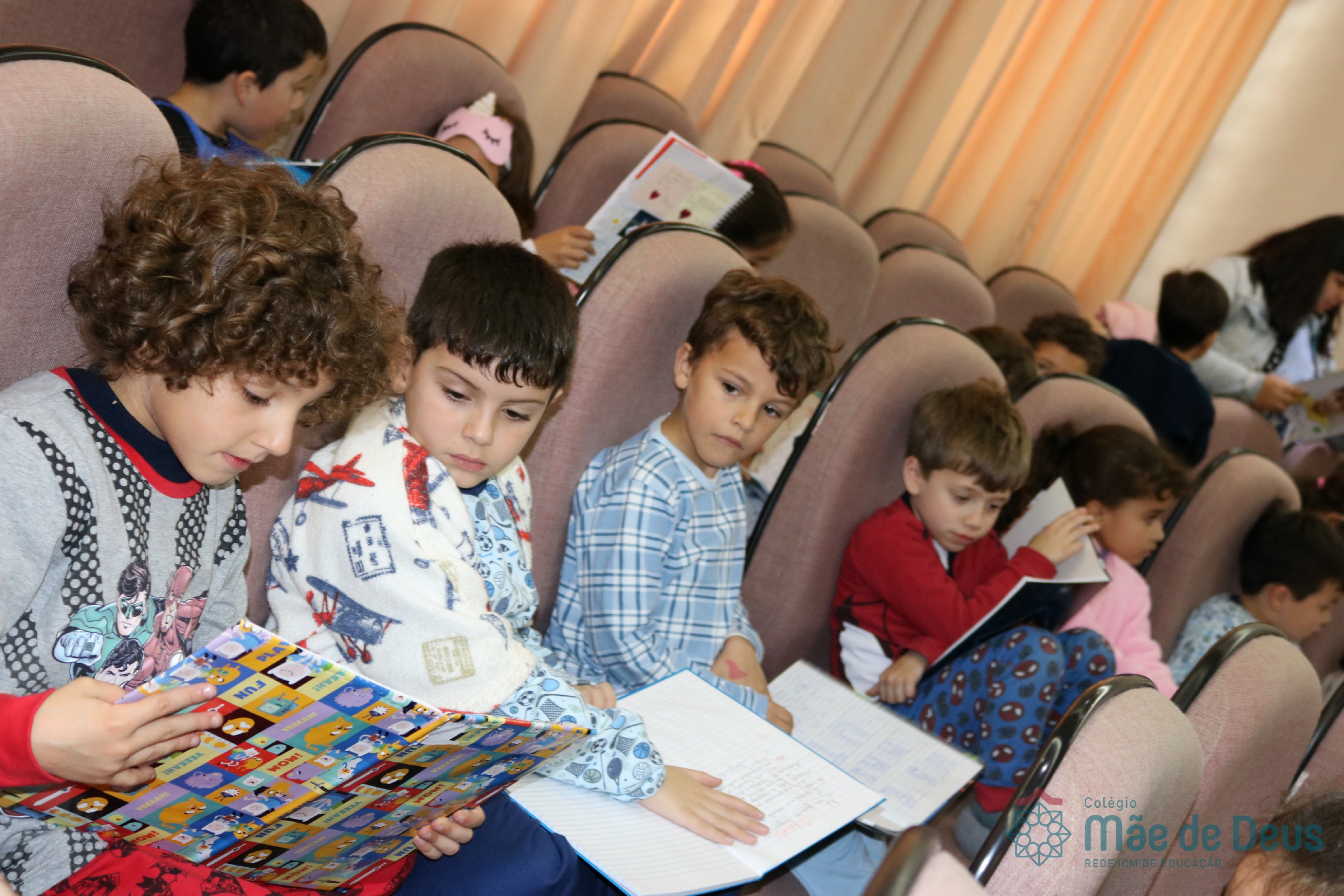 Para encerrar o 1º semestre letivo, as turmas do 1º ano do Ensino Fundamental organizaram uma linda festa do pijama e do caderno.