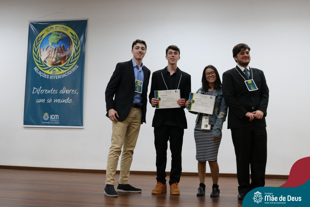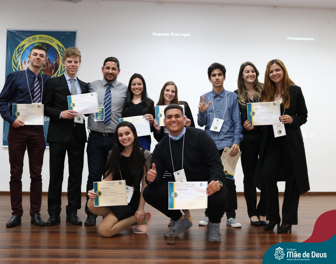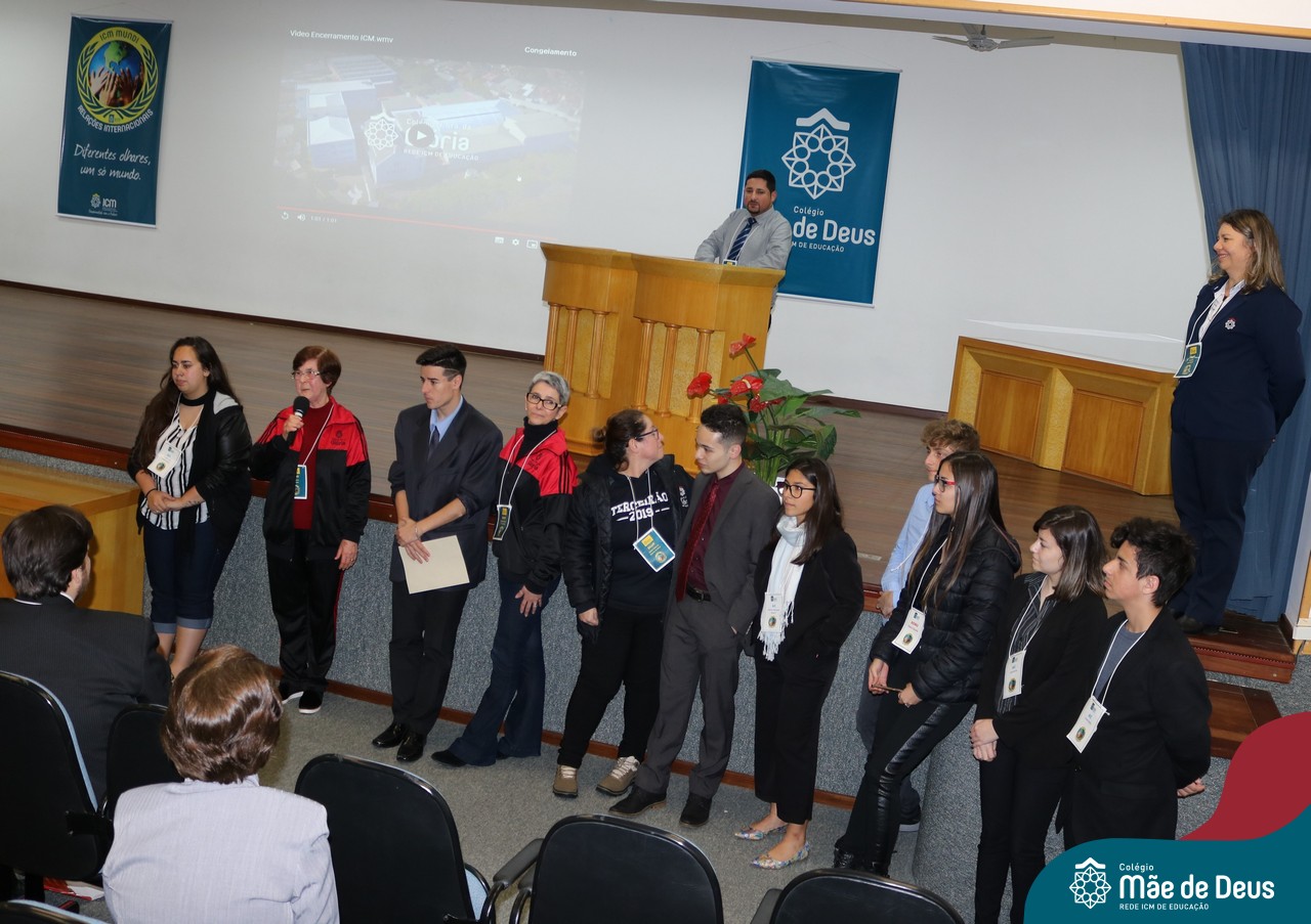 Foi maravilhoso ver no palco do encerramento do evento o brilho no olhar, as manifestações e as expressões de carinho e de gratidão à Direção da Rede ICM de Educação, às Diretoras dos Colégios: Dom Feliciano, Mãe de Deus, Nossa Senhora da Glória e Stella Maris, aos Professores envolvidos no Projeto, aos Diretores de Mesa dos Comitês, aos colegas “ Delegados” e à organização por terem proporcionado tamanha experiência de vida, de aprendizagens e a possibilidade de novas conexões de amizades, com a realização deste evento.