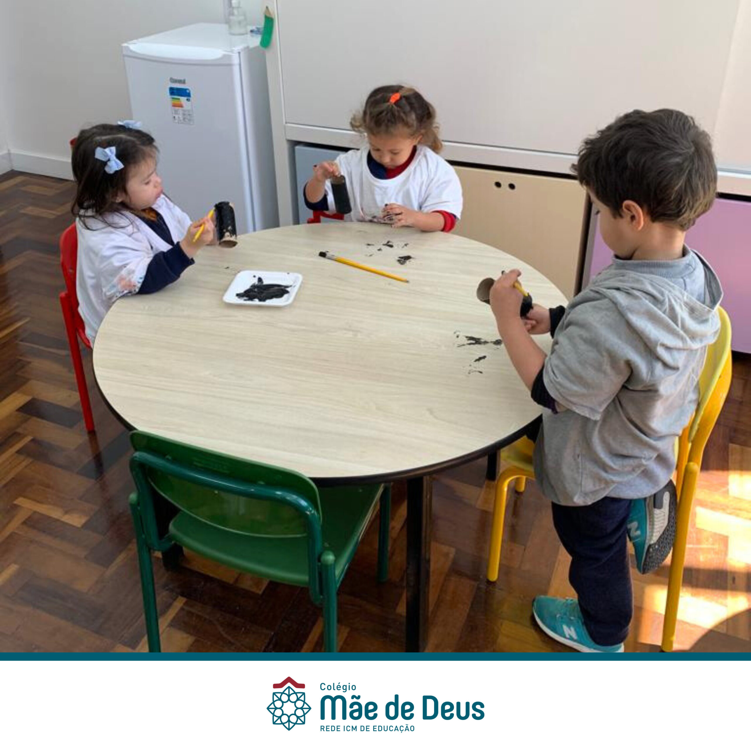 Durante a semana do Folclore Brasileiro, os alunos do Maternal confeccionaram o Saci-pererê e pintaram o cabelo do Curupira, dois famosos personagens da cultura.