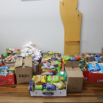 Foram recolhidas mais de 30 caixas de feijão, arroz, leite, massa e açúcar, que estão sendo entregues pelos alunos à pessoas e instituições necessitadas.
