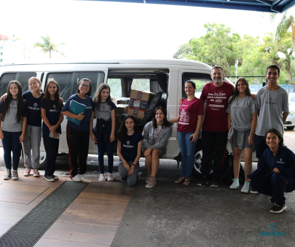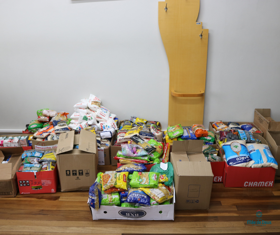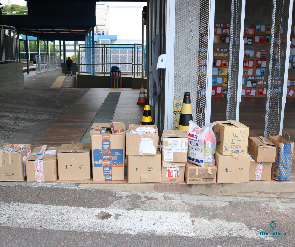 Foram recolhidas mais de 30 caixas de feijão, arroz, leite, massa e açúcar, que estão sendo entregues pelos alunos à pessoas e instituições necessitadas.