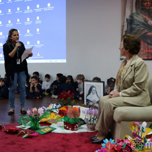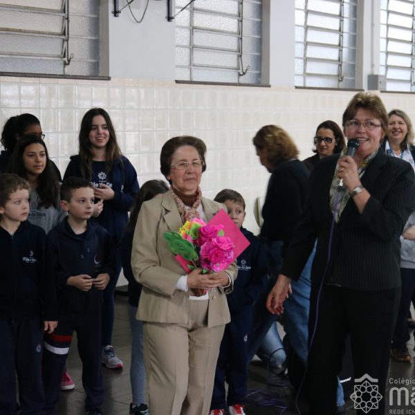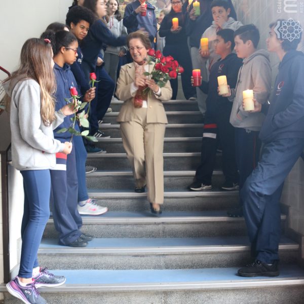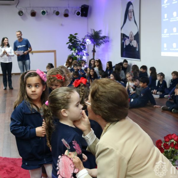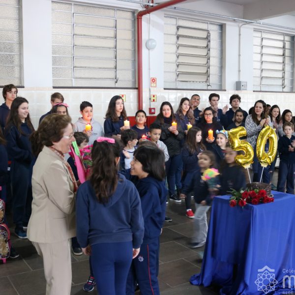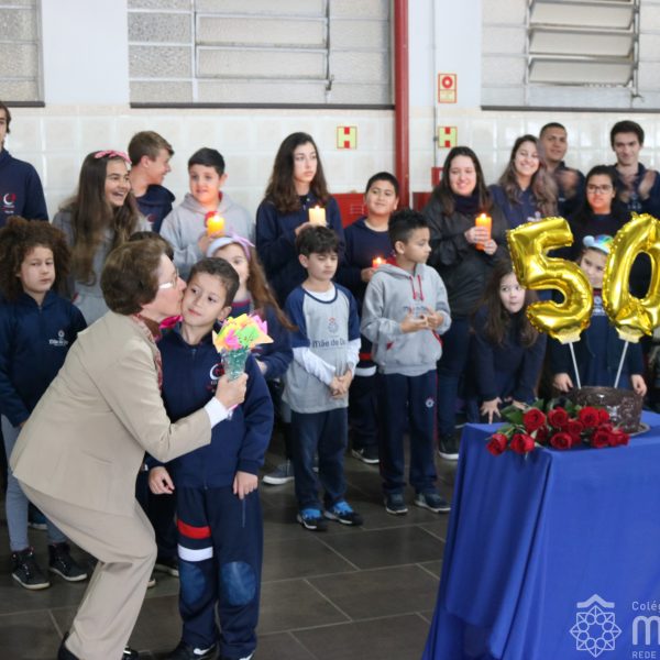 Neste ano de 2018 nossa querida Irmã Laura Pizzatto está completando 50 anos de Vida Religiosa, junto à Congregação das Irmãs do Imaculado Coração de Maria. Como gesto de louvor, gratidão e carinho, os educadores e os estudantes realizaram uma bonita homenagem, manifestando a alegria pela presença da irmã junto à comunidade escolar.