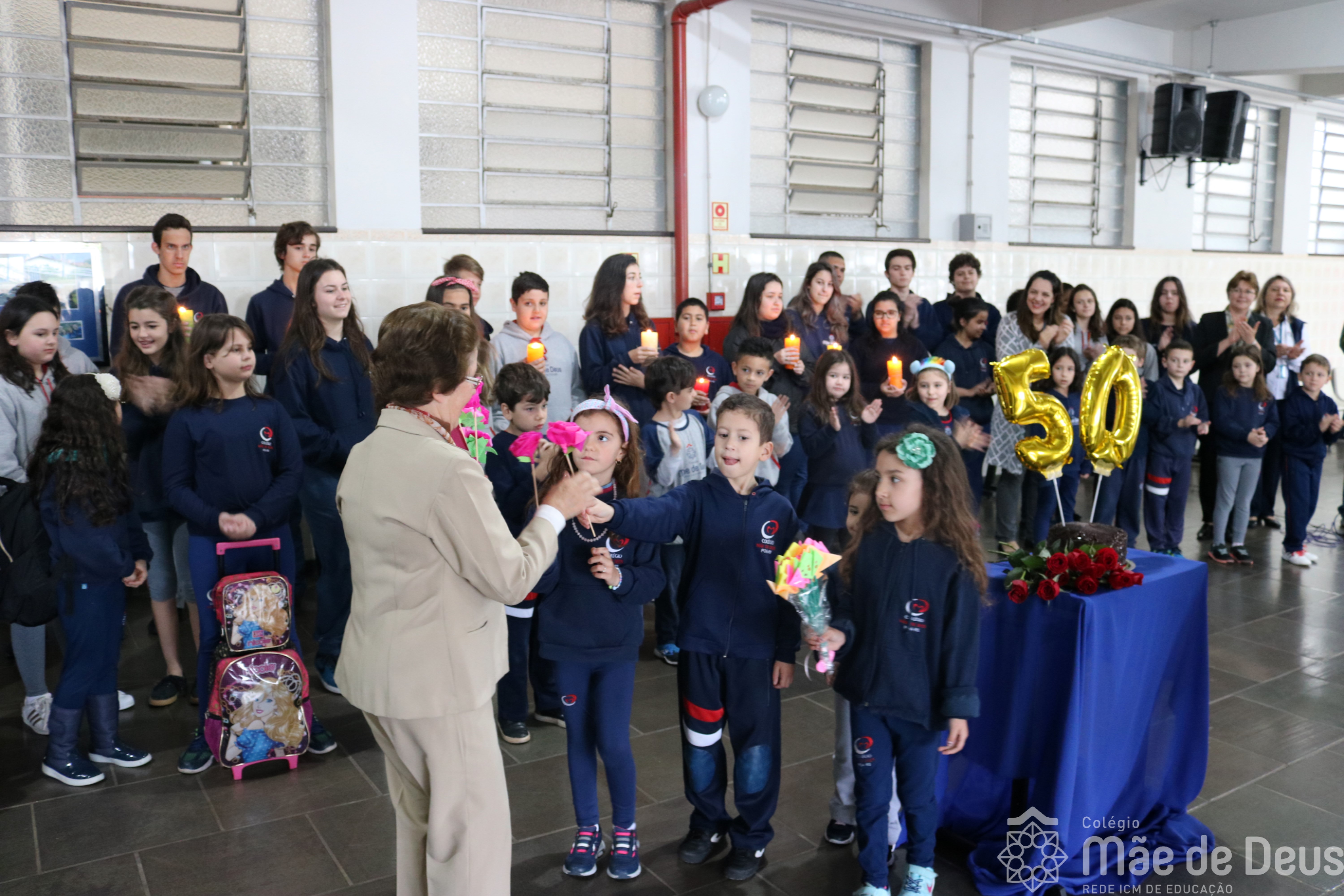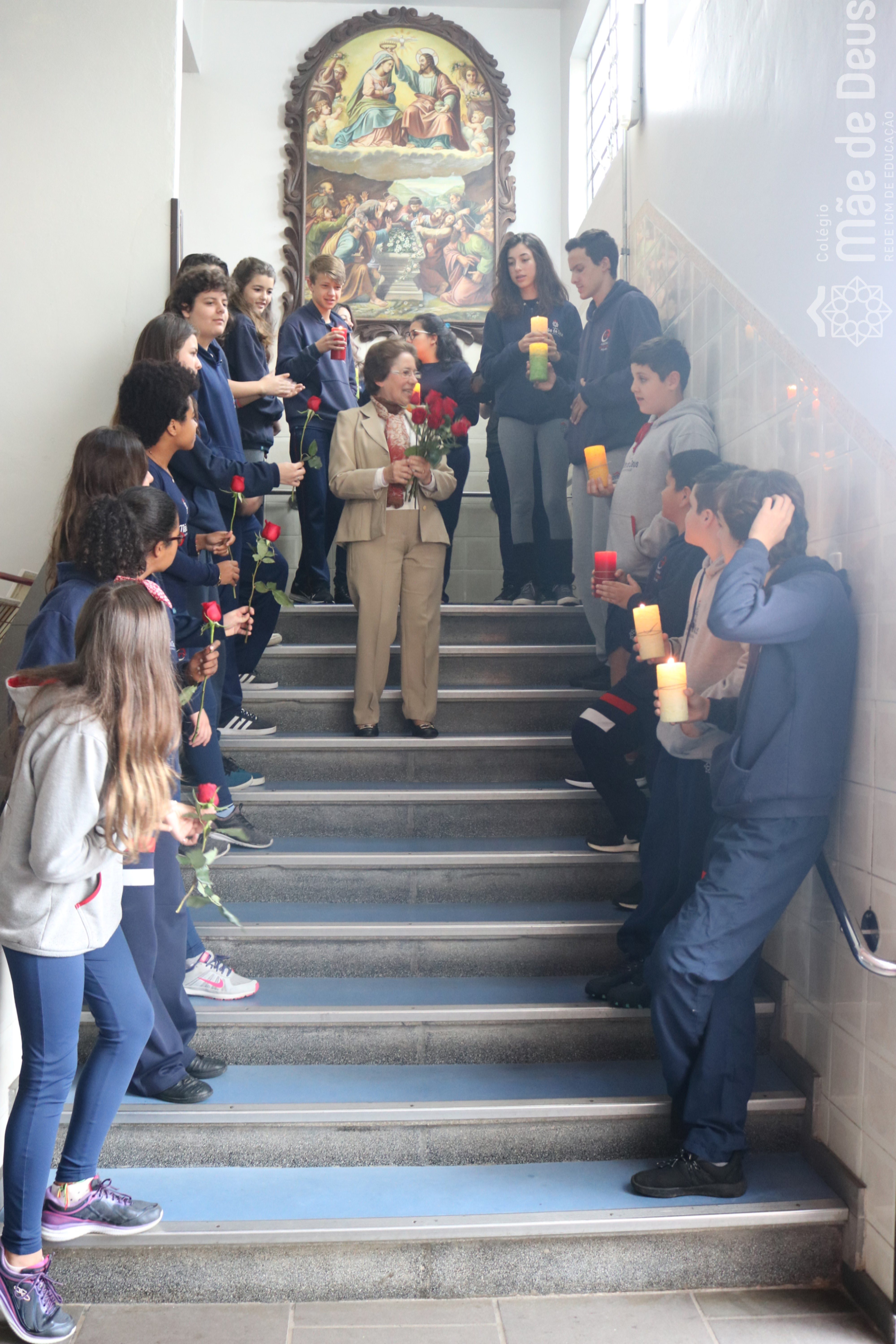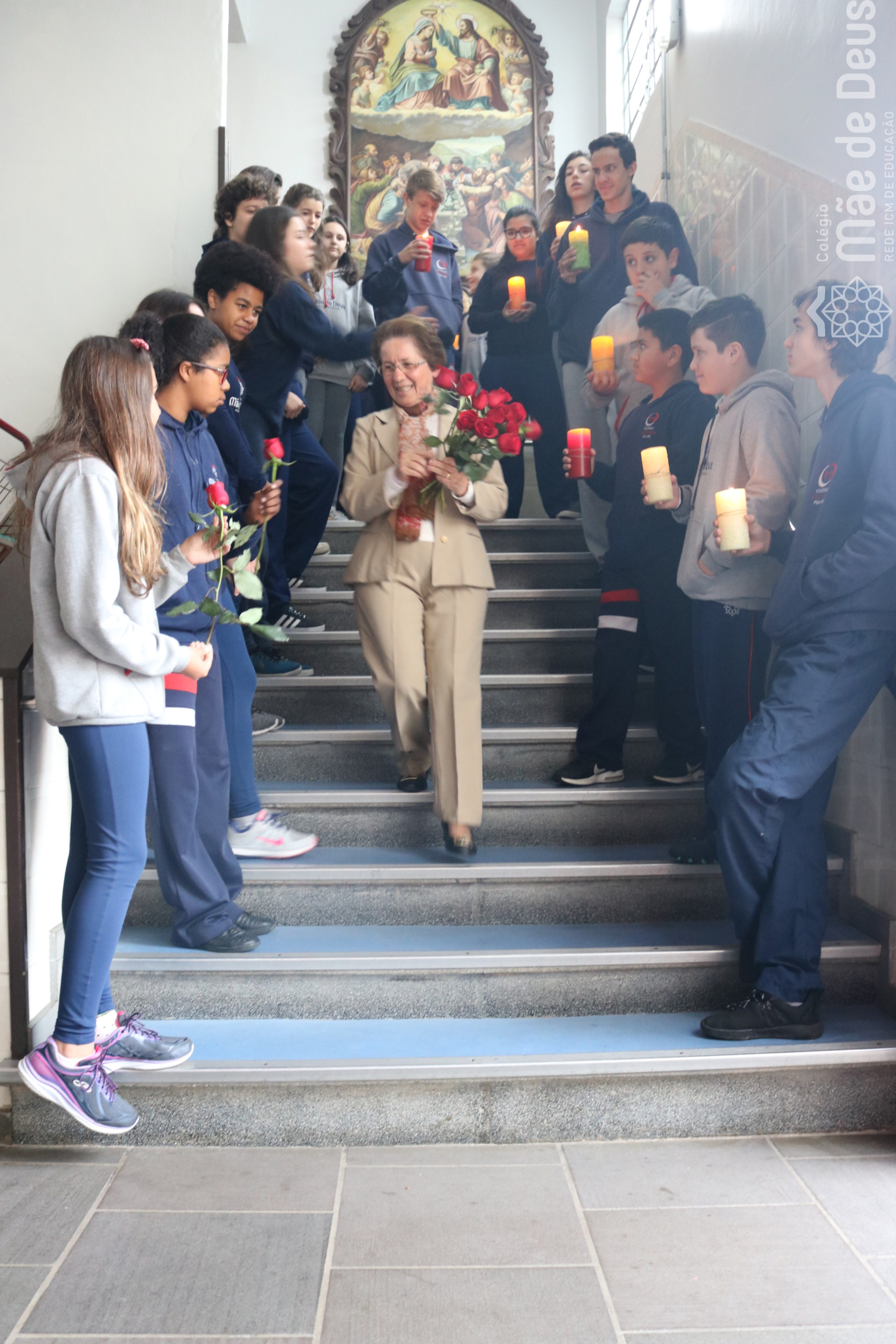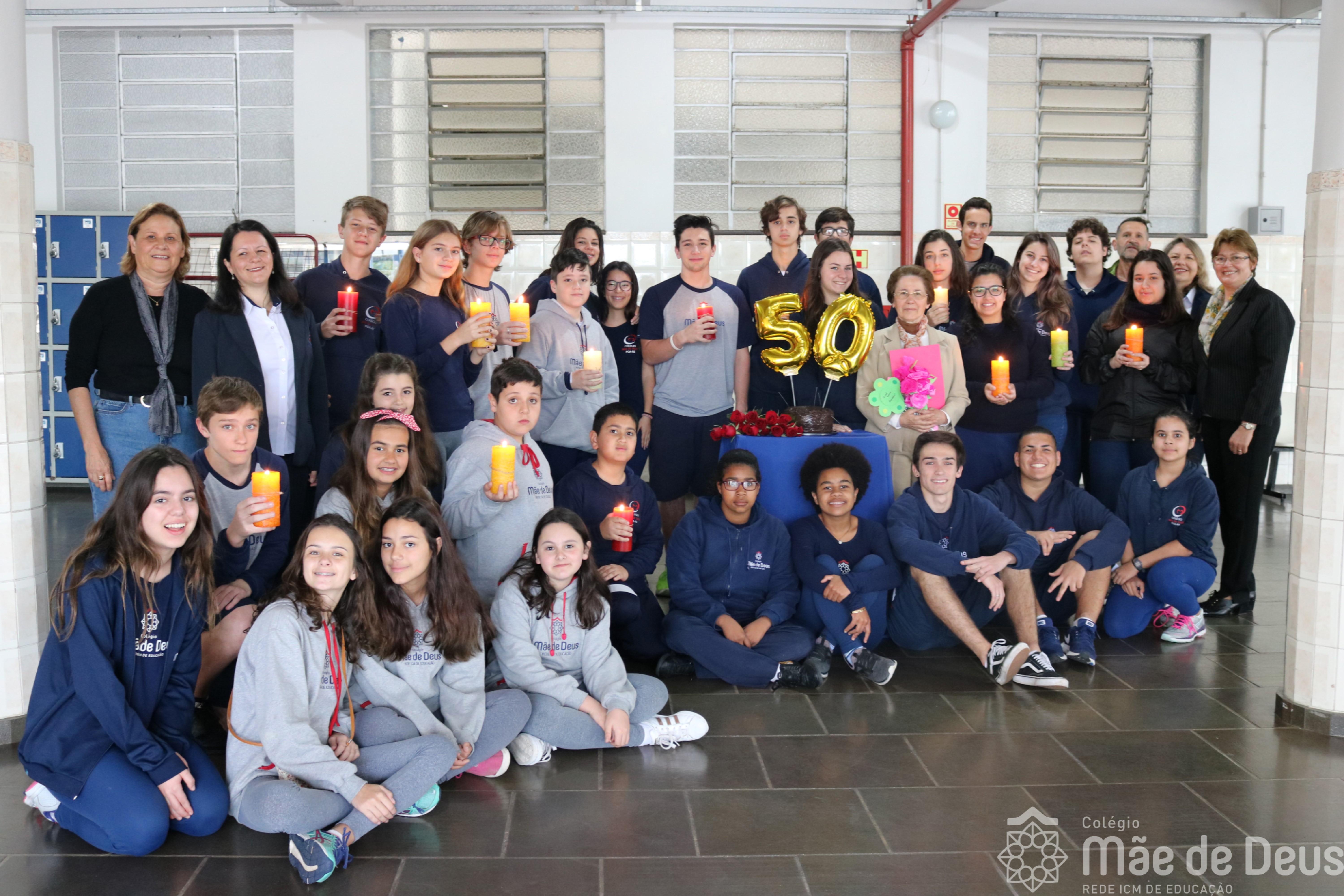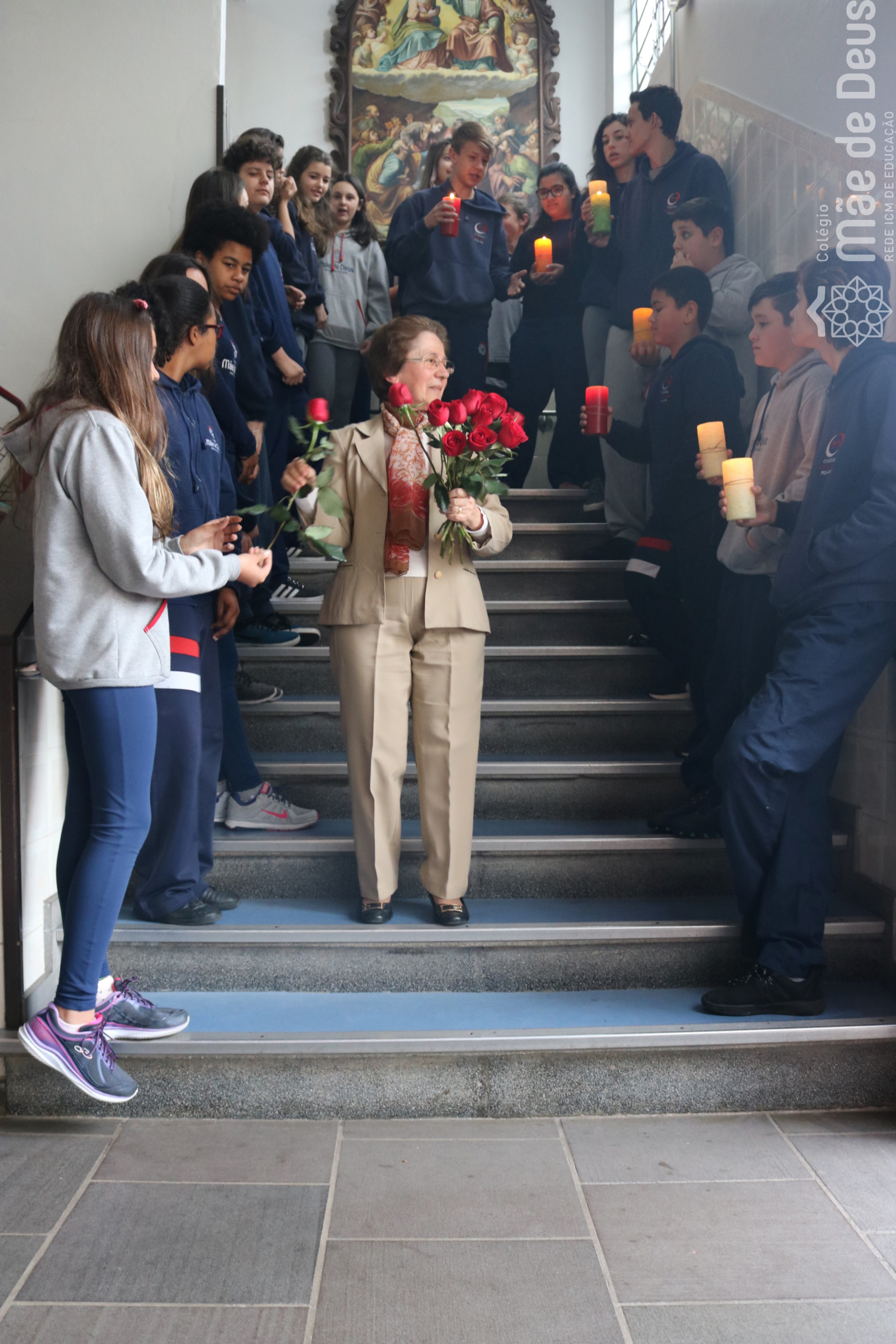 Neste ano de 2018 nossa querida Irmã Laura Pizzatto está completando 50 anos de Vida Religiosa, junto à Congregação das Irmãs do Imaculado Coração de Maria. Como gesto de louvor, gratidão e carinho, os educadores e os estudantes realizaram uma bonita homenagem, manifestando a alegria pela presença da irmã junto à comunidade escolar.