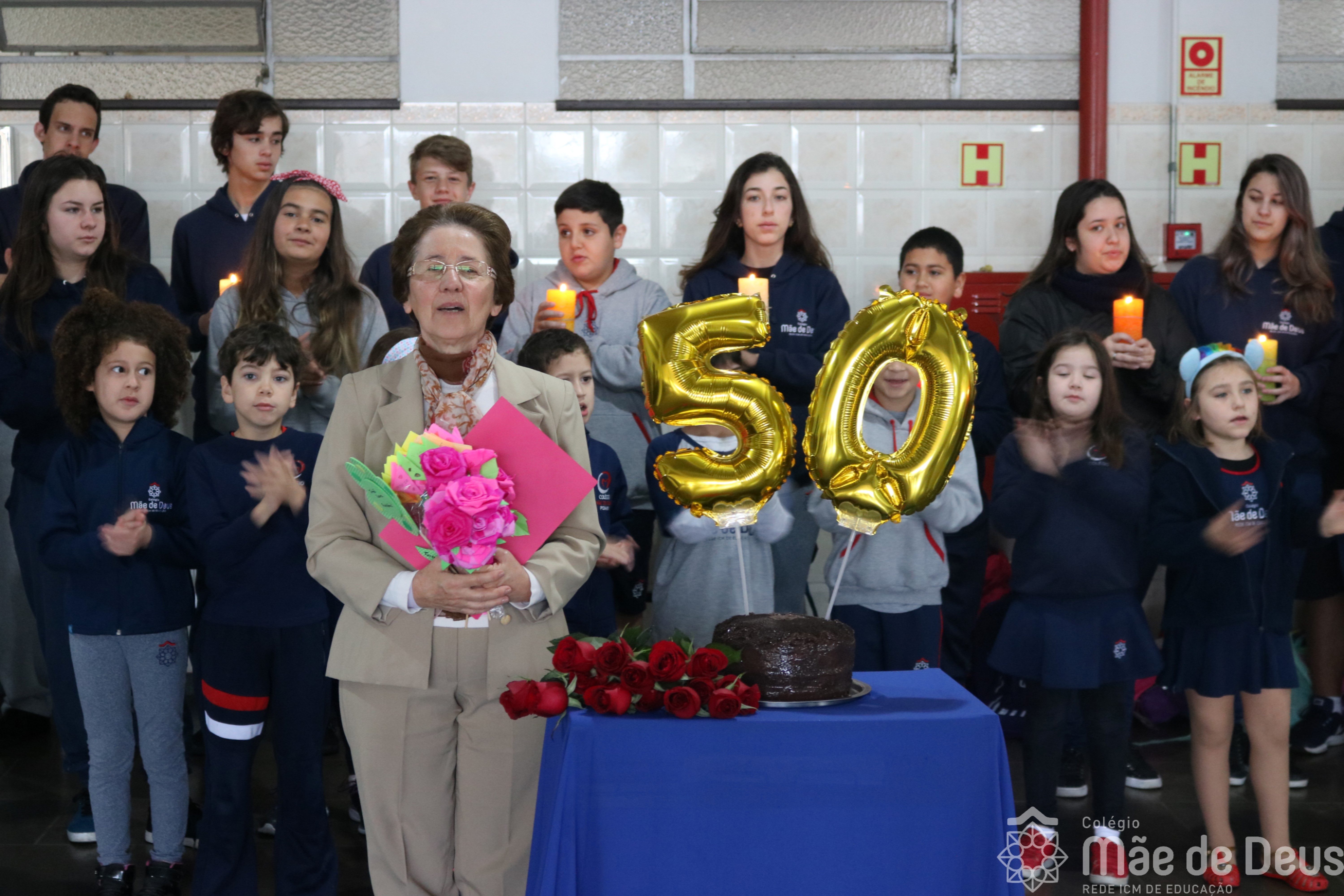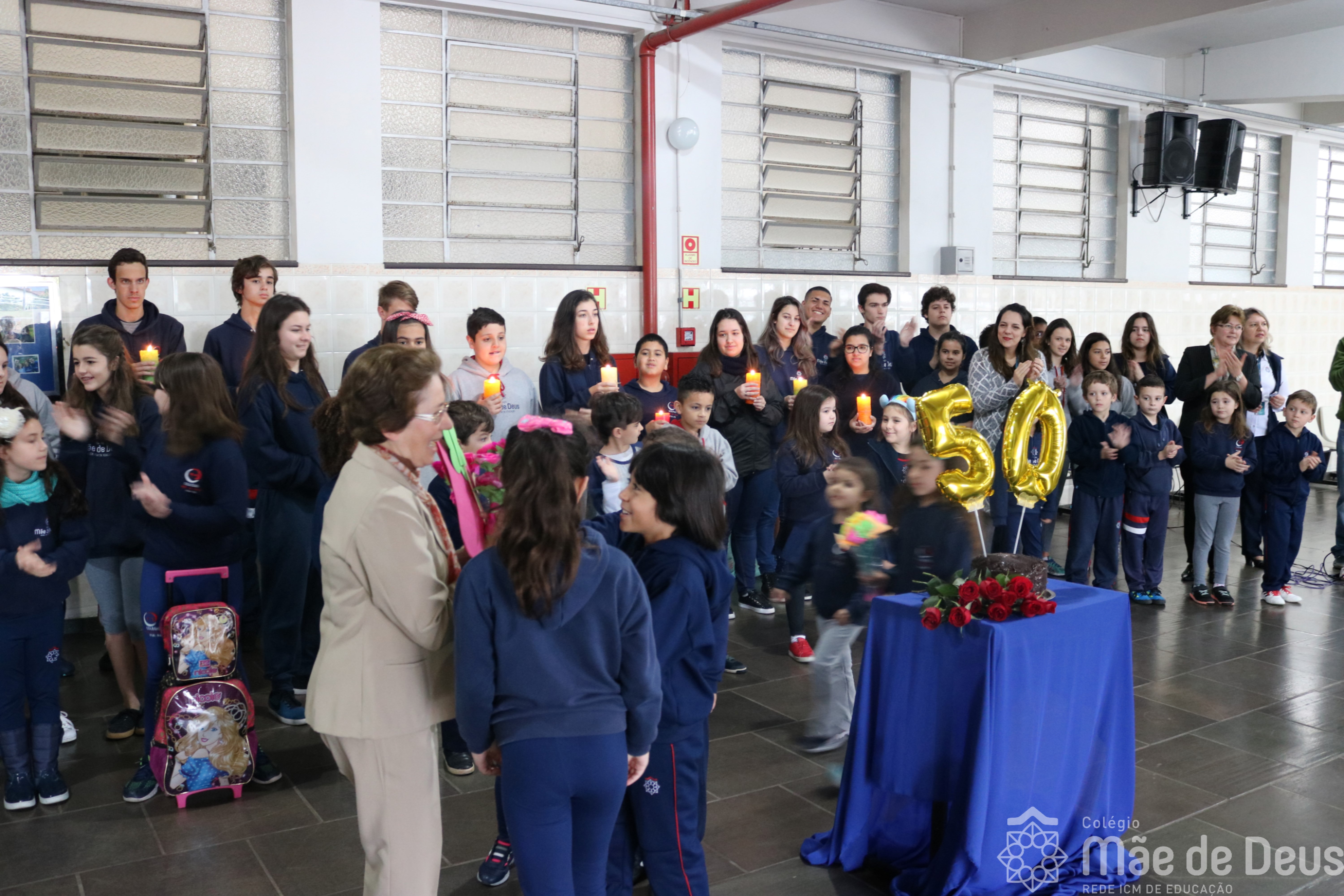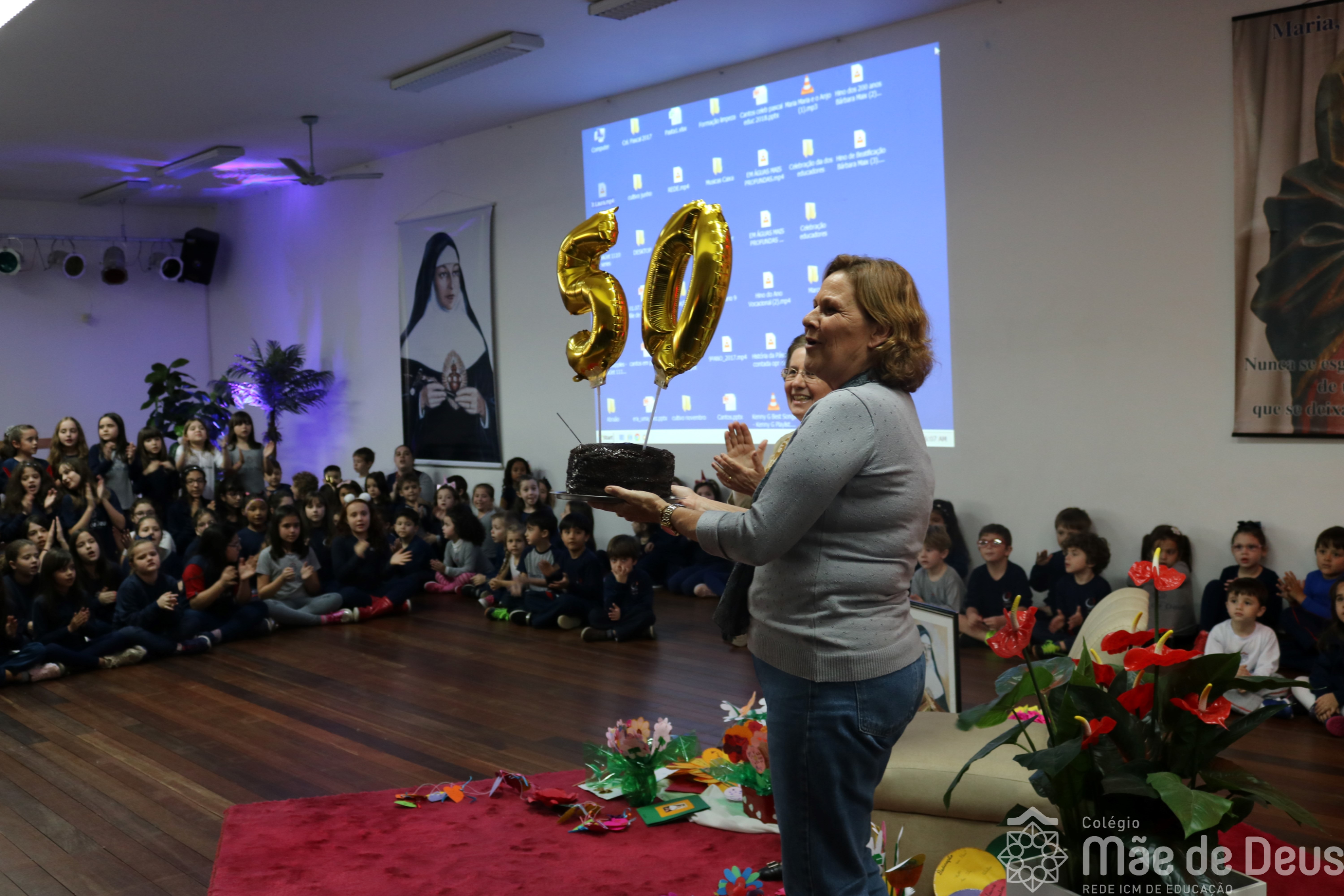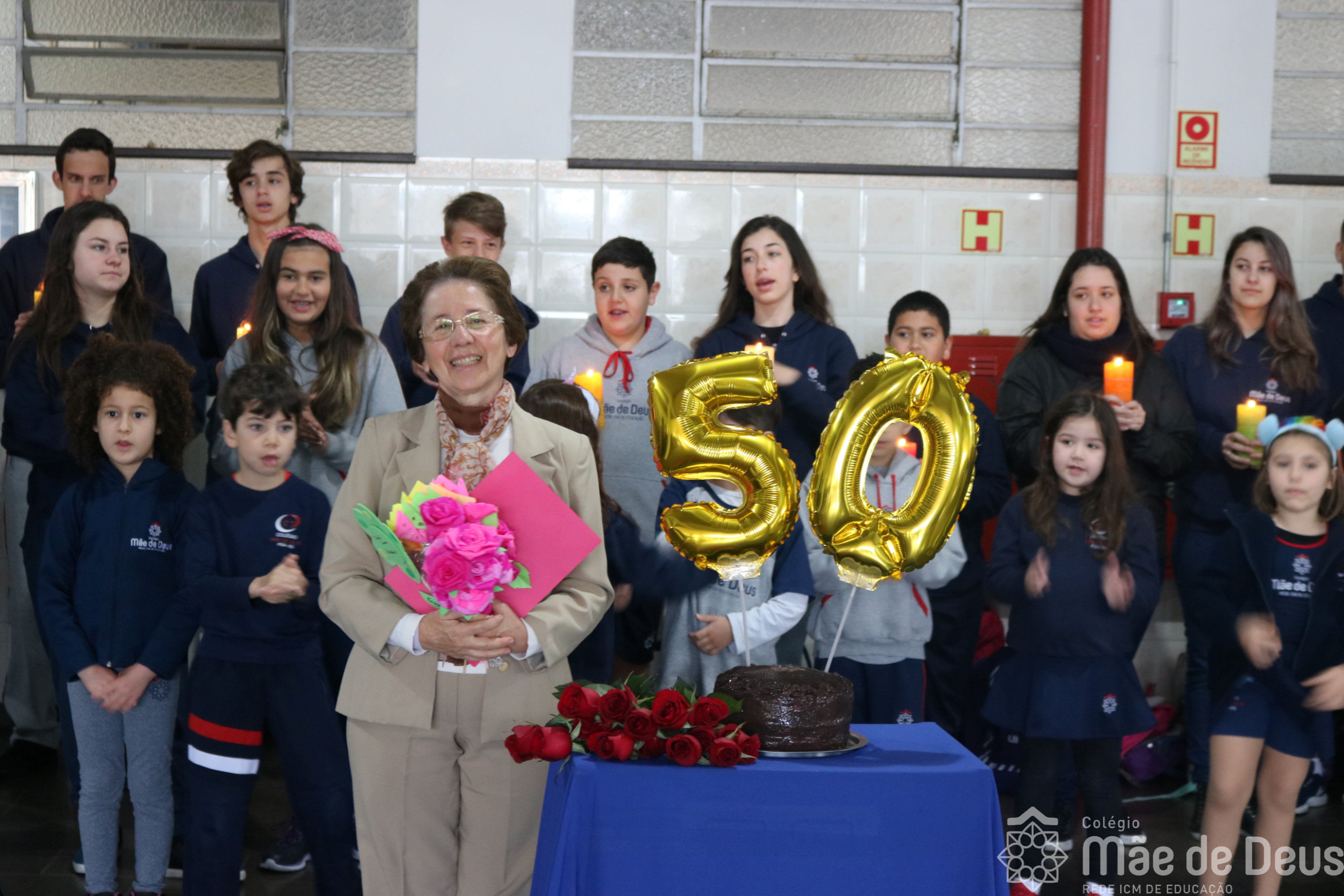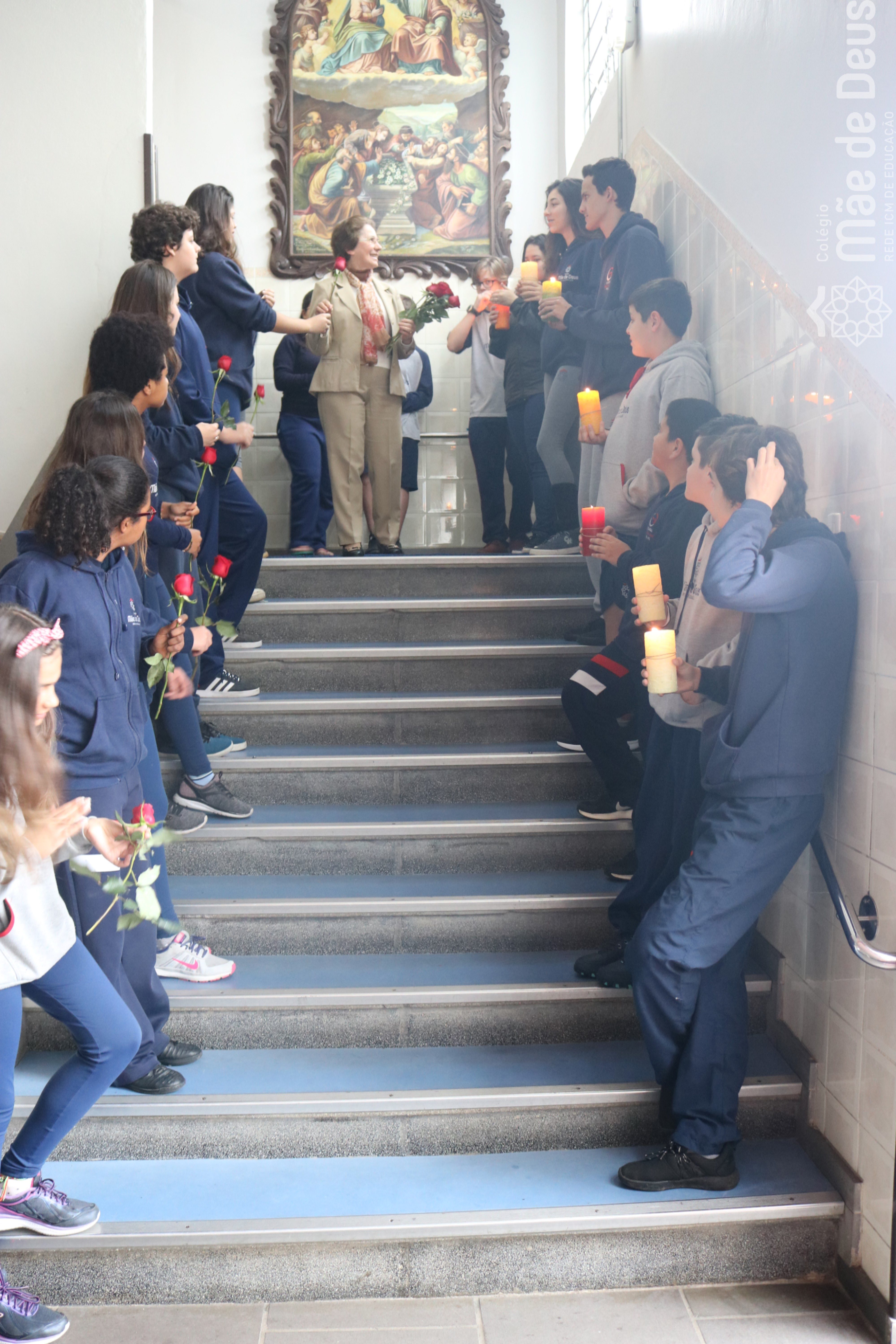 Neste ano de 2018 nossa querida Irmã Laura Pizzatto está completando 50 anos de Vida Religiosa, junto à Congregação das Irmãs do Imaculado Coração de Maria. Como gesto de louvor, gratidão e carinho, os educadores e os estudantes realizaram uma bonita homenagem, manifestando a alegria pela presença da irmã junto à comunidade escolar.