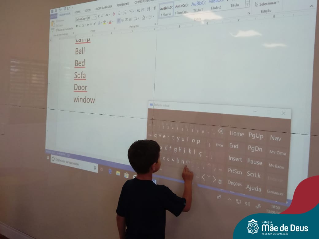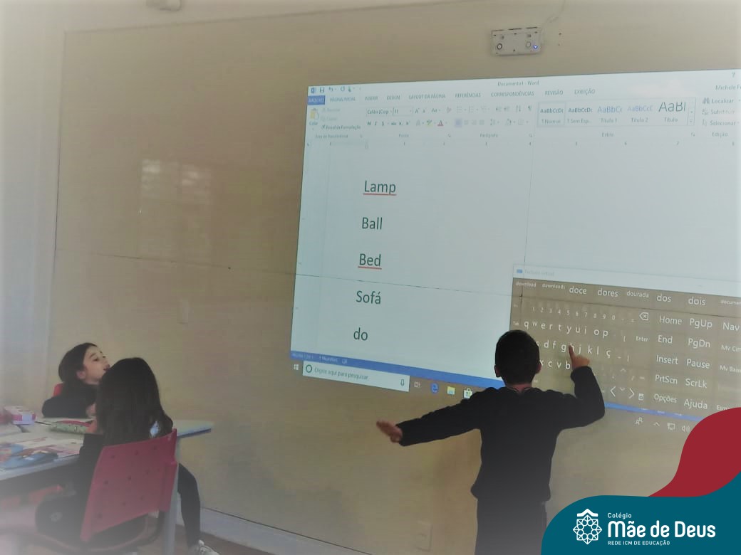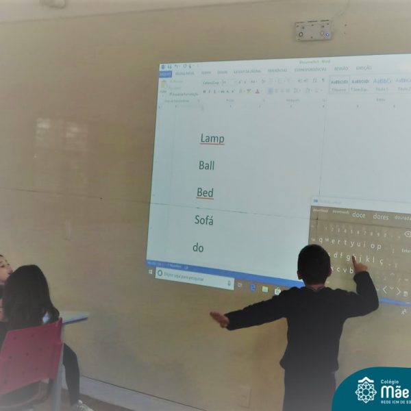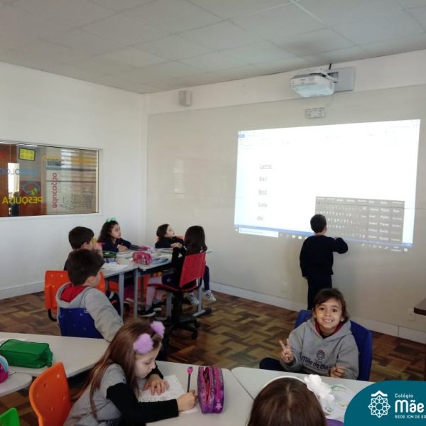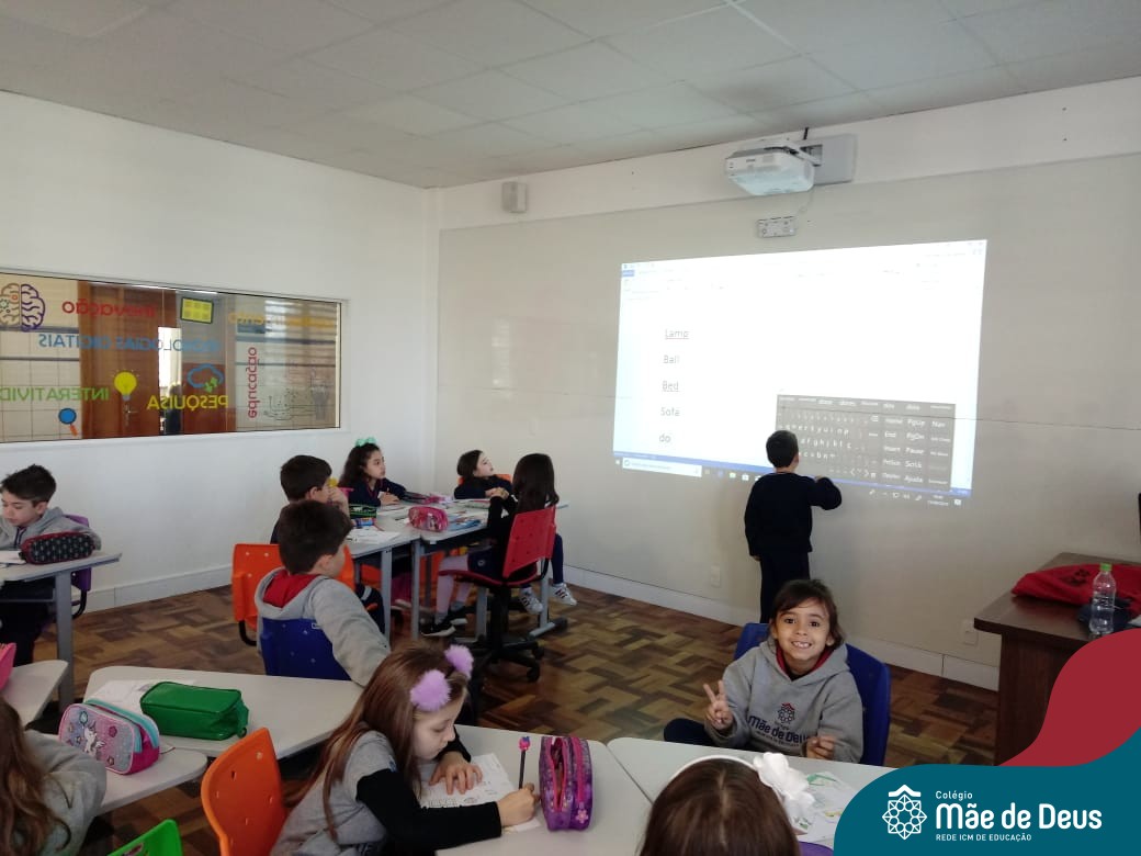 Na aula de inglês, a  turma 11, juntamente com a professora Michele Severo, vivenciou uma atividade colaborativa usando livro didático e a tela E-board da Sala Interativa. Os alunos sistematizaram hipóteses de escrita na Língua Inglesa. Foi uma atividade que proporcionou muita aprendizagem e diversão.