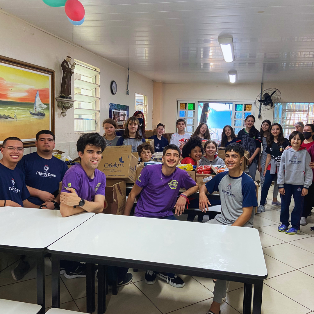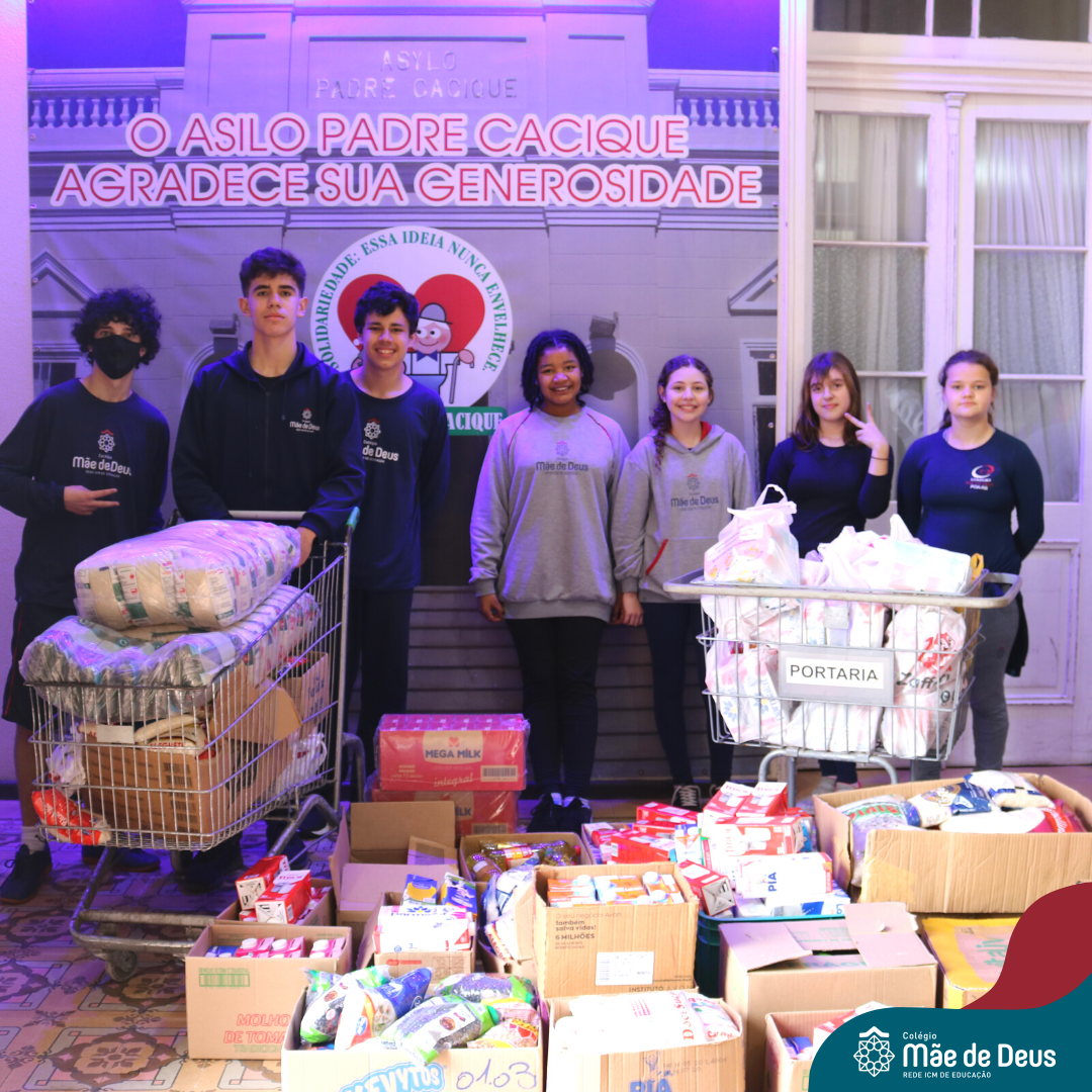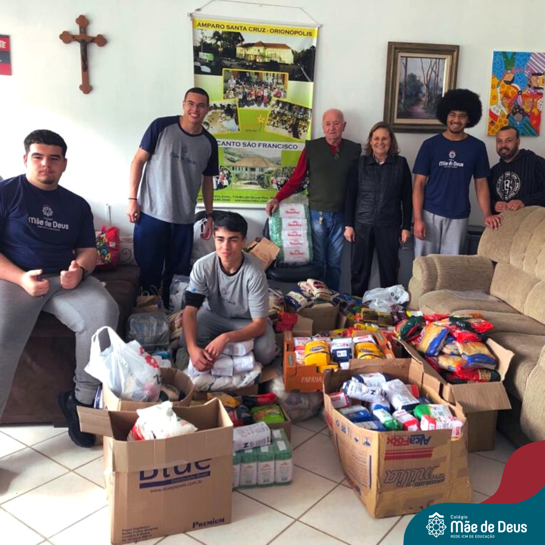Os alunos representantes das turmas ajudaram com as doações realizadas ontem na Casa de Amparo Santa Cruz e no Asilo Padre Cacique, duas instituições que atendem pessoas necessitadas de apoio.