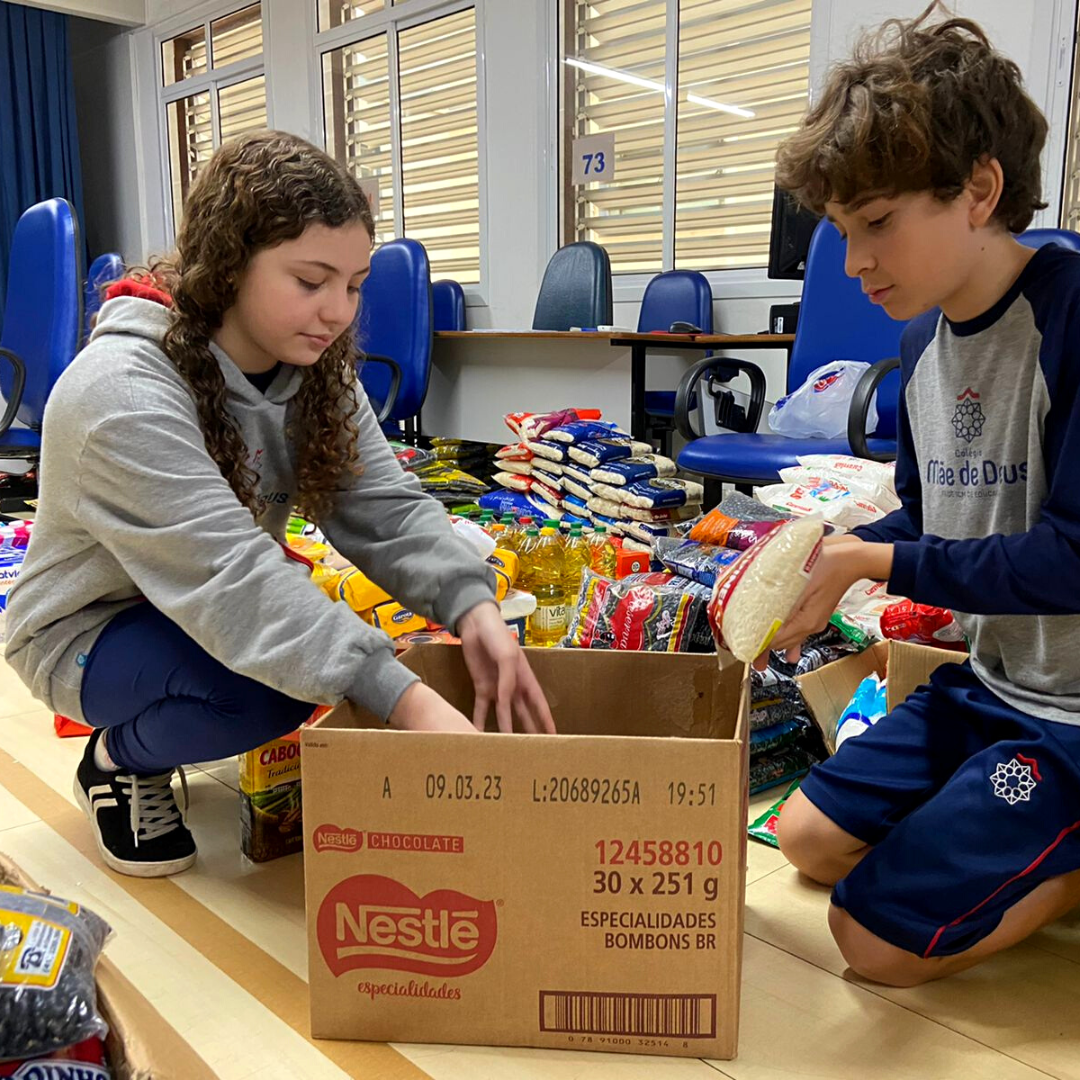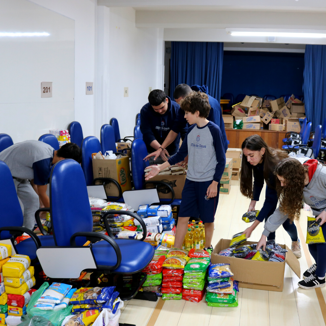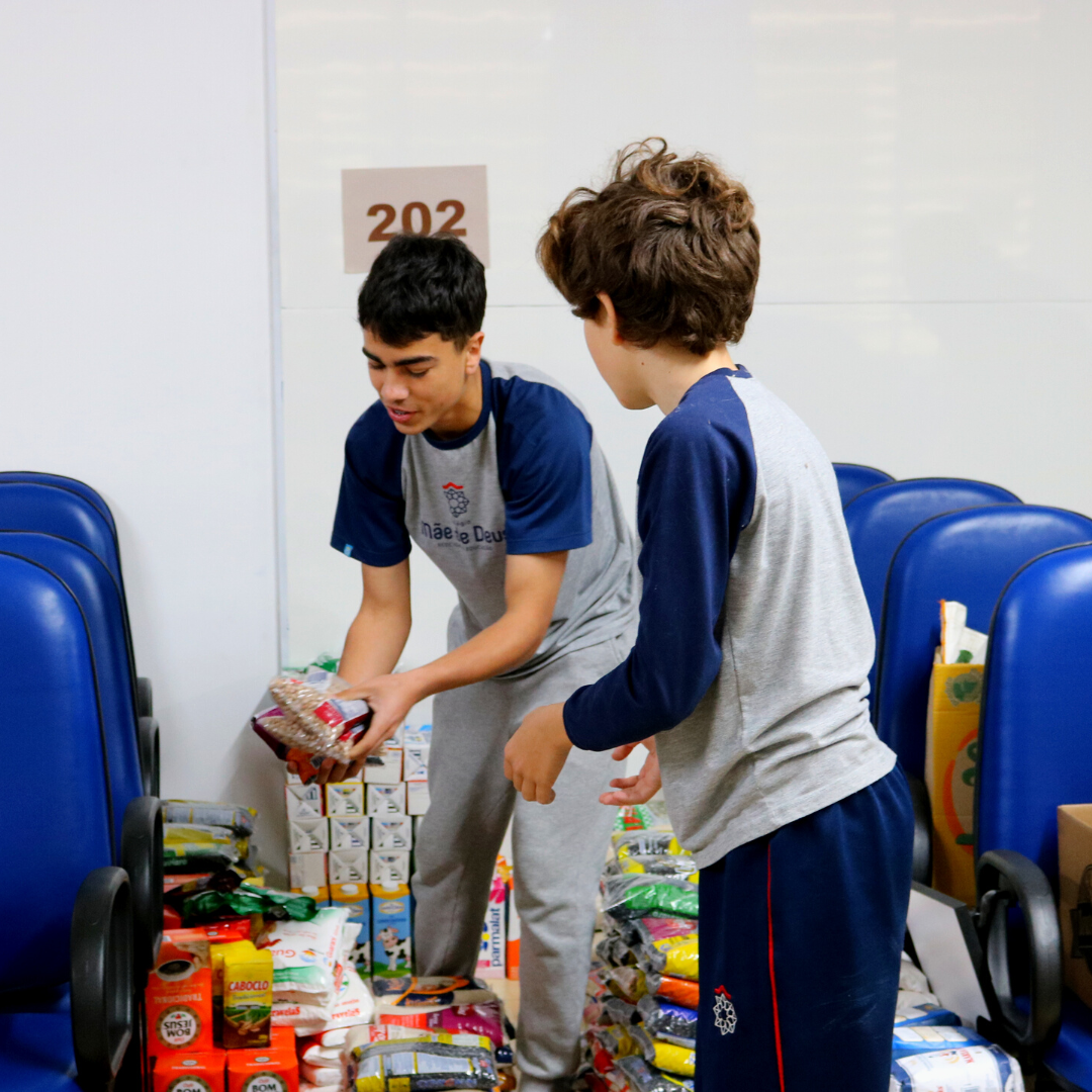 Os alunos representantes das turmas ajudaram com as doações realizadas ontem na Casa de Amparo Santa Cruz e no Asilo Padre Cacique, duas instituições que atendem pessoas necessitadas de apoio.