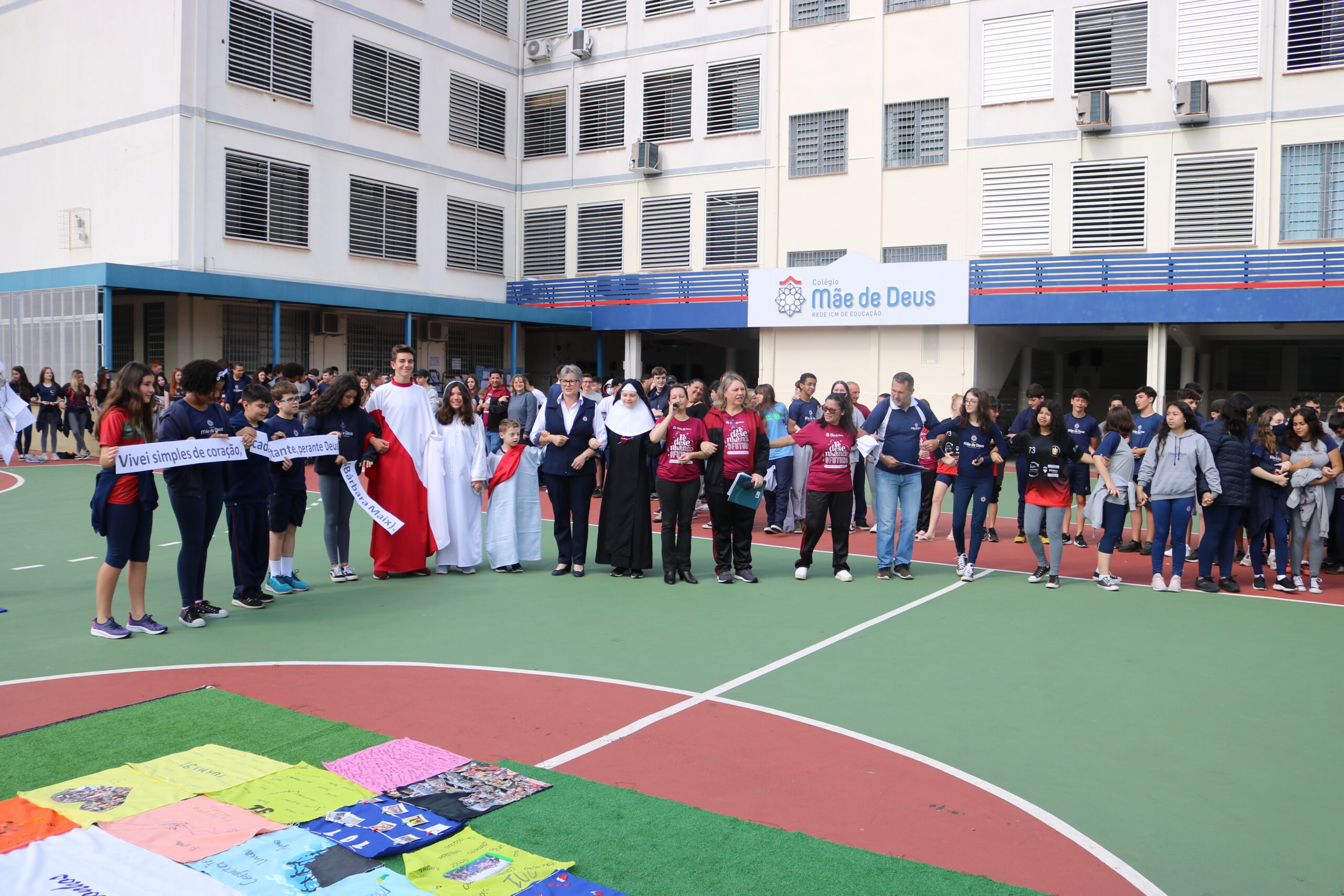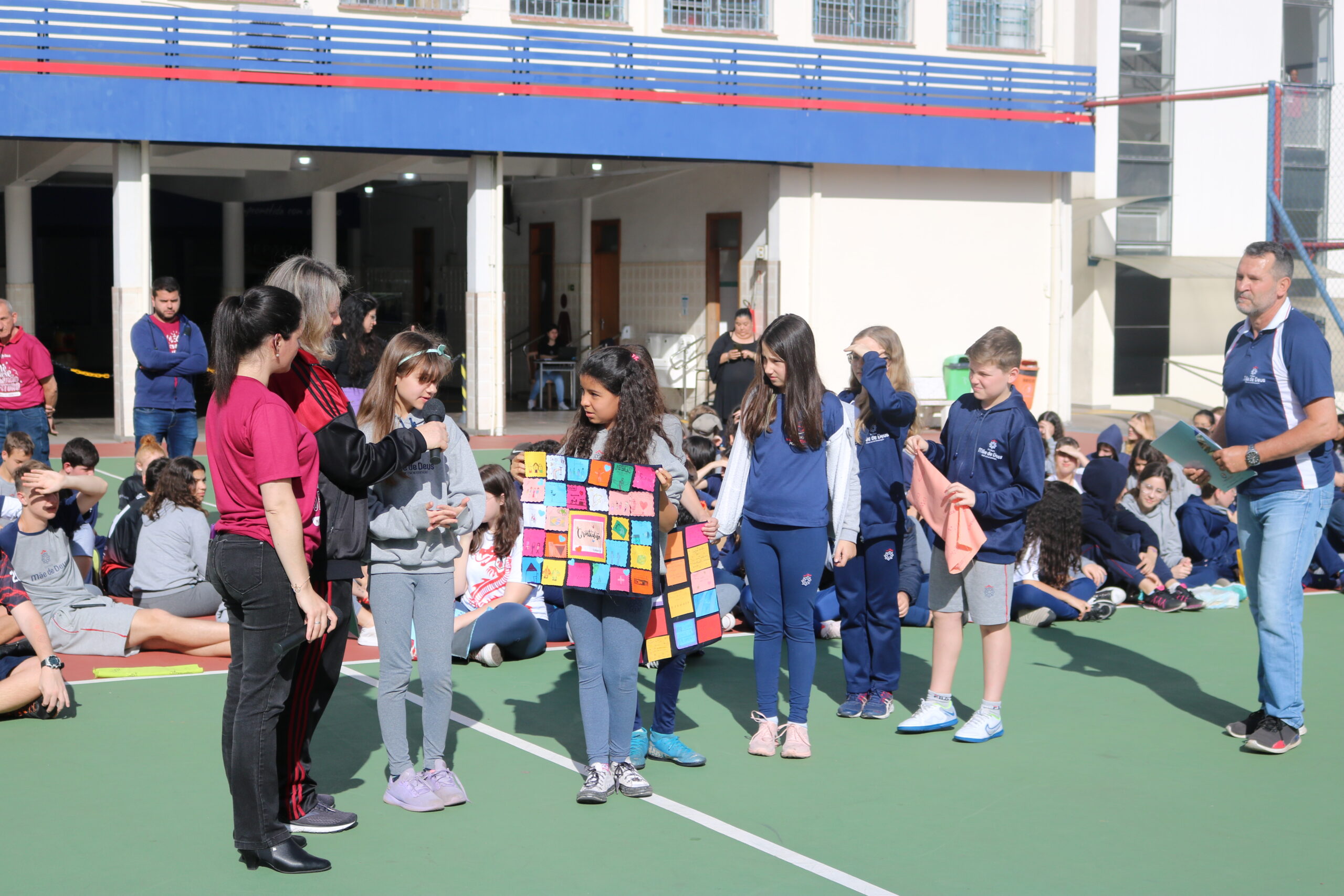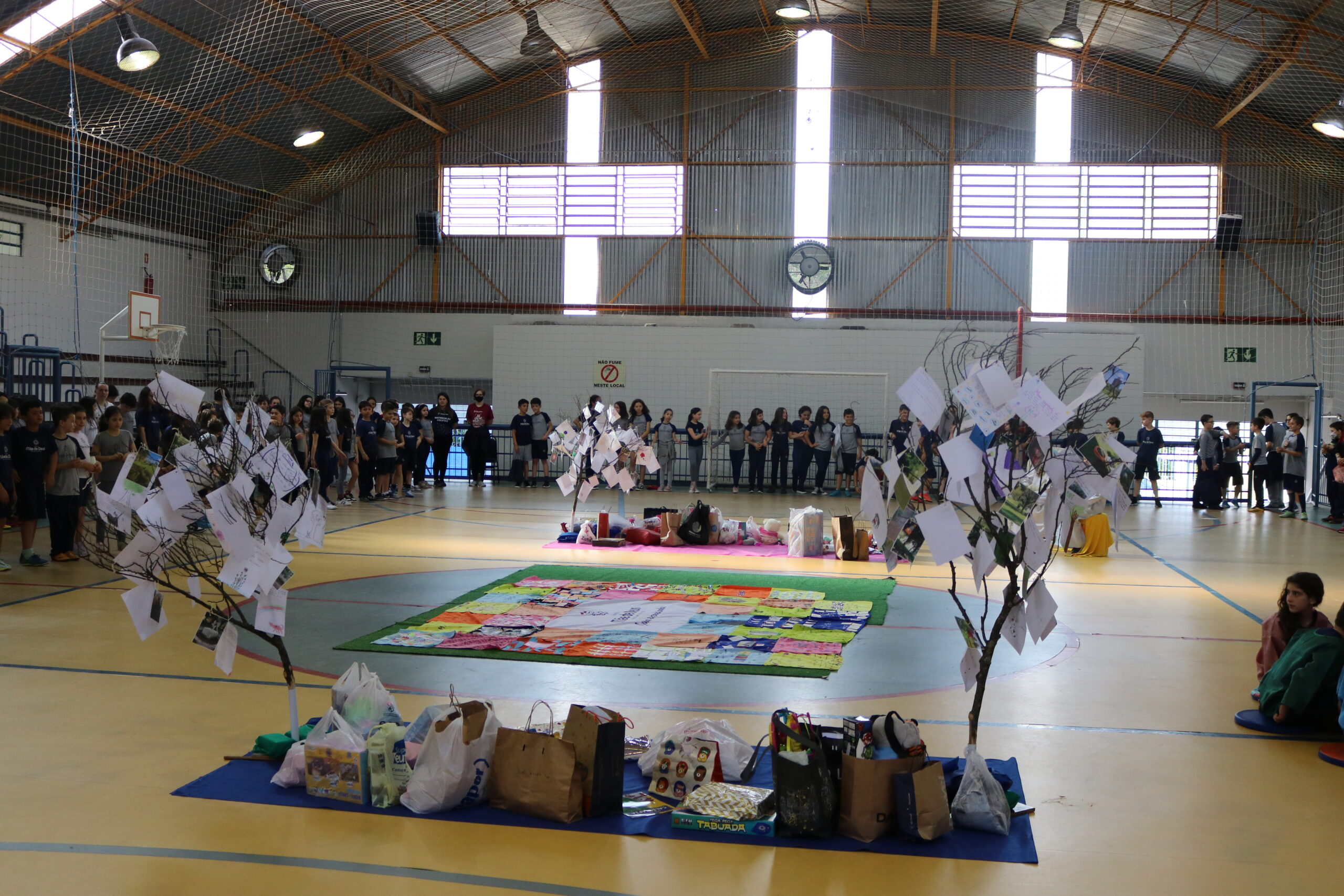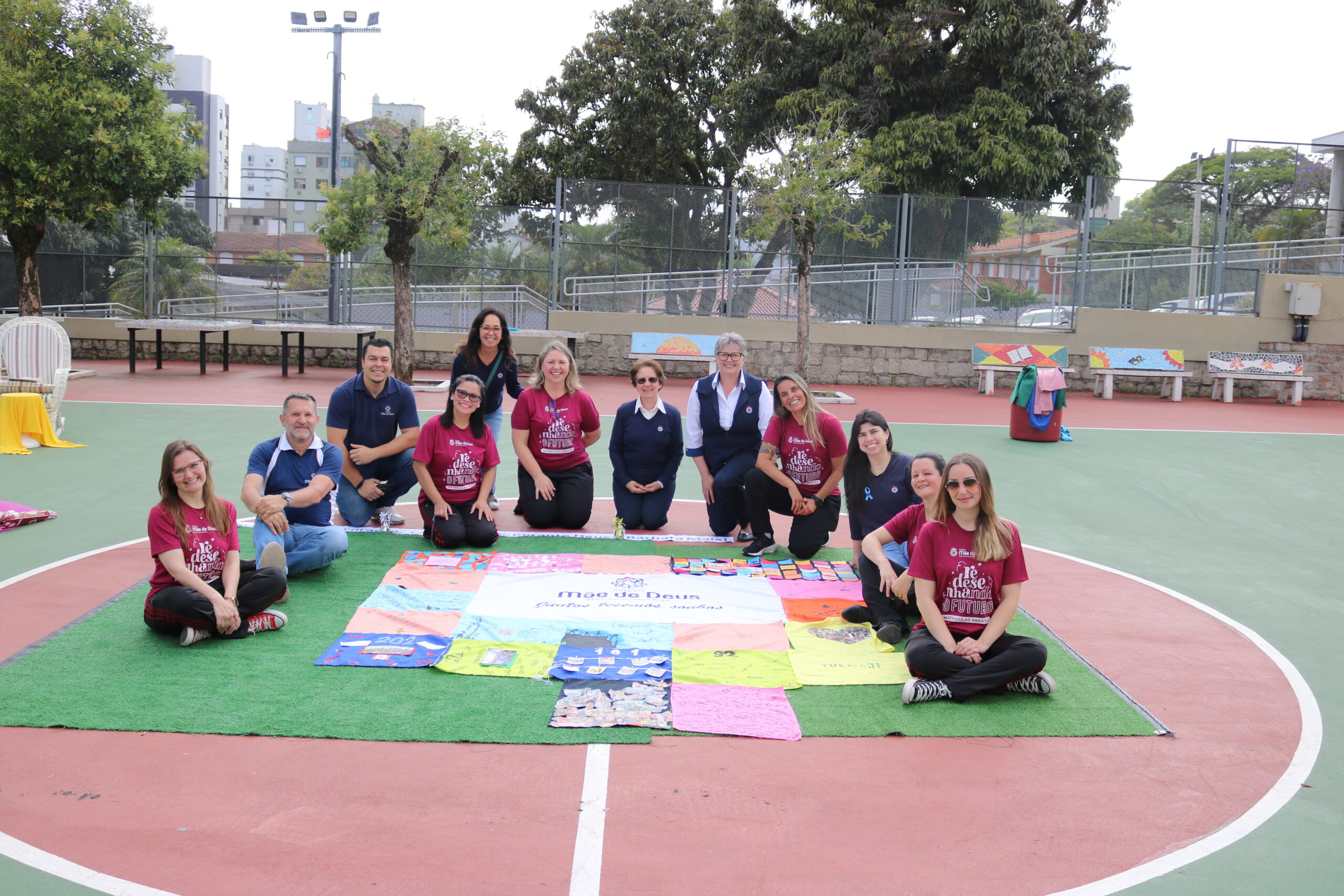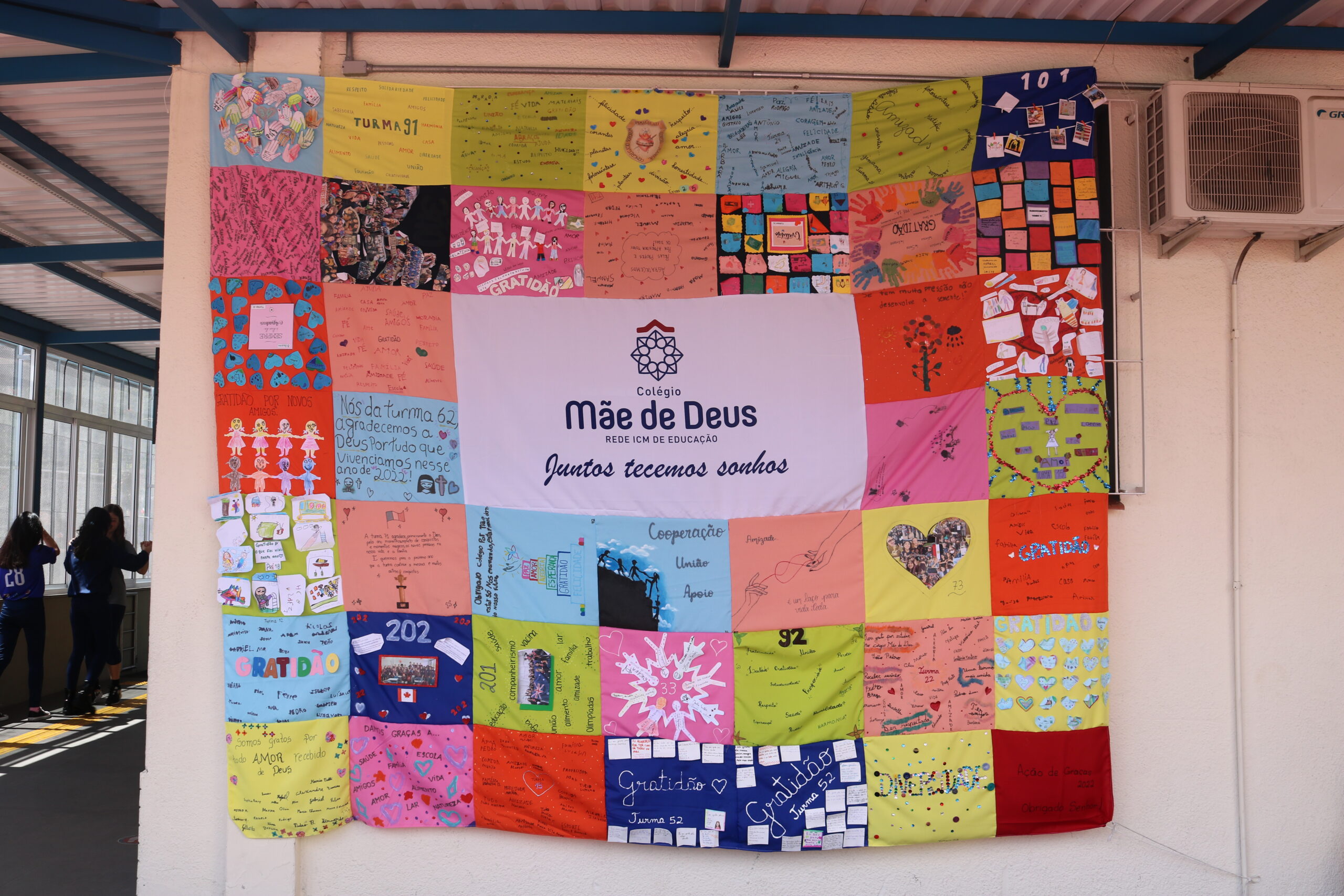 Nesta oportunidade, todas as turmas confeccionaram um tecido, expressando seus motivos de gratidão por todo o vivido em 2022, destacando suas aprendizagens, sentimentos e sonhos. Os tecidos de cada turma foram costurados, formando uma colcha de retalhos, pois, nossas vidas se constituem num caminho onde “Juntos tecemos sonhos”.