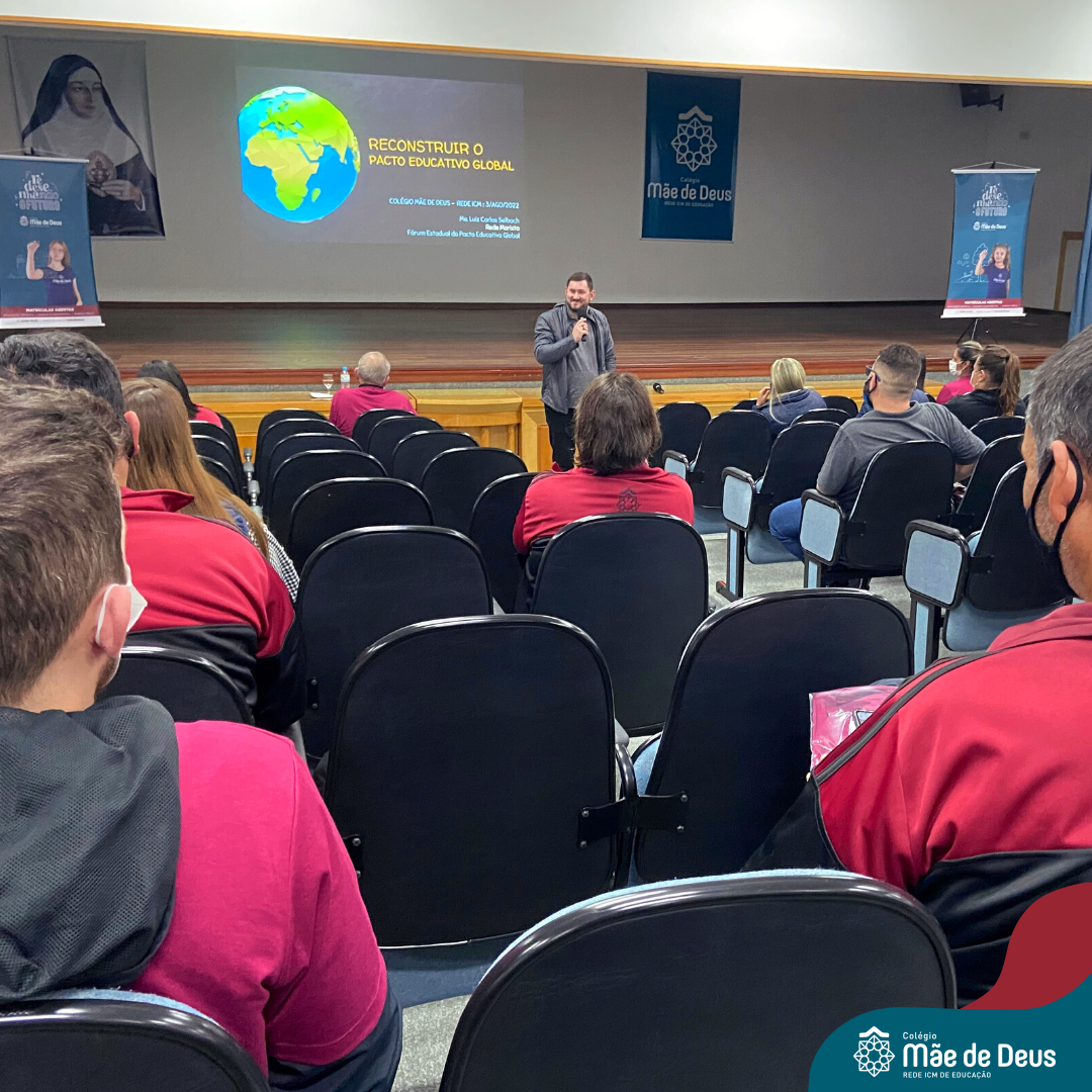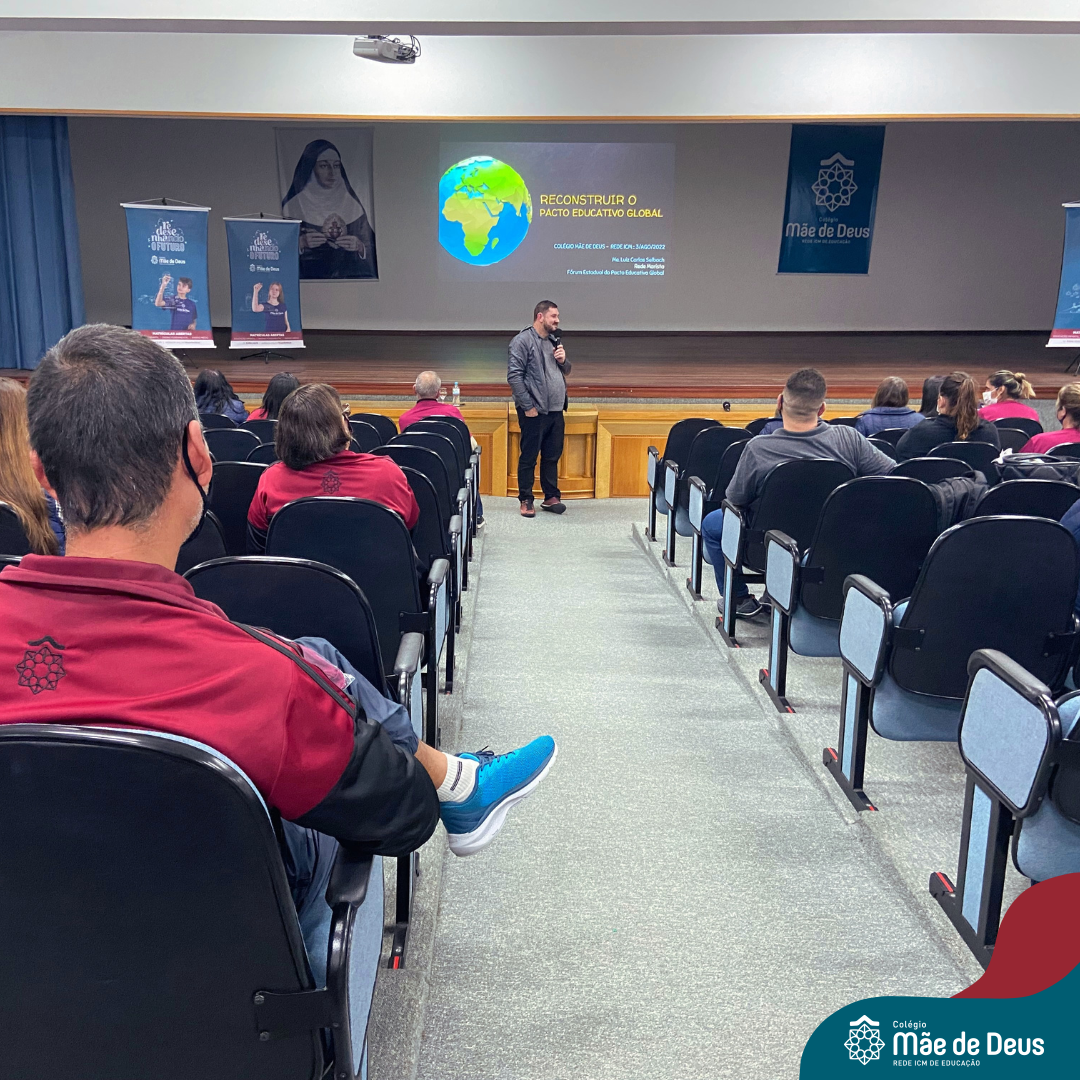 Neste mesmo dia, foi realizado uma palestra sobre o Pacto Educativo Global, ministrada pelo professor, pedagogo e mestre em teologia, Luiz Carlos Selbach. O momento serviu para conhecer melhor sobre esta iniciativa do Papa Francisco, em nível mundial, para uma educação humanizadora e solidária.