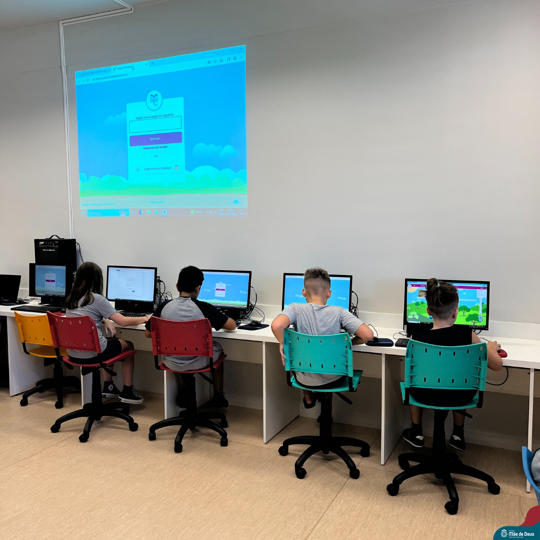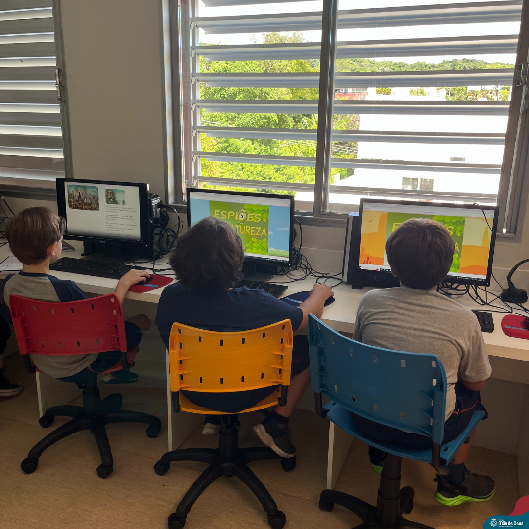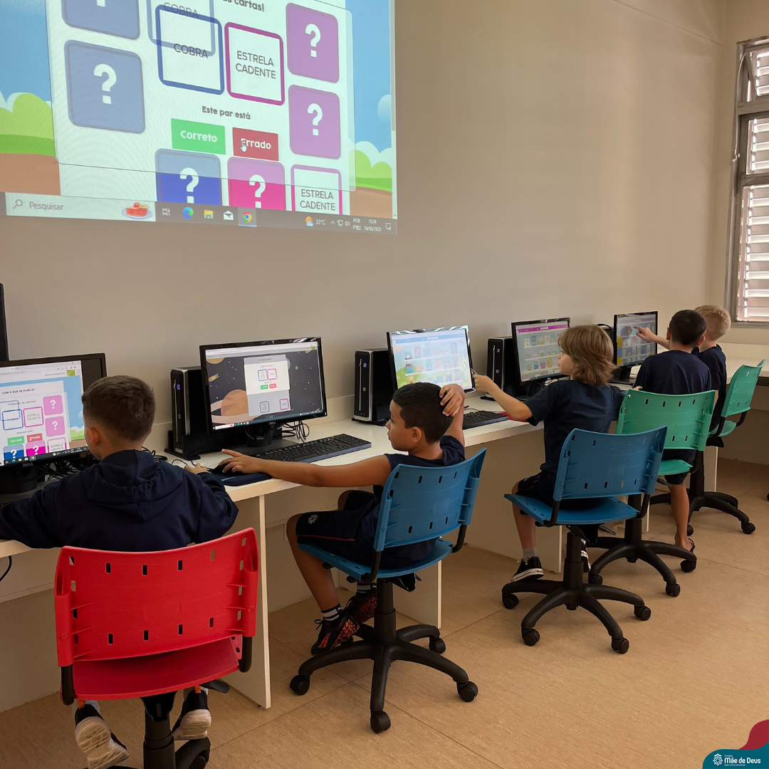 Nos últimos dias, os alunos dos Anos Inicias do Ensino Fundamental foram ao laboratório de informática do Colégio, para realizarem leituras na plataforma digital do Elefante Letrado.