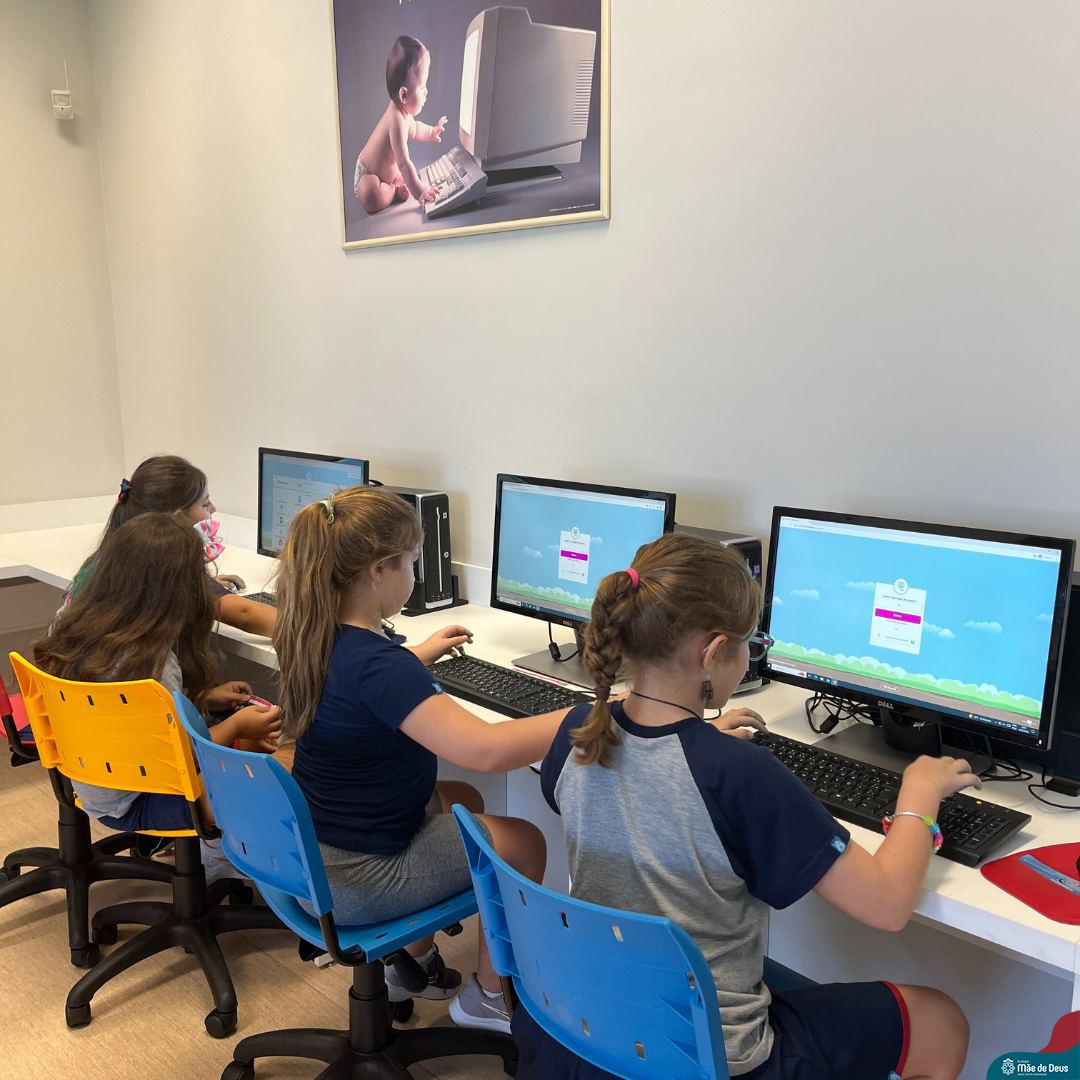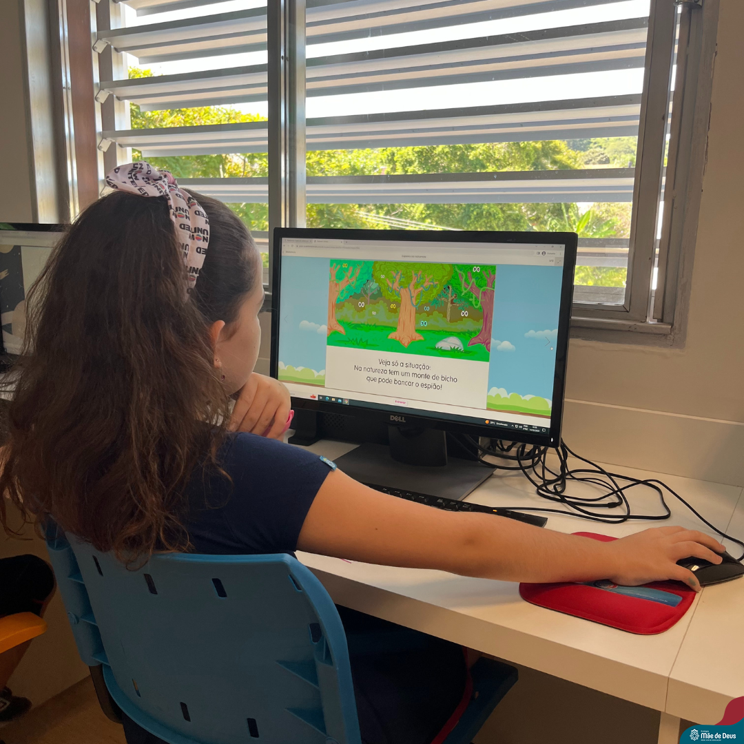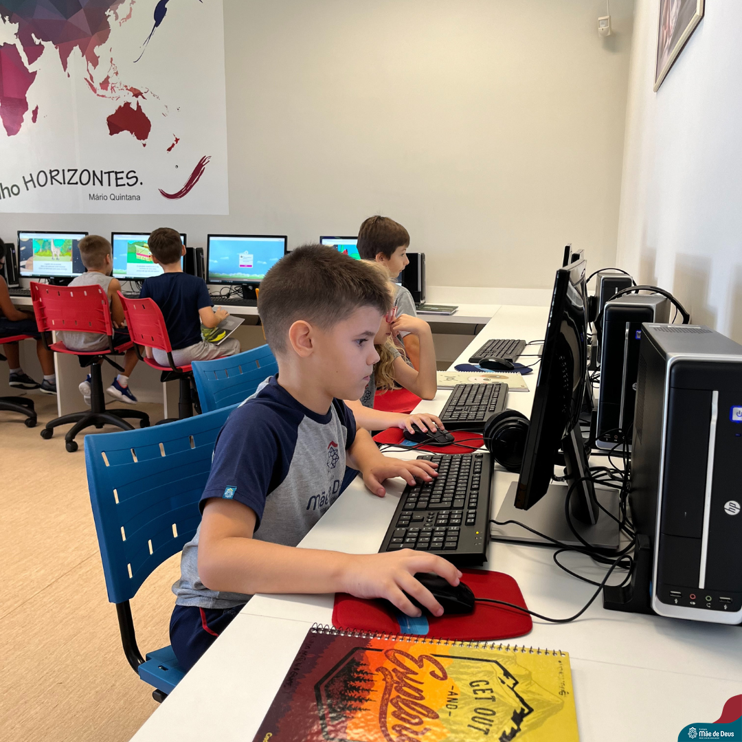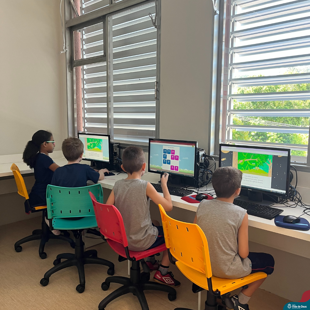Nos últimos dias, os alunos dos Anos Inicias do Ensino Fundamental foram ao laboratório de informática do Colégio, para realizarem leituras na plataforma digital do Elefante Letrado.