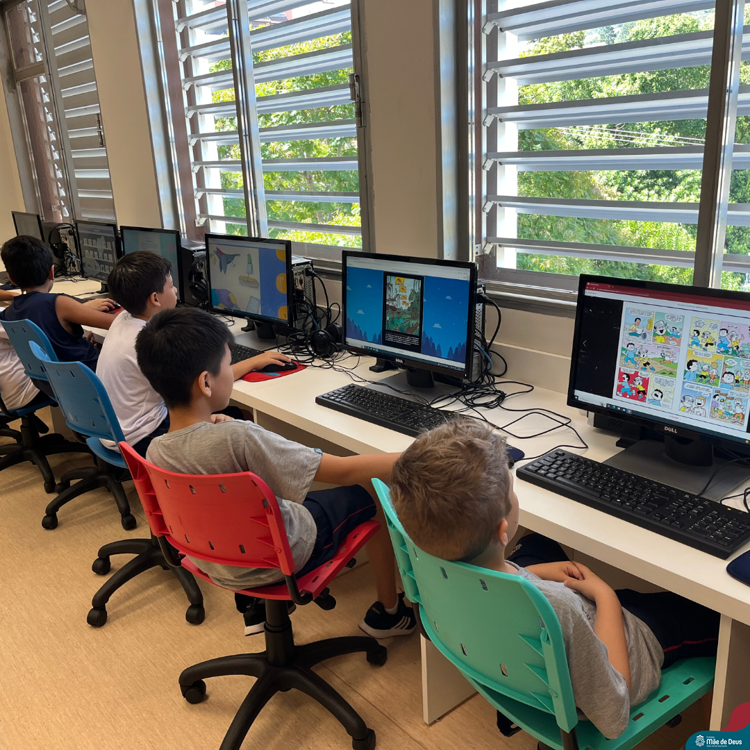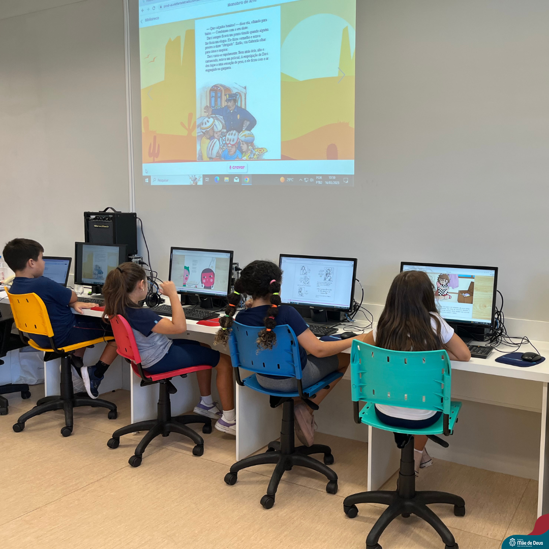 Os alunos adoraram visitar o Labin (laboratório de informática) e realizar as leituras por meio da plataforma digital.