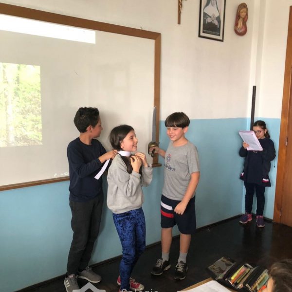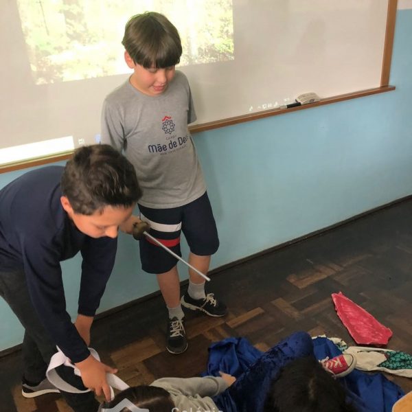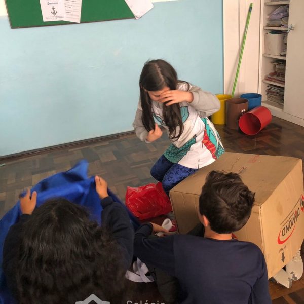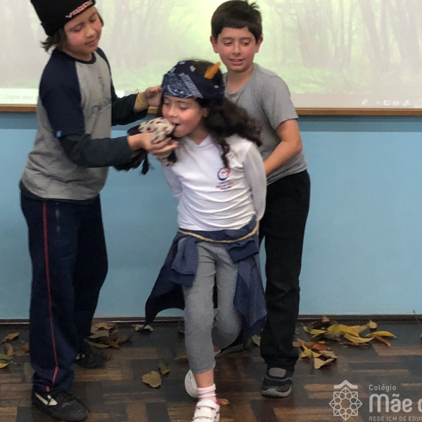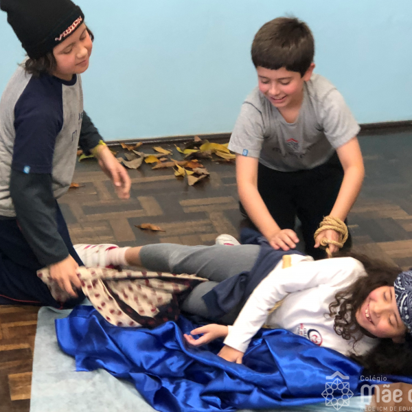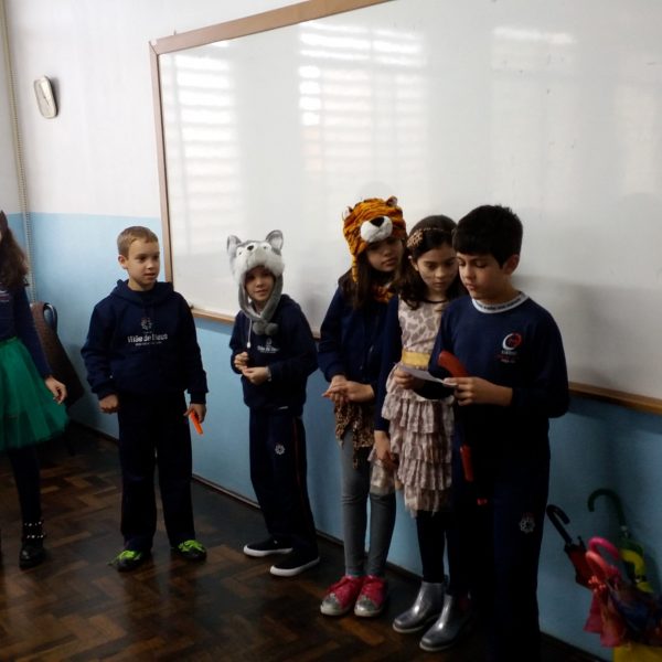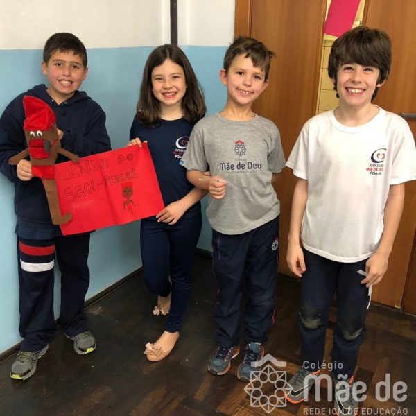 Os alunos do 3º ano se envolveram com o trabalho sobre lendas, organizando-se em grupos e se responsabilizando pelo estudo e apresentação para todos os colegas. A partir da leitura e reescrita cada grupo se dedicou em criar uma forma de apresentar, oportunizando um momento criativo, trazendo outras formas de estudo.