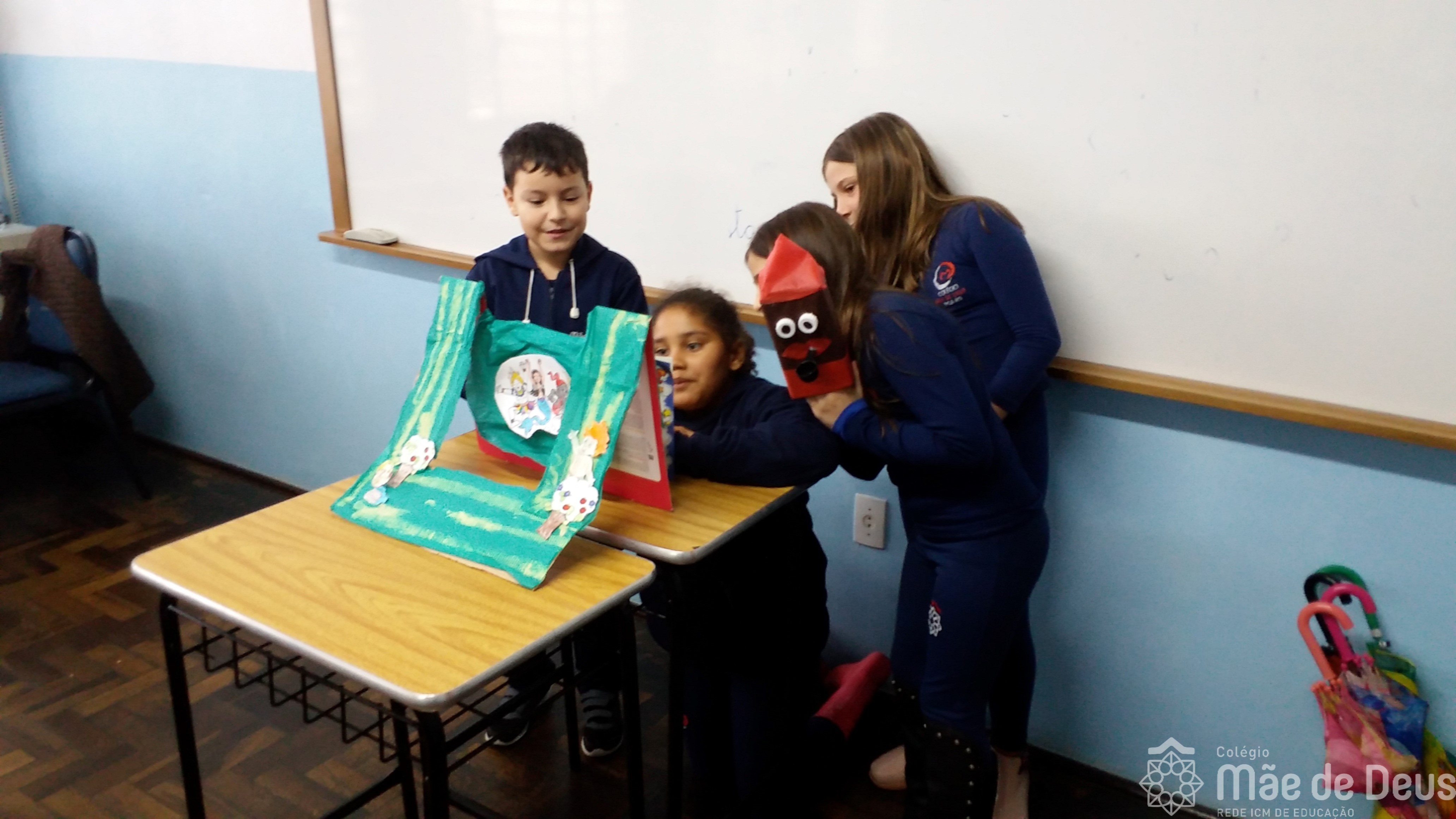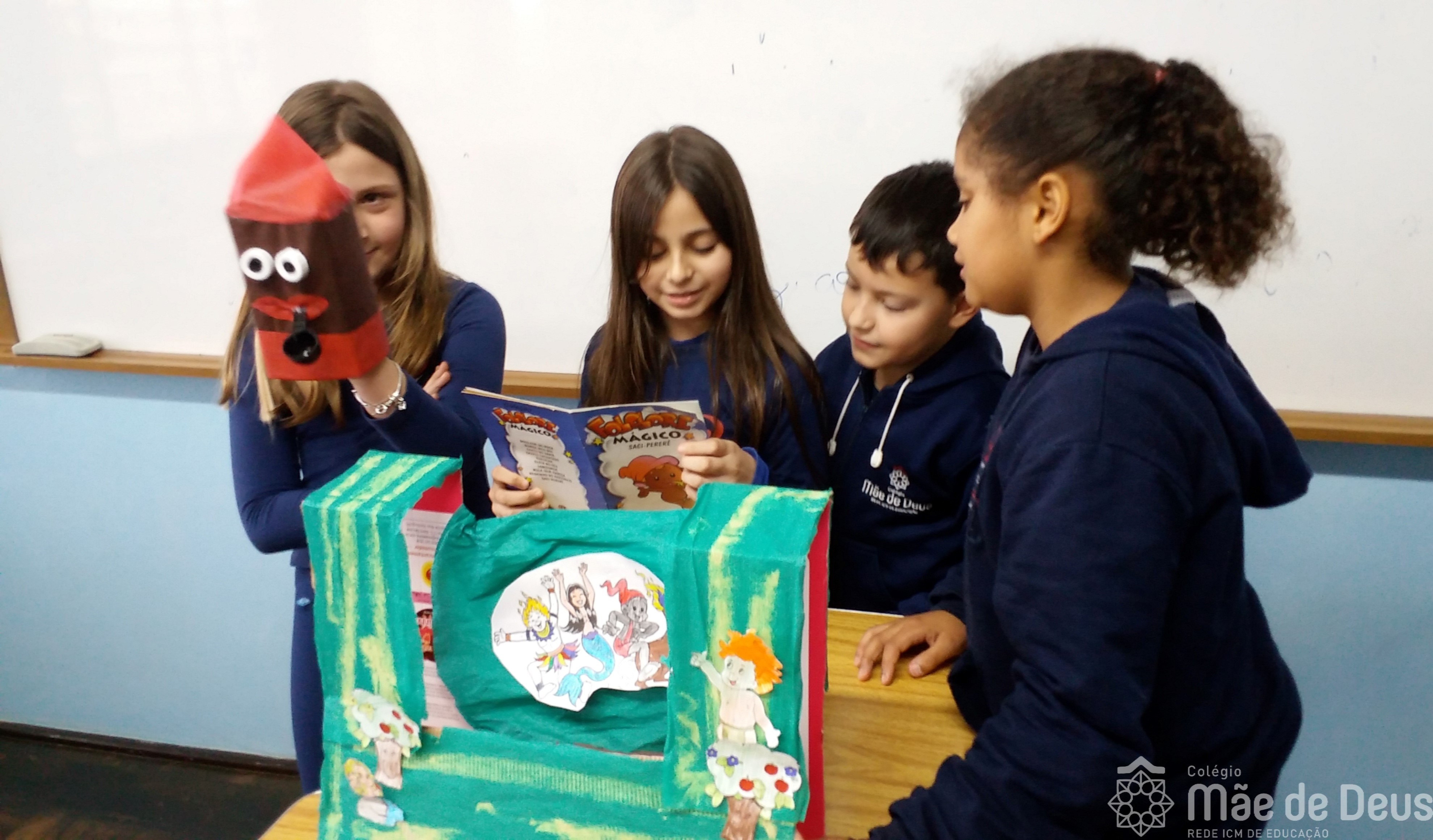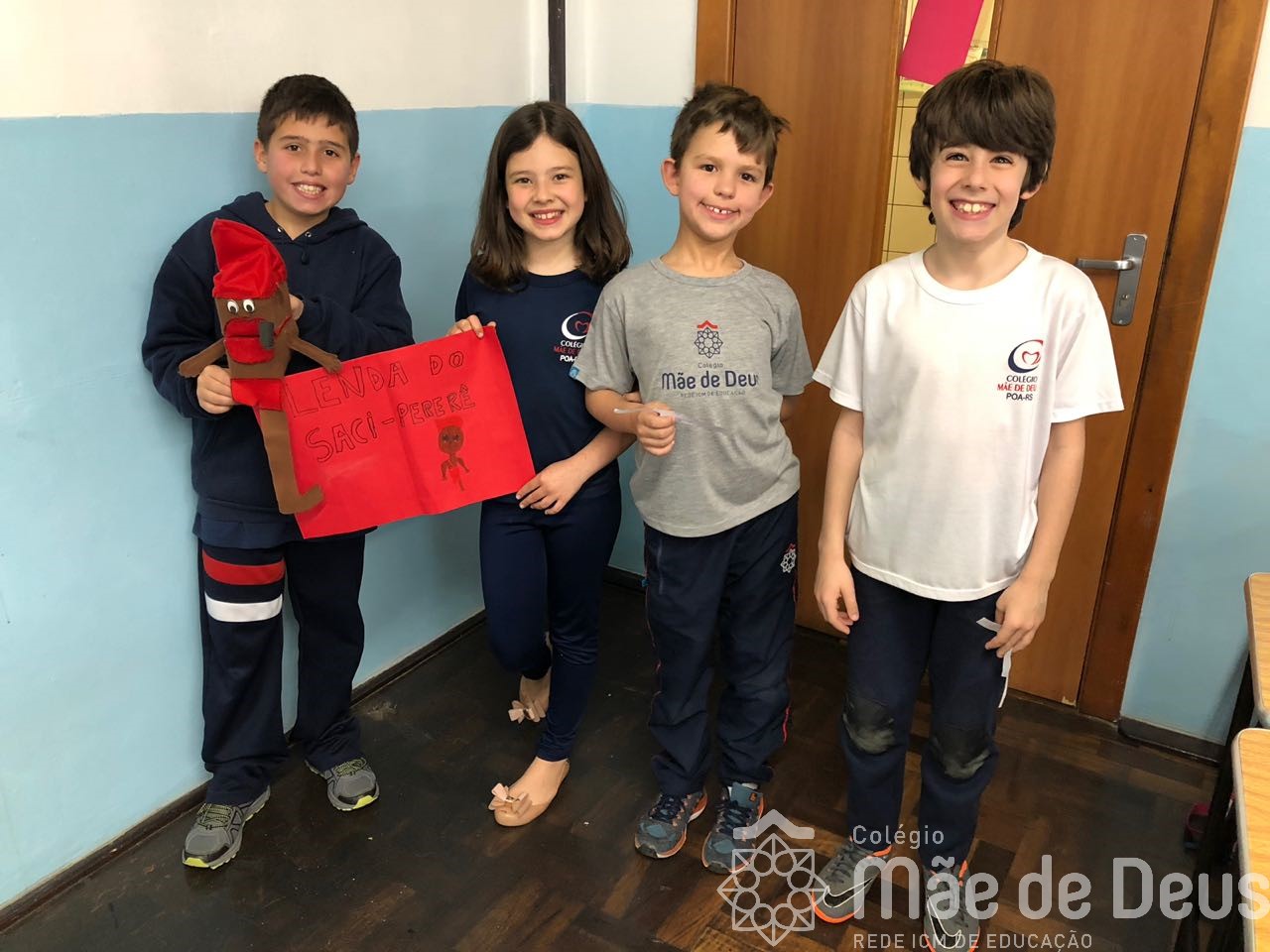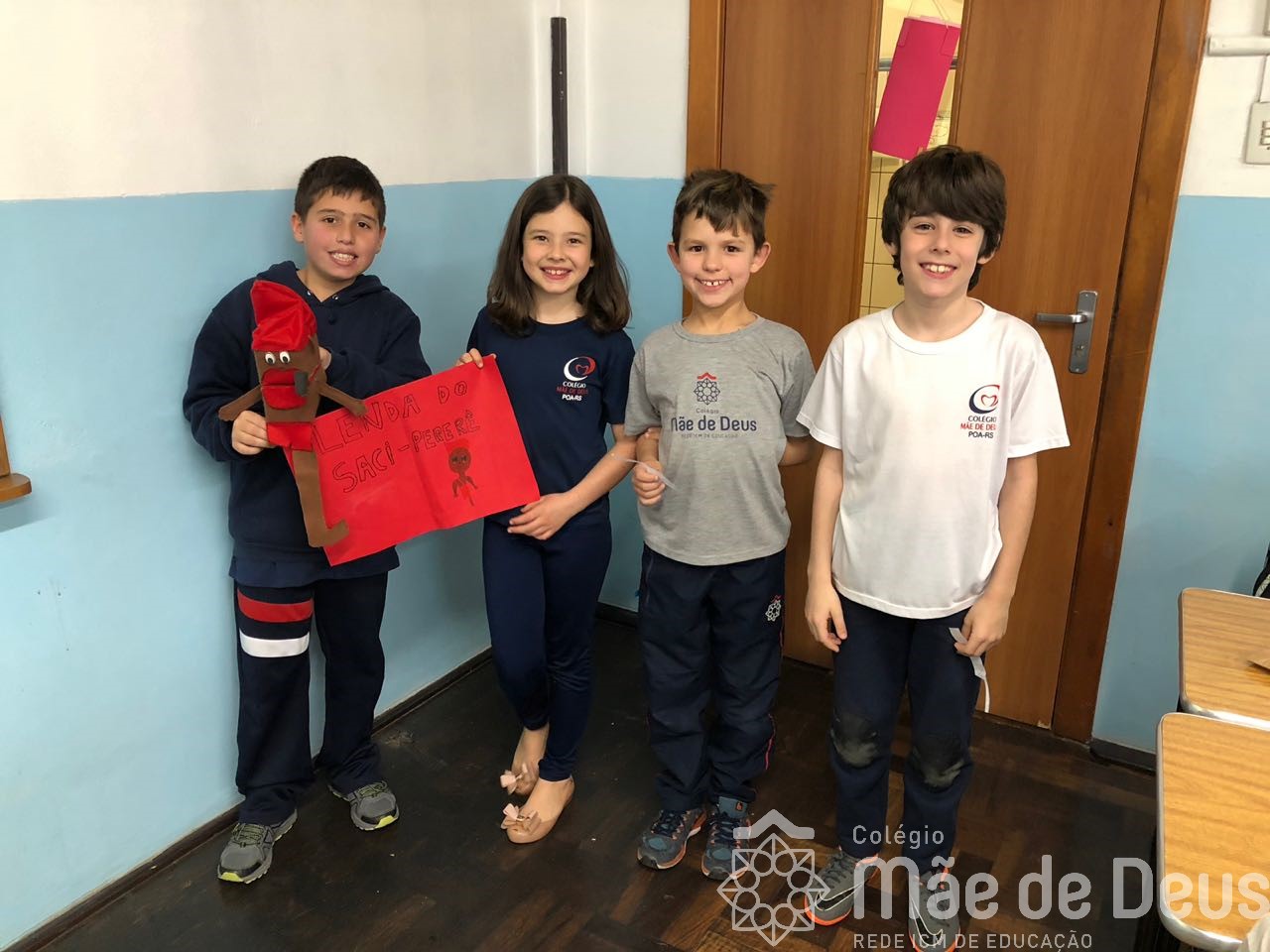 Os alunos do 3º ano se envolveram com o trabalho sobre lendas, organizando-se em grupos e se responsabilizando pelo estudo e apresentação para todos os colegas. A partir da leitura e reescrita cada grupo se dedicou em criar uma forma de apresentar, oportunizando um momento criativo, trazendo outras formas de estudo.