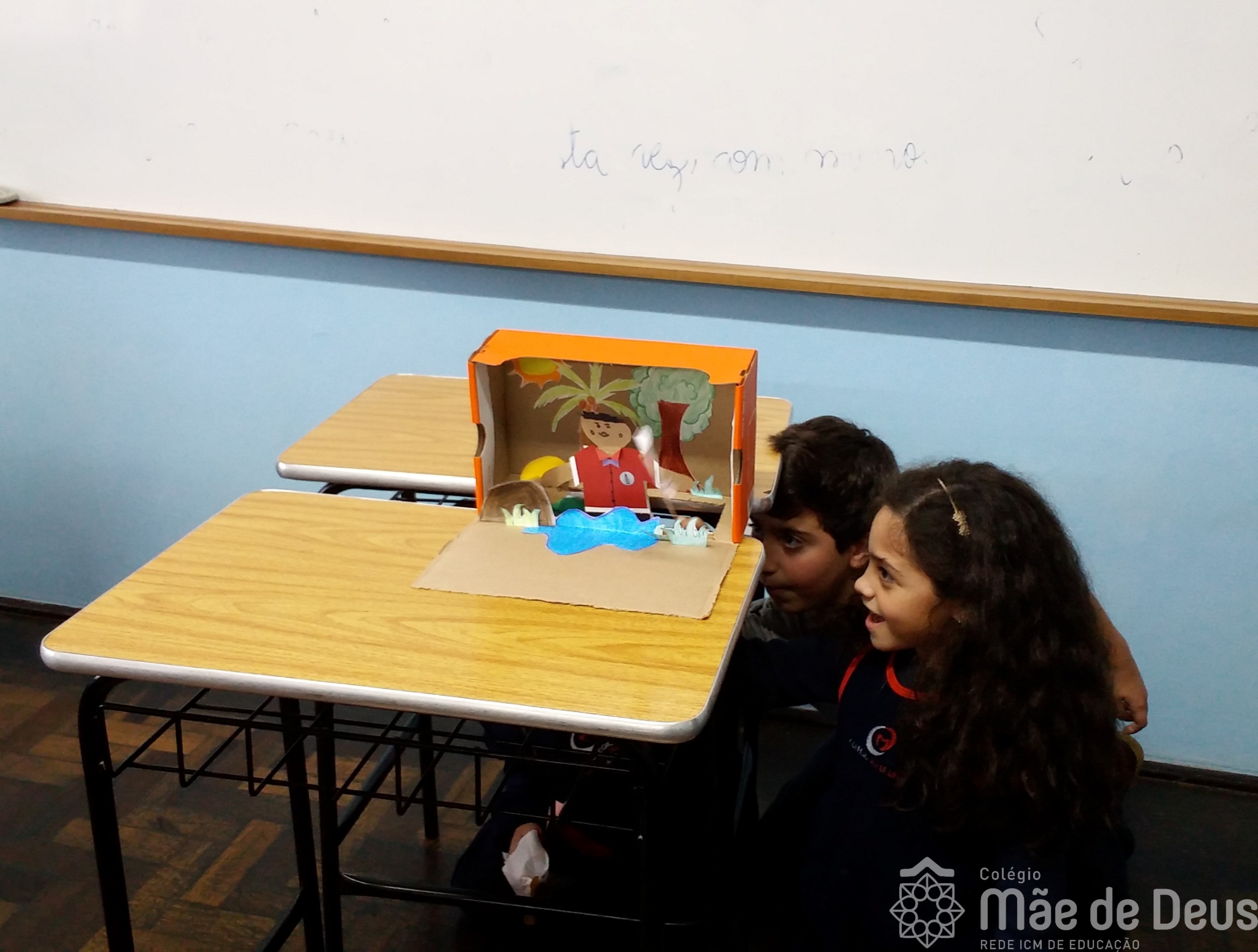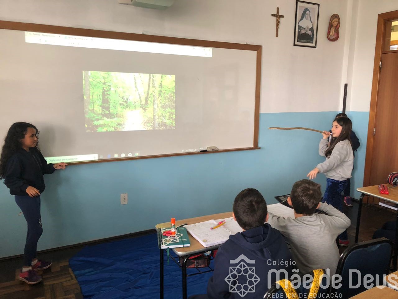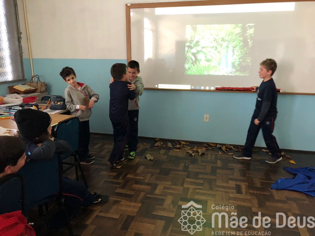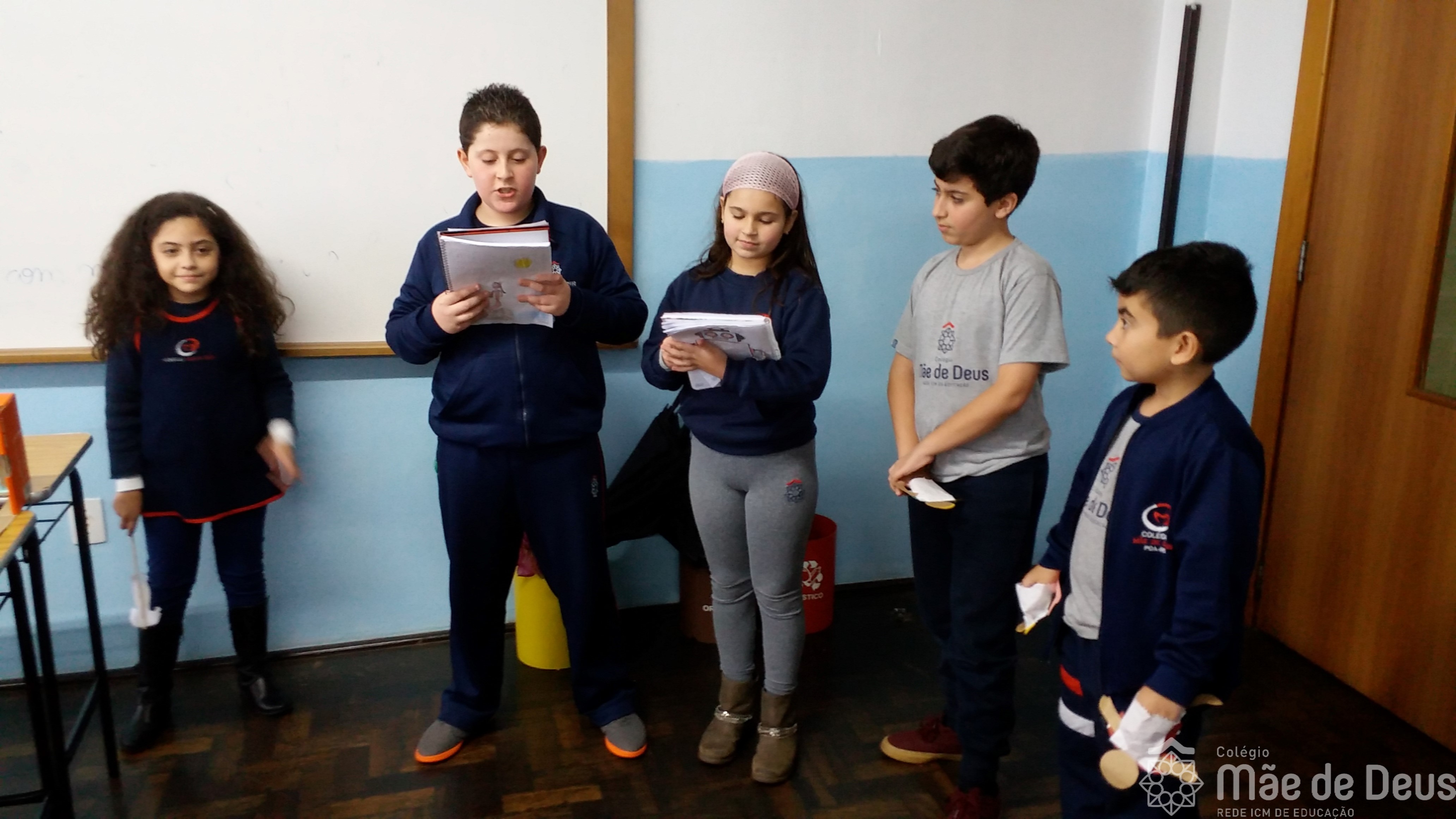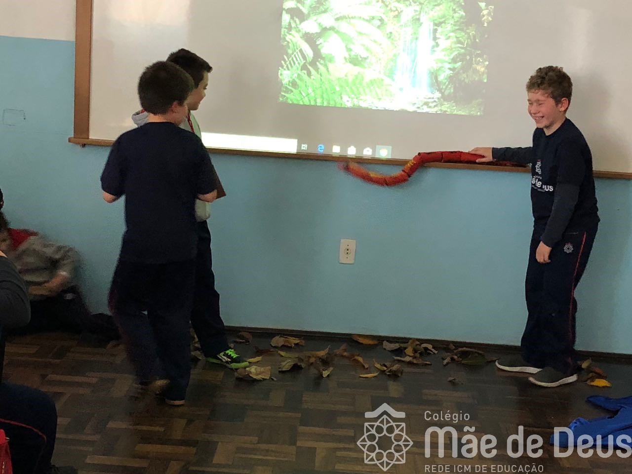 Os alunos do 3º ano se envolveram com o trabalho sobre lendas, organizando-se em grupos e se responsabilizando pelo estudo e apresentação para todos os colegas. A partir da leitura e reescrita cada grupo se dedicou em criar uma forma de apresentar, oportunizando um momento criativo, trazendo outras formas de estudo.