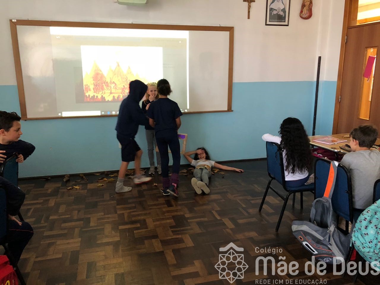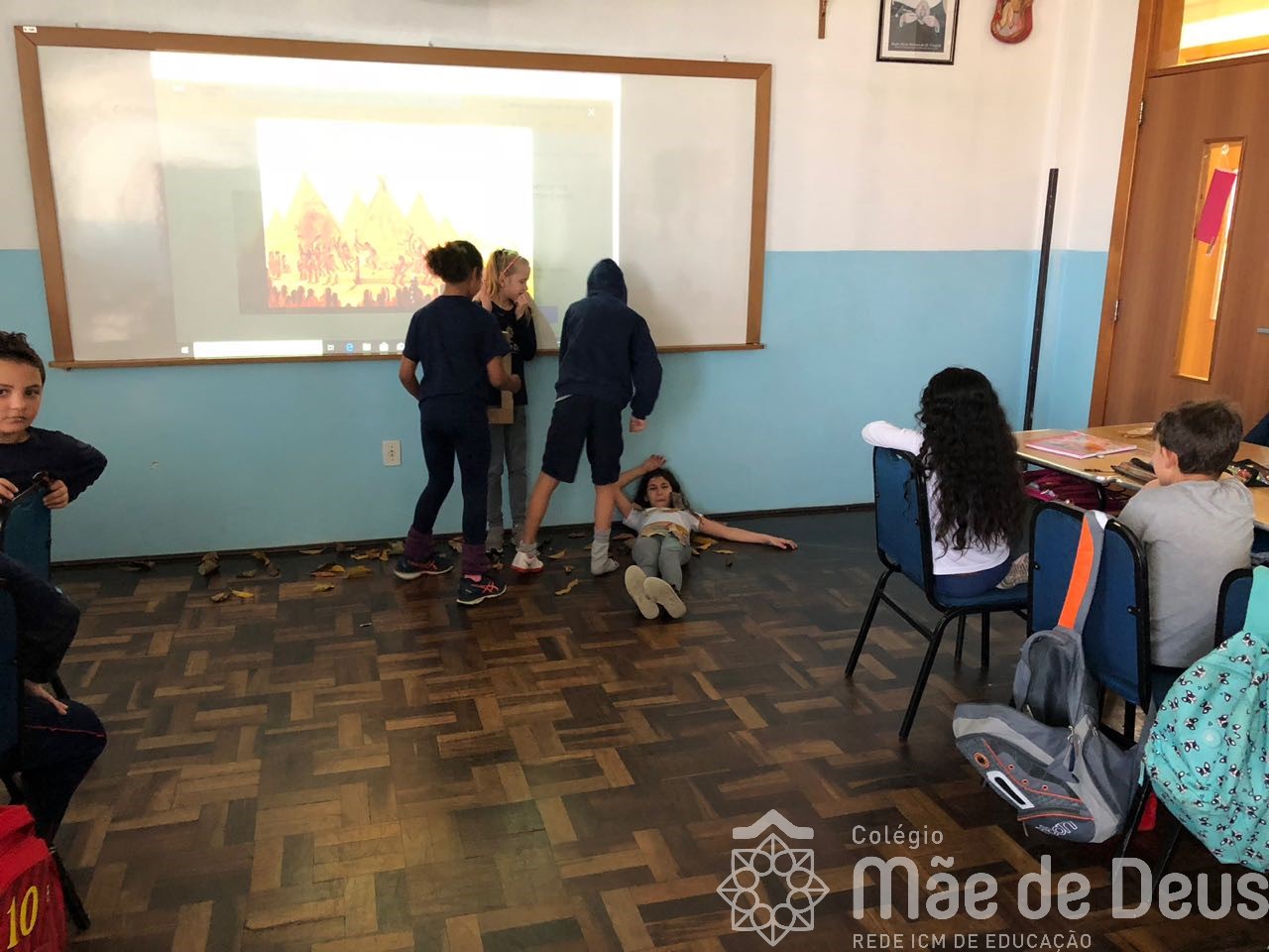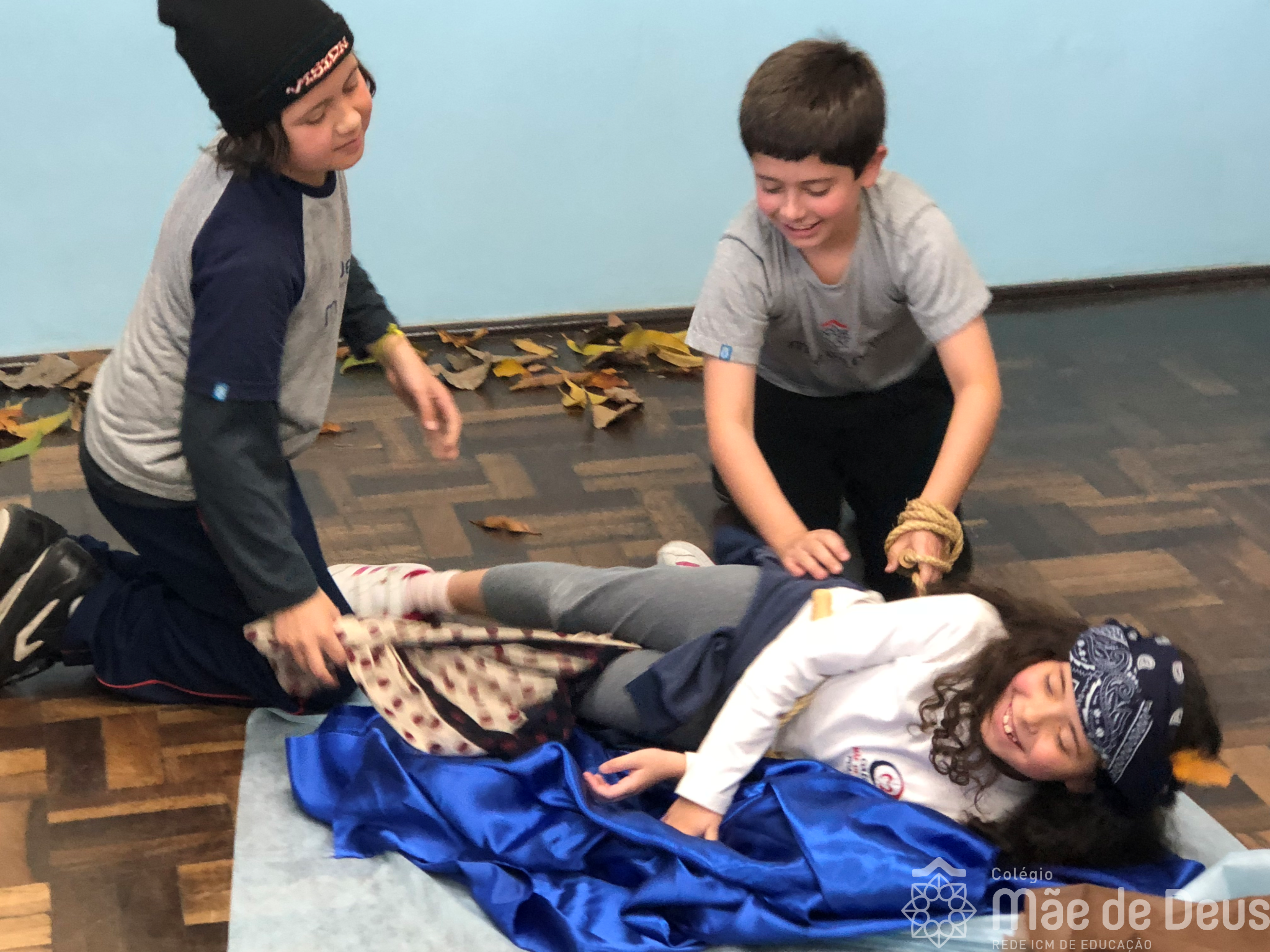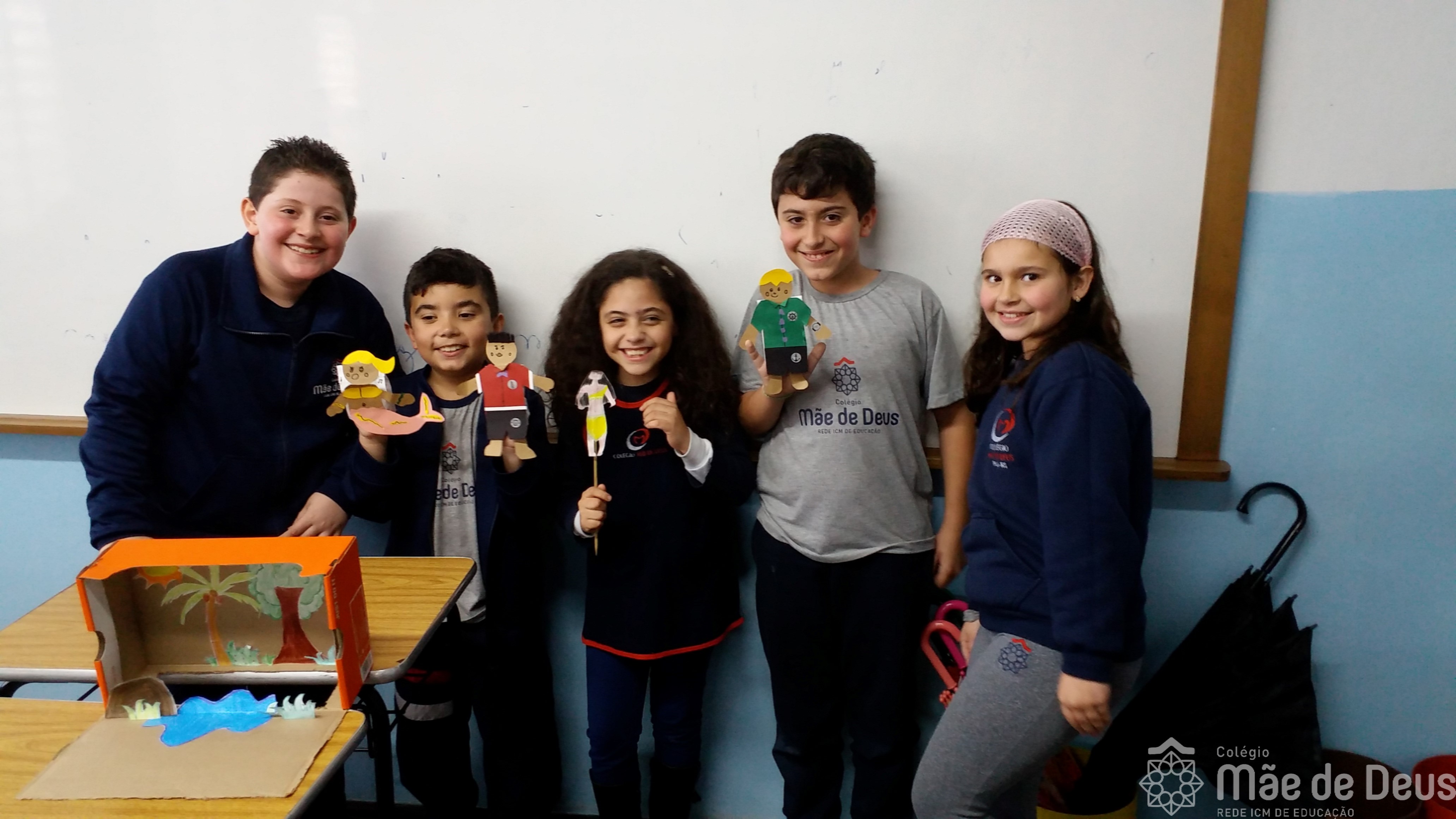 Os alunos do 3º ano se envolveram com o trabalho sobre lendas, organizando-se em grupos e se responsabilizando pelo estudo e apresentação para todos os colegas. A partir da leitura e reescrita cada grupo se dedicou em criar uma forma de apresentar, oportunizando um momento criativo, trazendo outras formas de estudo.