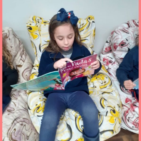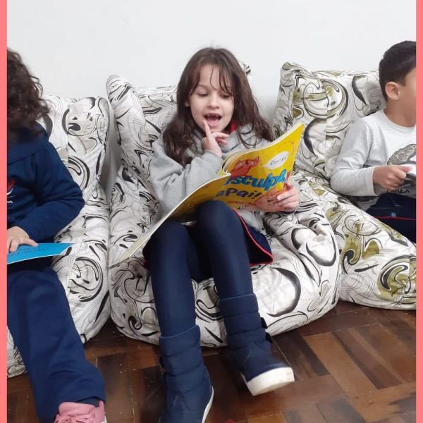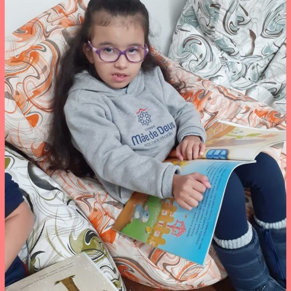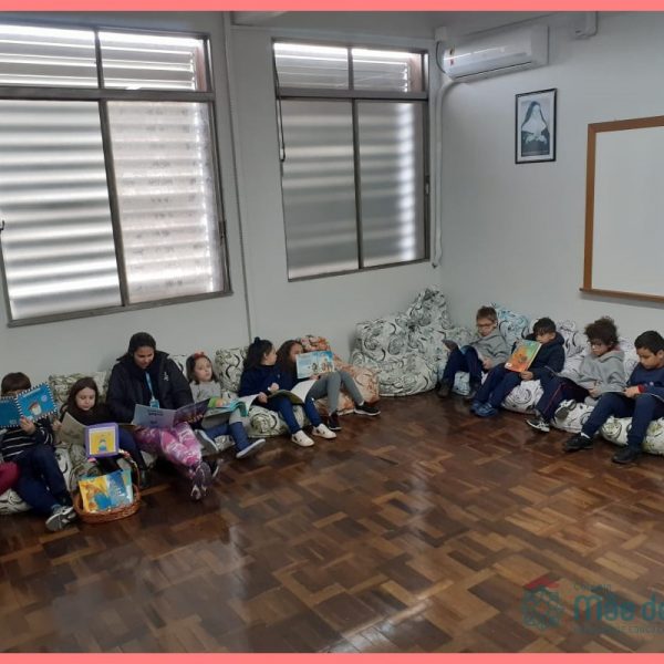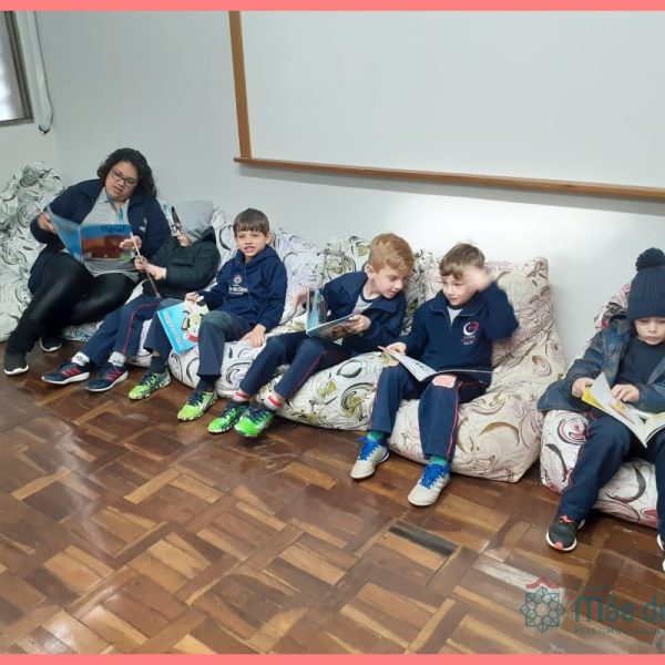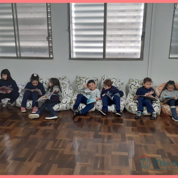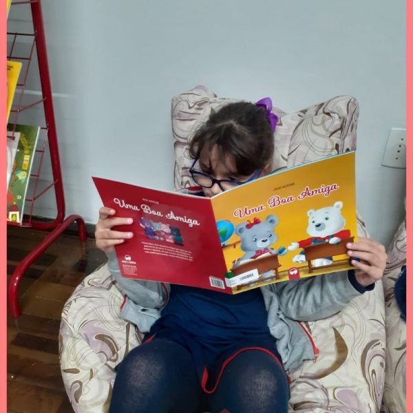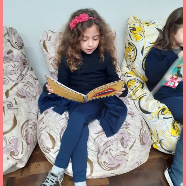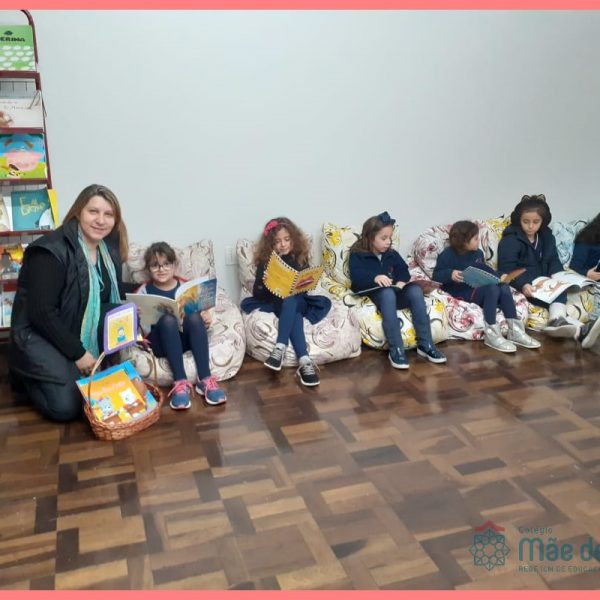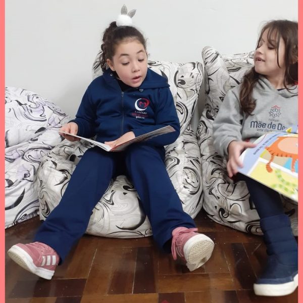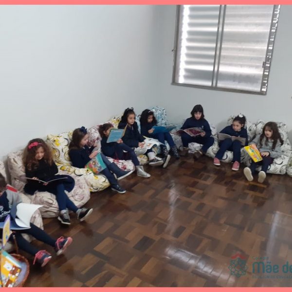 Depoimento das alunas: Marina Severo da turma 11: “Eu gostei muito dos livros e até li um sozinha”; Maria Eduarda Chaves turma 12: “Achei muito legal, ver os desenhos e ler os livros da biblioteca na rodinha em sala de aula e, contar o que mais gostei da história”.