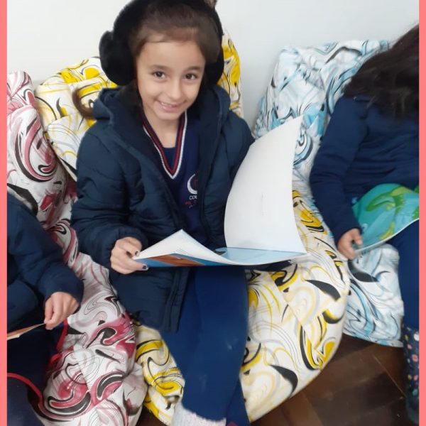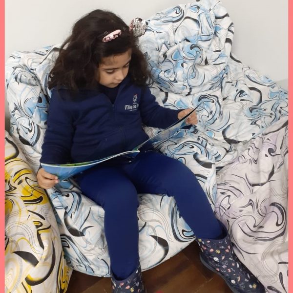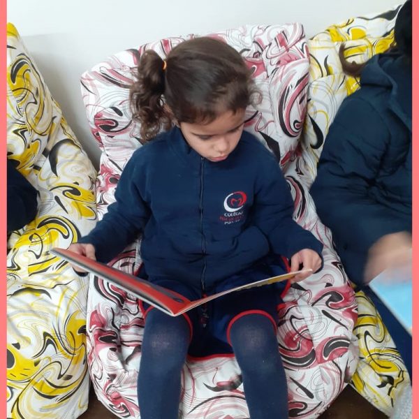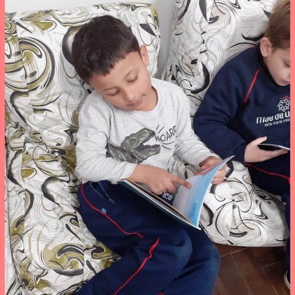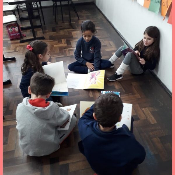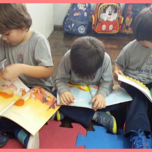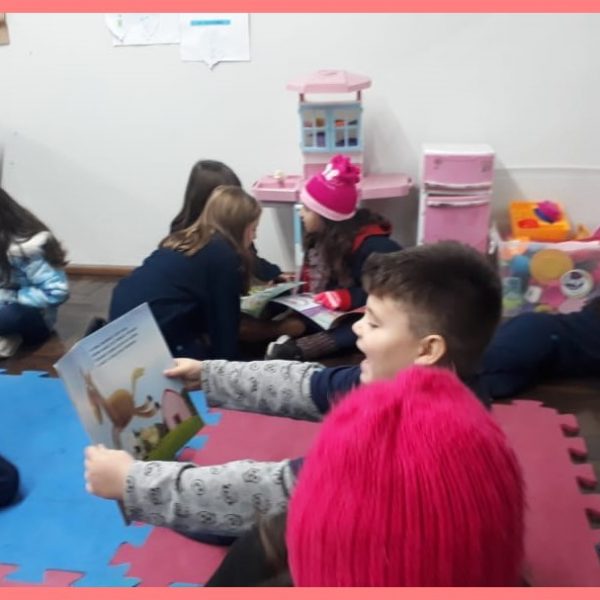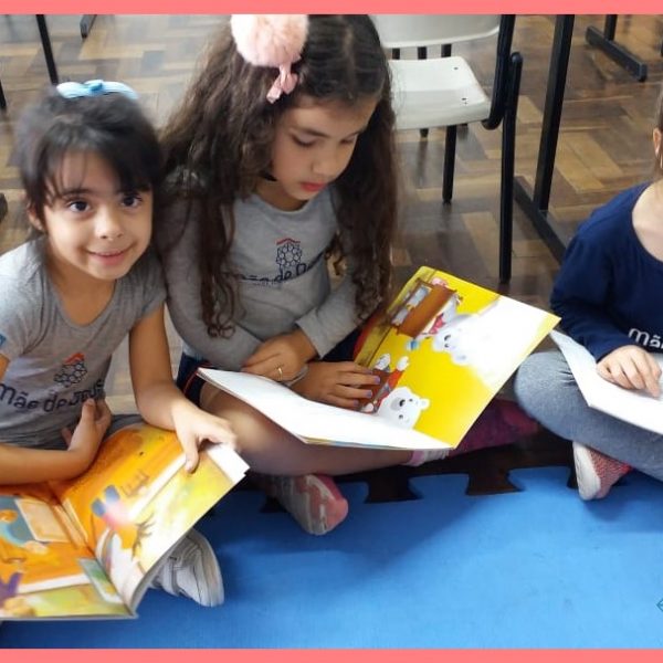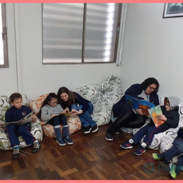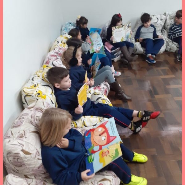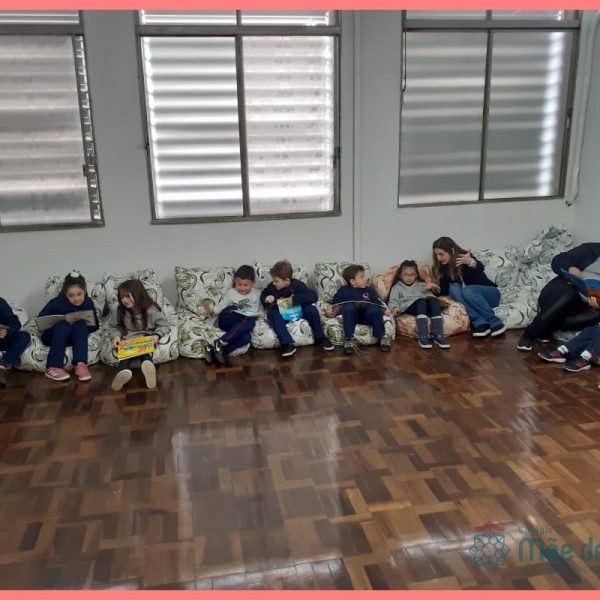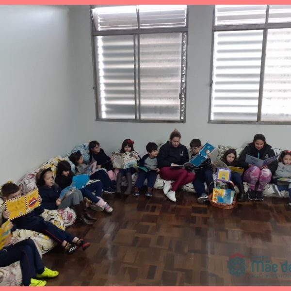 Depoimento das alunas: Marina Severo da turma 11: “Eu gostei muito dos livros e até li um sozinha”; Maria Eduarda Chaves turma 12: “Achei muito legal, ver os desenhos e ler os livros da biblioteca na rodinha em sala de aula e, contar o que mais gostei da história”.