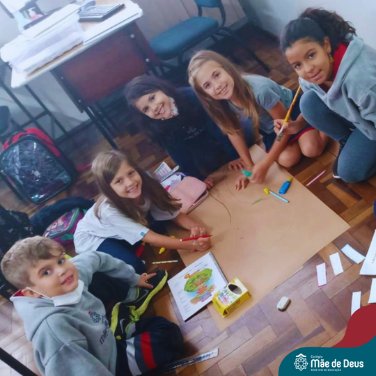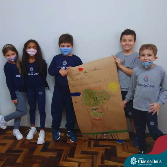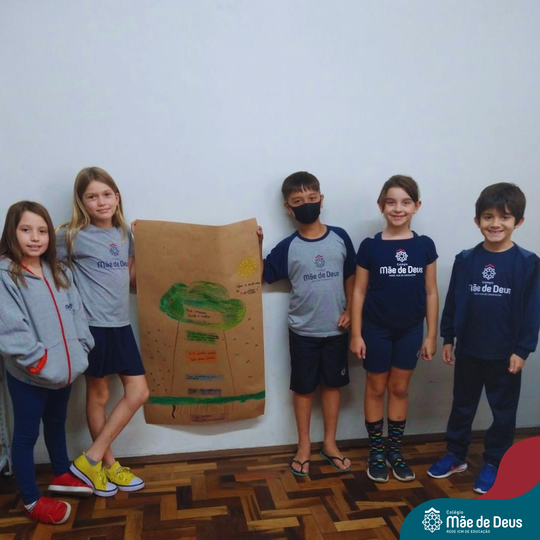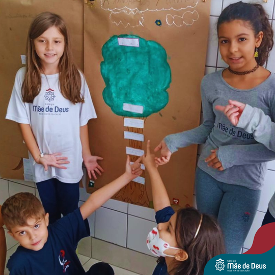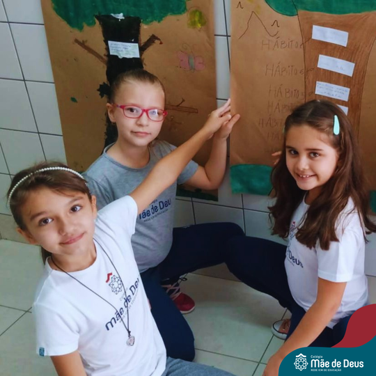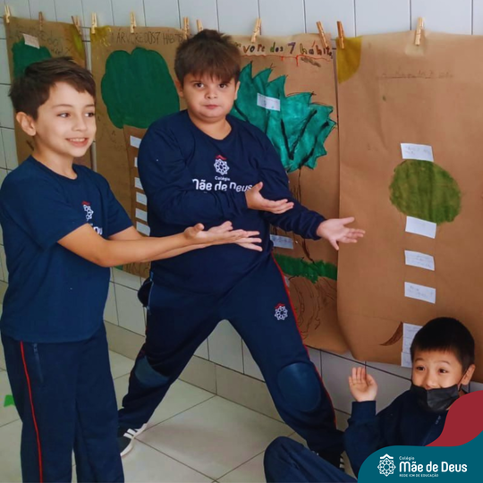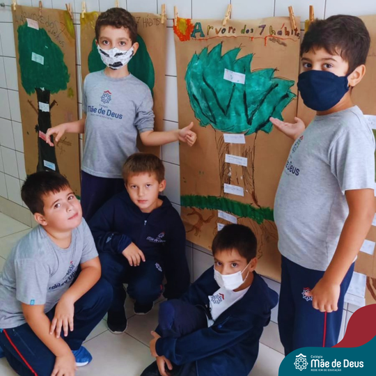 Os estudantes do 3º Ano do Ensino Fundamental construíram suas Árvores dos 7 Hábitos em grupo, colocando em prática hábitos trabalhados ao longo do ano passado, como seja proativo, pense ganha-ganha e crie sinergia.