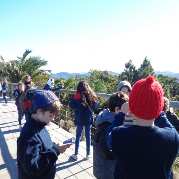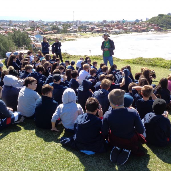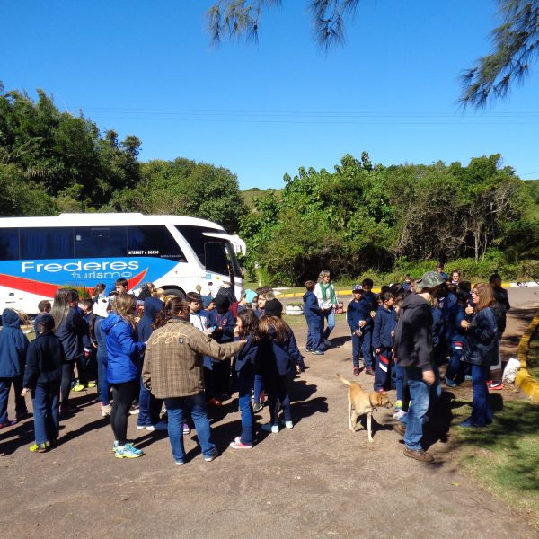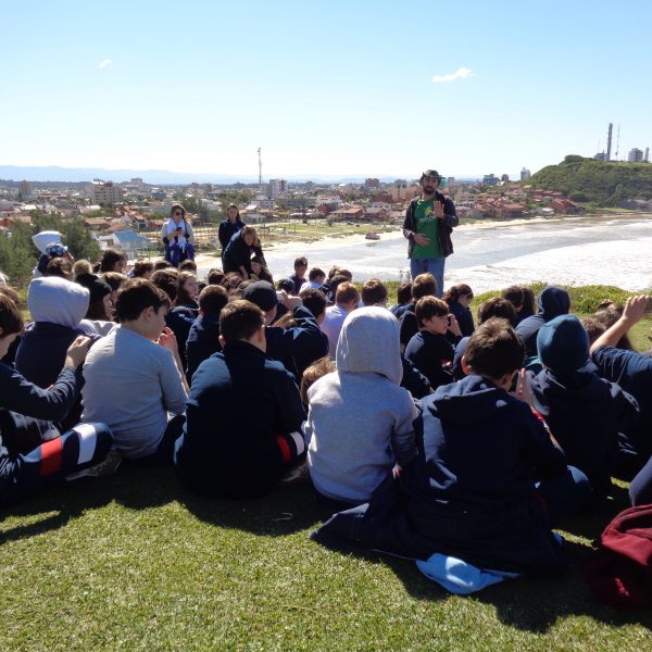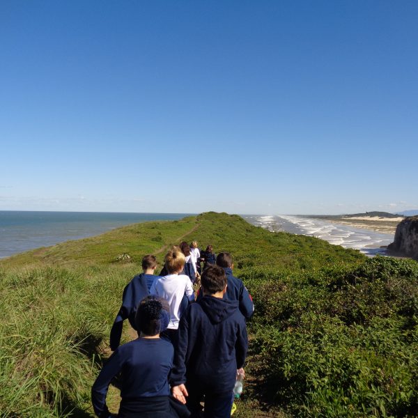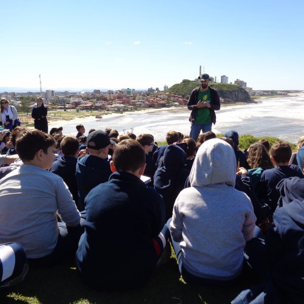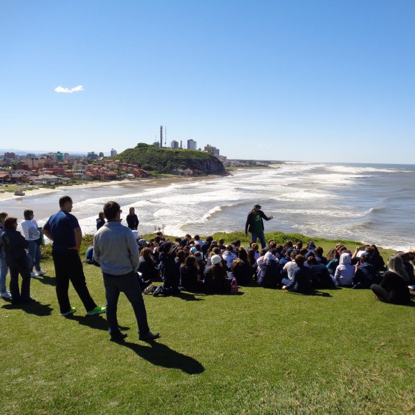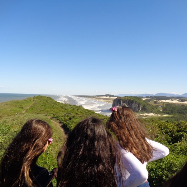 Rumo a cidade de Torres, finalizaram a saída percorrendo o Morro das Furnas, acompanhados de um guia local que enriqueceu o conhecimento dos alunos sobre a fauna, flora dos biomas e a preservação da natureza.