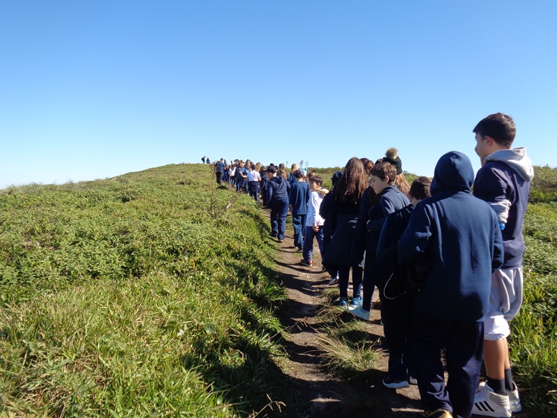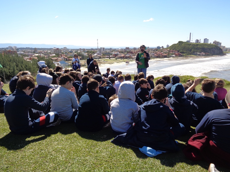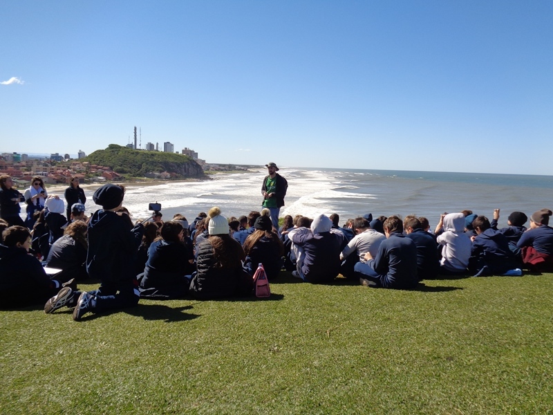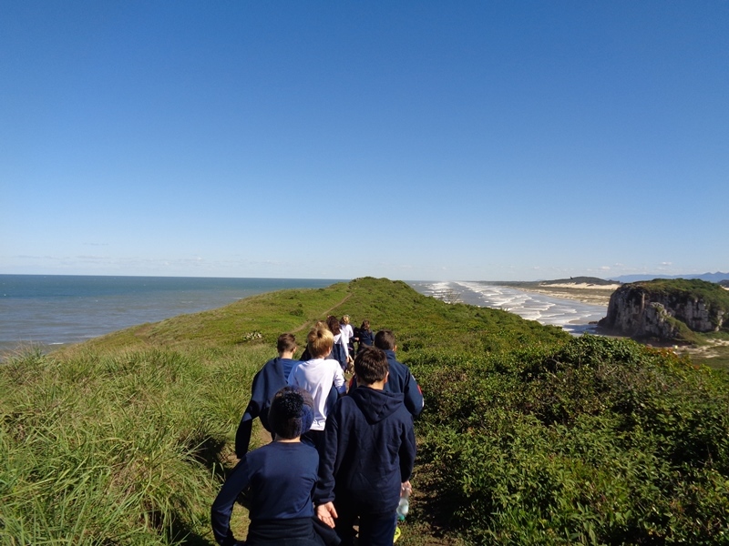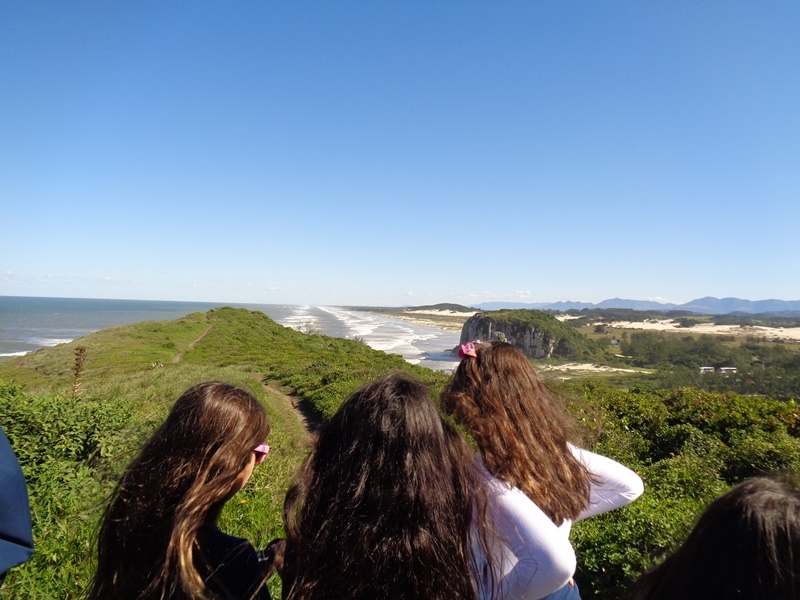 Rumo a cidade de Torres, finalizaram a saída percorrendo o Morro das Furnas, acompanhados de um guia local que enriqueceu o conhecimento dos alunos sobre a fauna, flora dos biomas e a preservação da natureza.