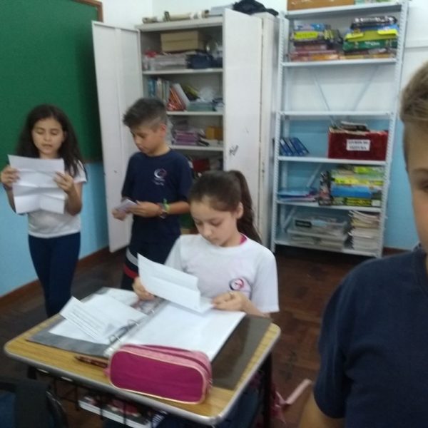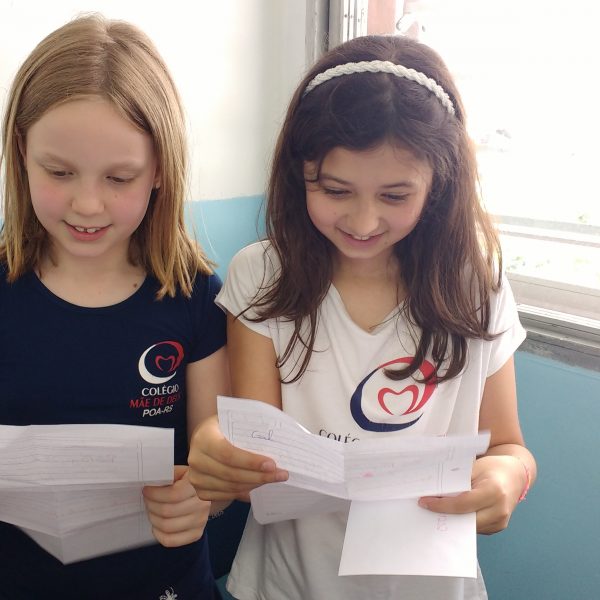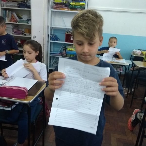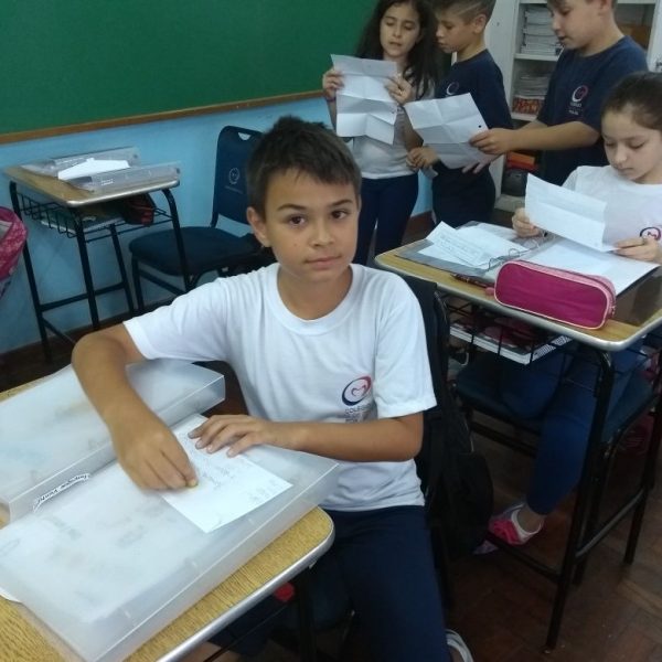Concluindo as atividades relacionadas ao livro contexto “Felpo Filva”, as turmas 42 e 43 (professoras Gabriela e Daniela), trocaram cartas com os alunos da turma 42 (professora Cristiane), do Colégio Glória, também da Rede ICM.