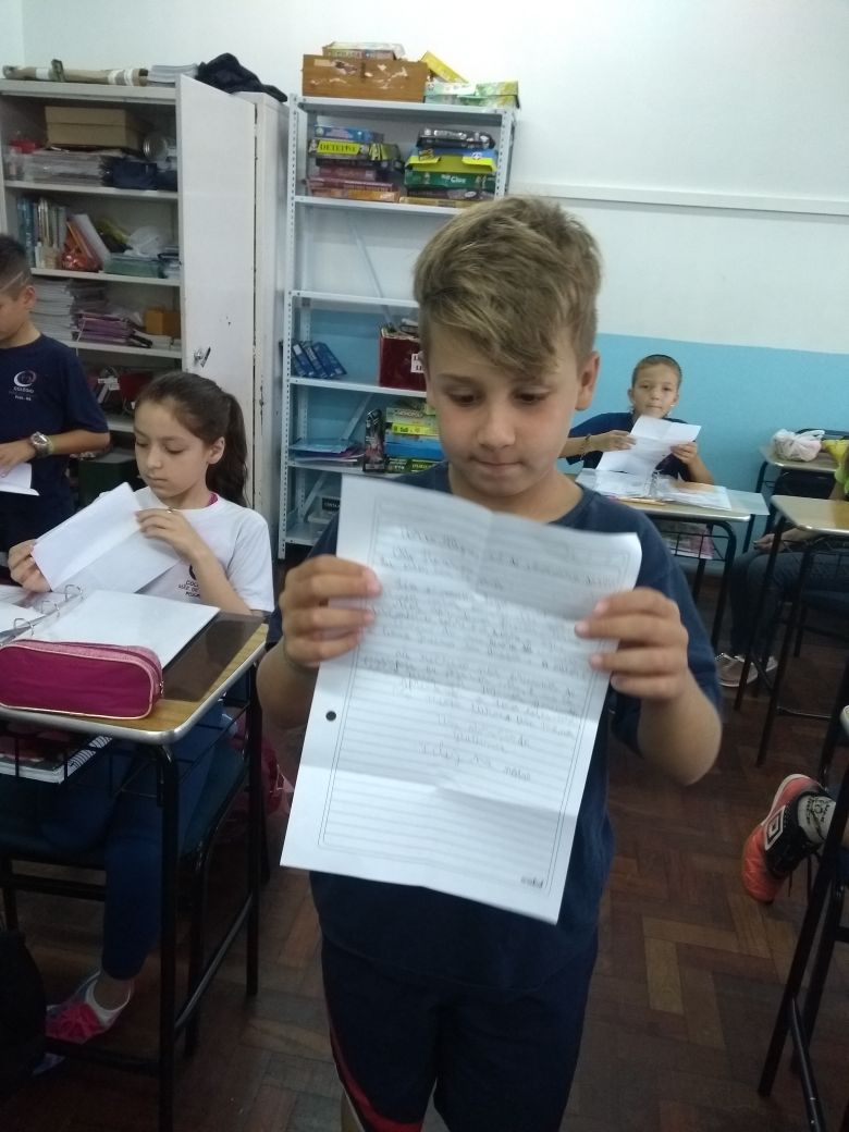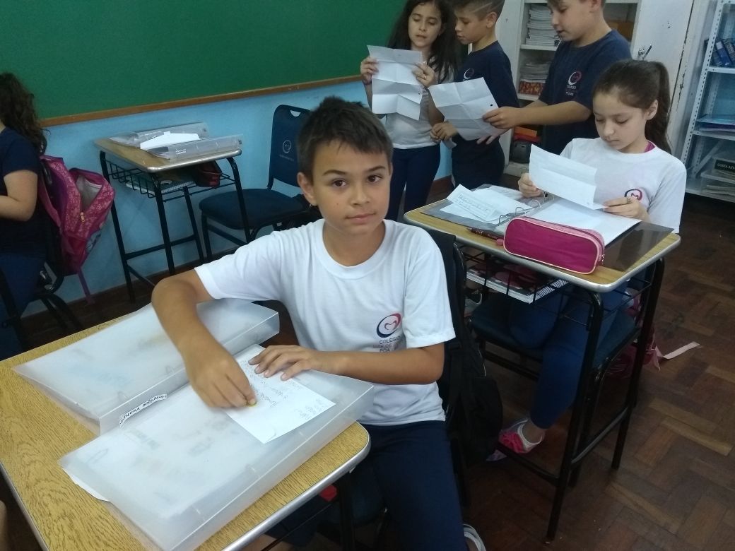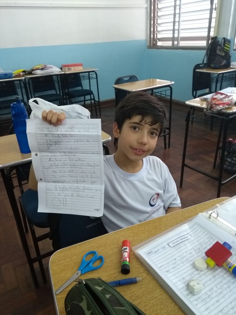 Concluindo as atividades relacionadas ao livro contexto “Felpo Filva”, as turmas 42 e 43 (professoras Gabriela e Daniela), trocaram cartas com os alunos da turma 42 (professora Cristiane), do Colégio Glória, também da Rede ICM.