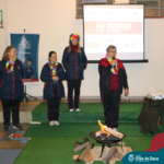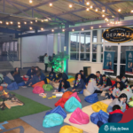 O cenário foi montado com luzes coloridas, plantas, fogueira e puffs, cada detalhe pensado com muito carinho para receber os nossos alunos.